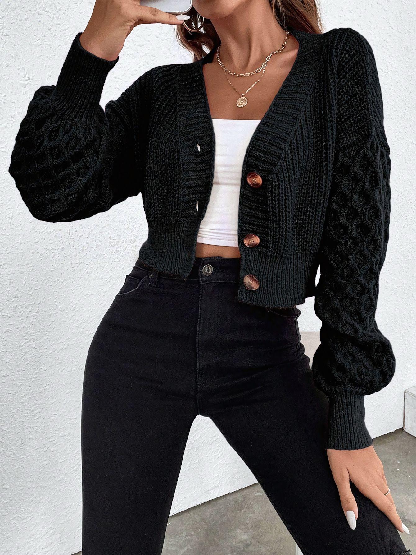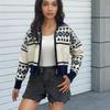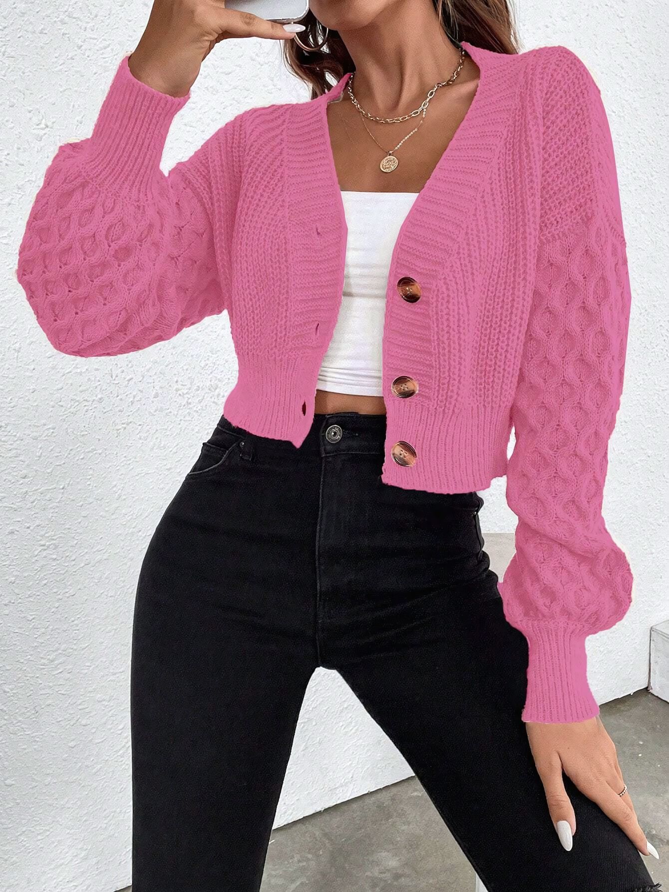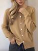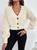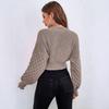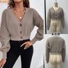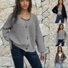 Chaqueta Suéter para Mujer Primavera y Otoño Exportación Transfronteriza Amazon Cuello V Diseño de Color Puro Europeo y Americano Manga Hombro Caído Cárdigan Tejido