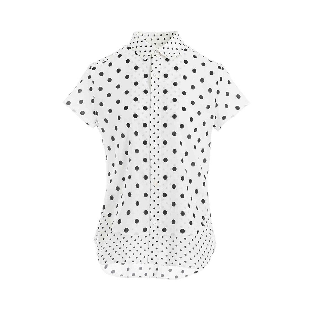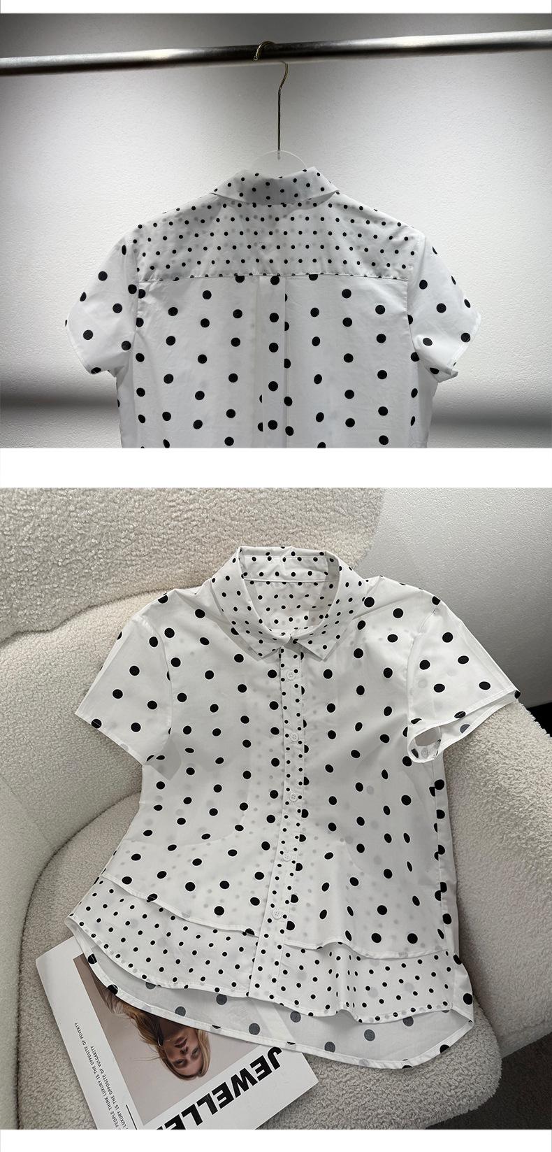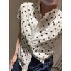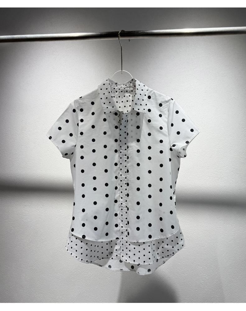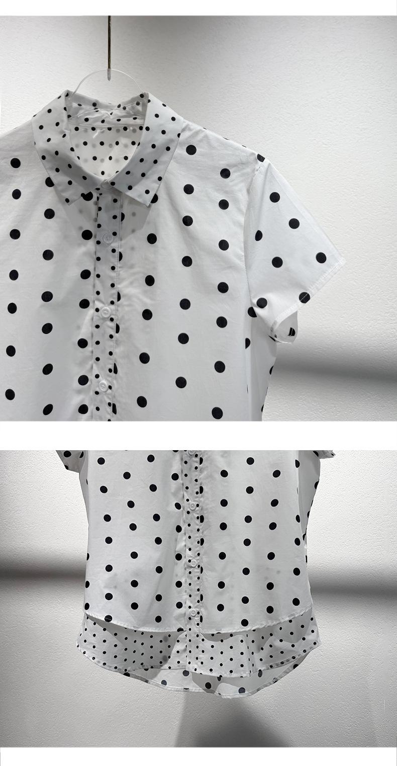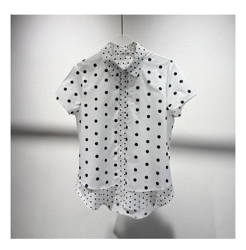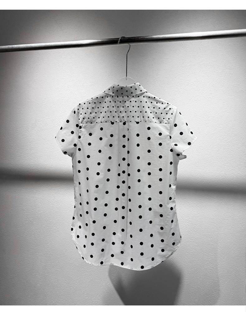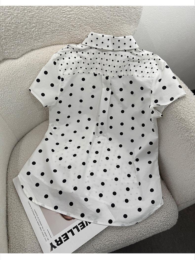 2025 Nueva Camisa de Verano Blanca con Estampado de Lunares de Manga Corta Cuello Polo Top Casual Versátil para Mujer