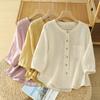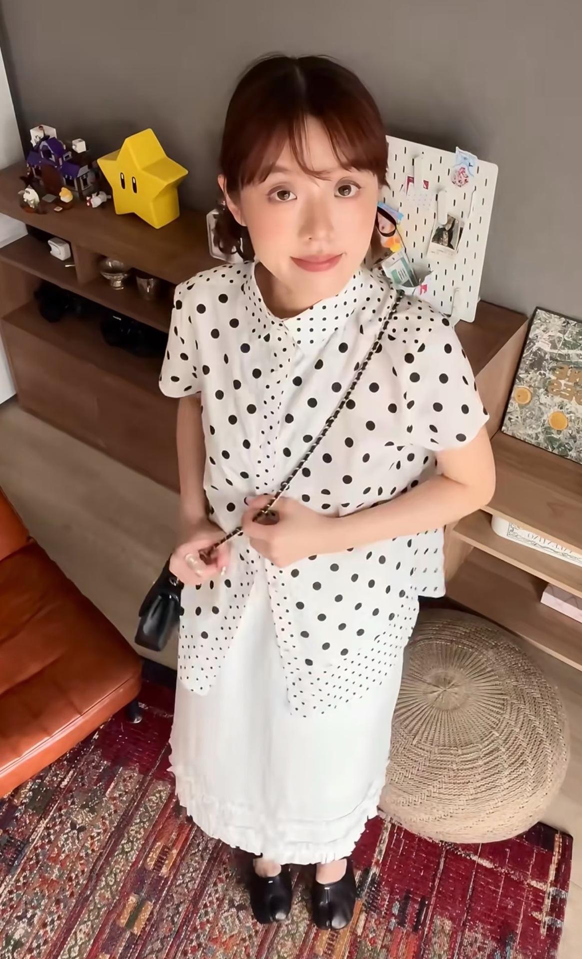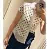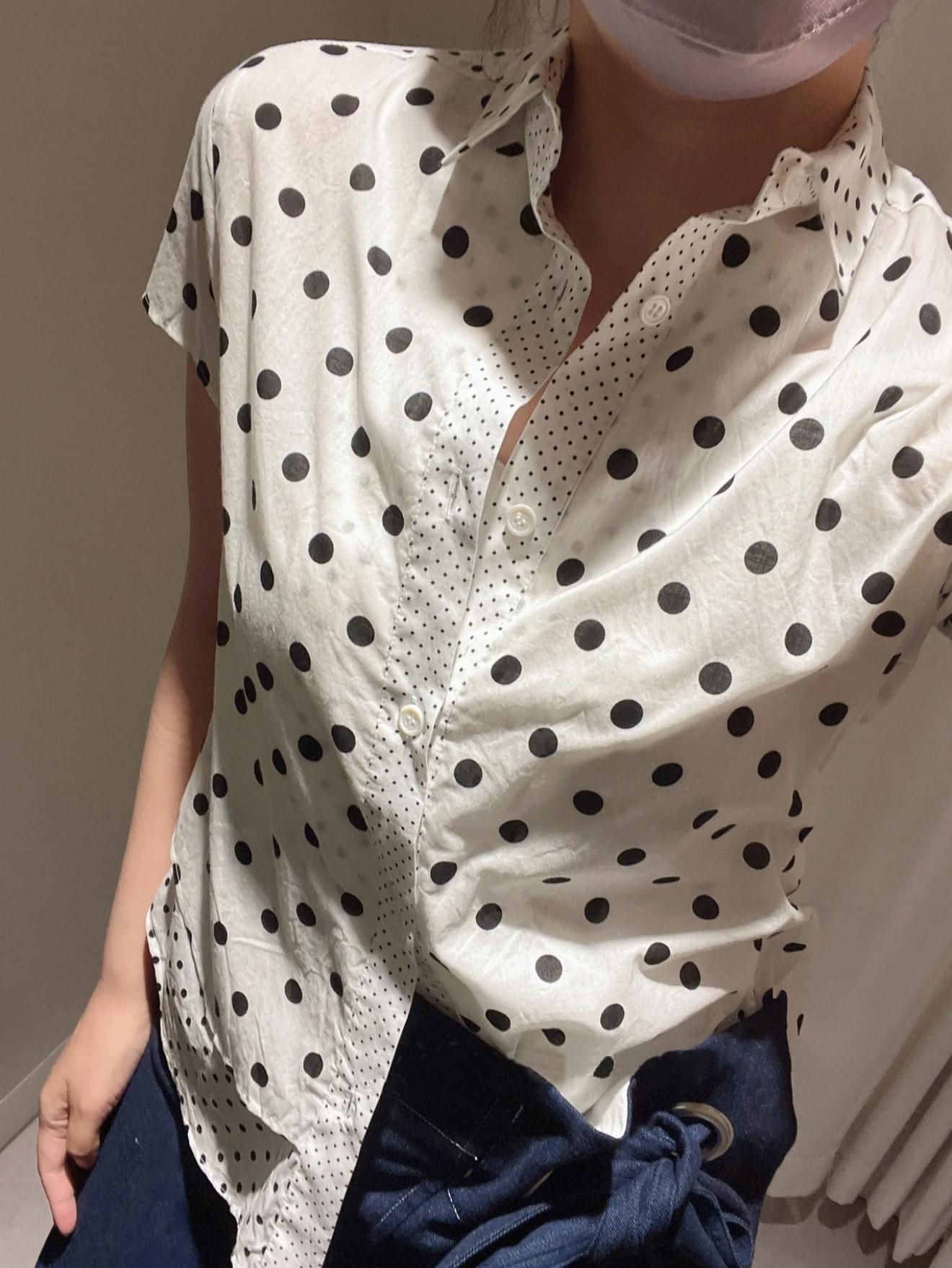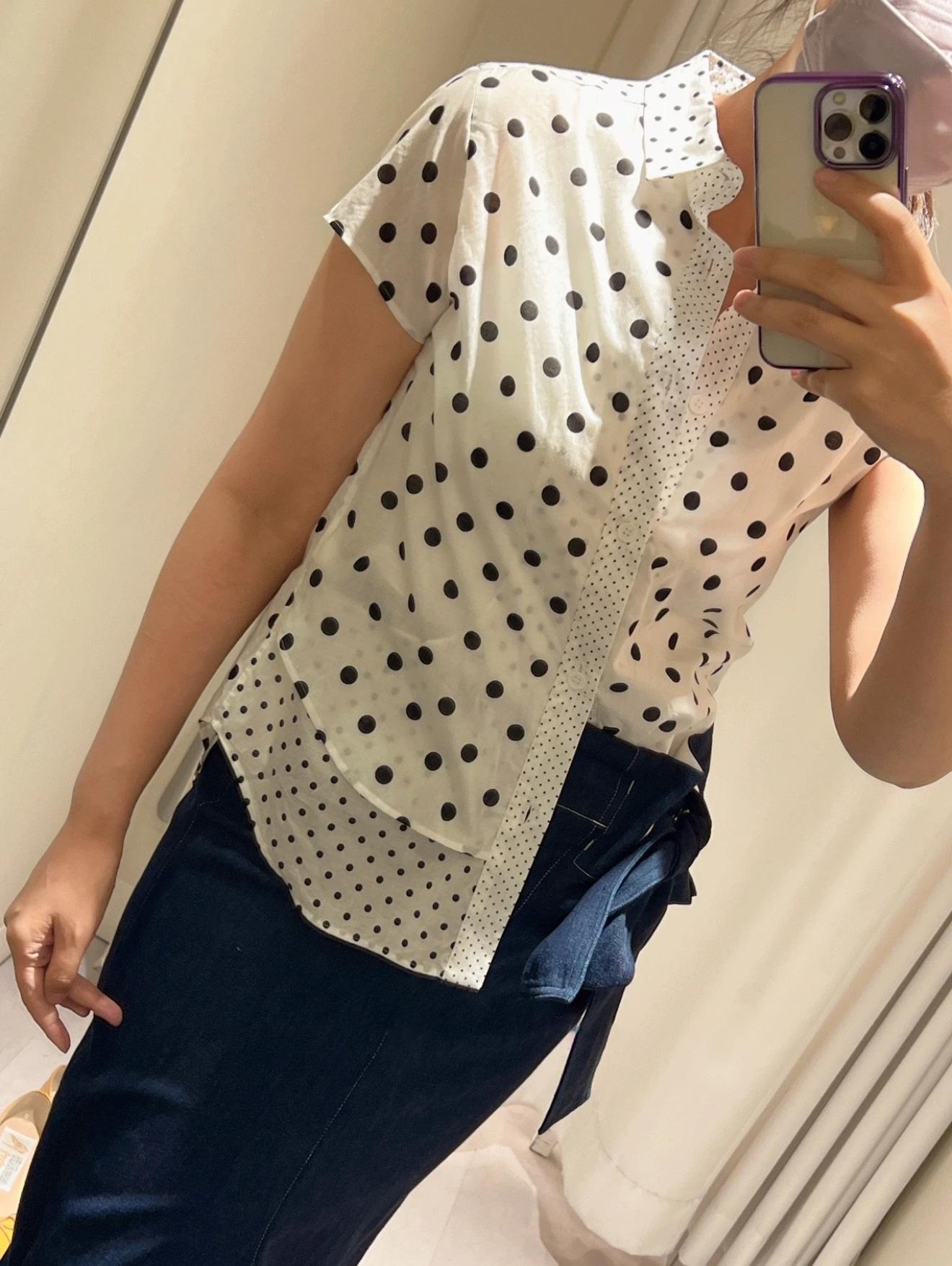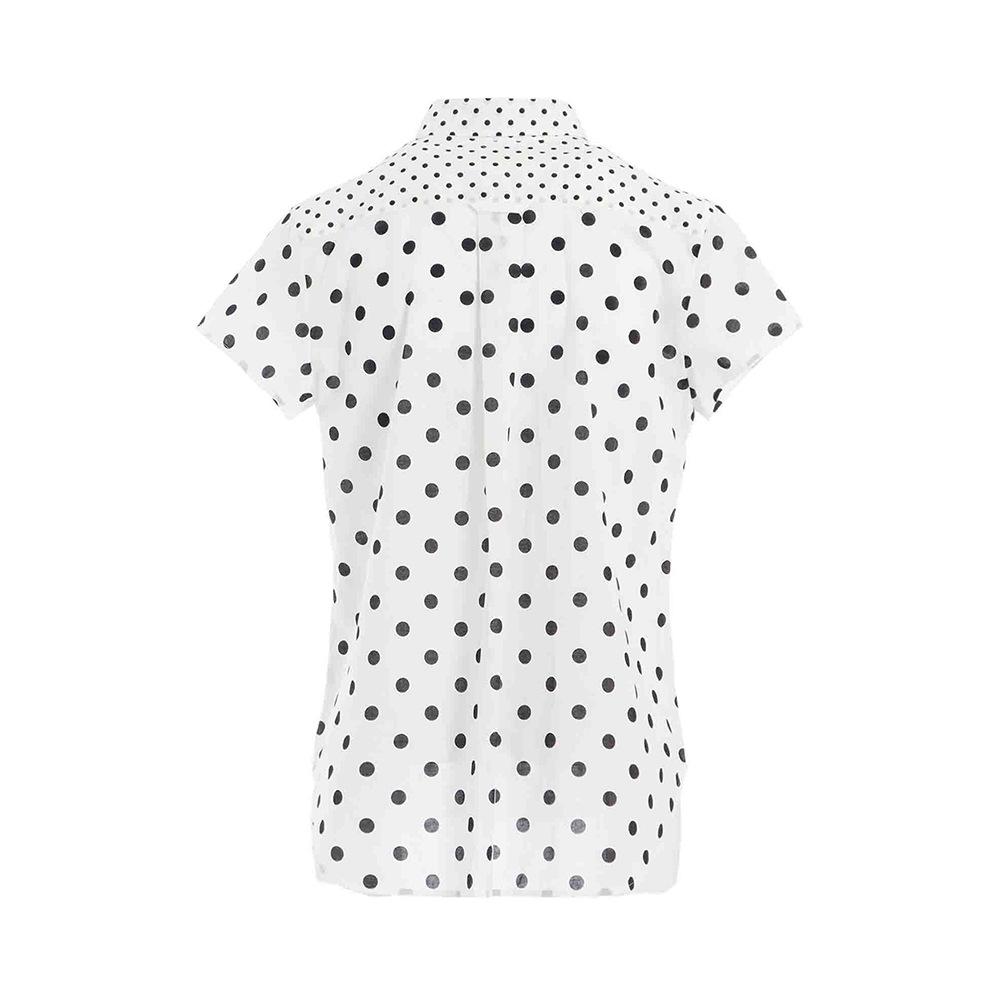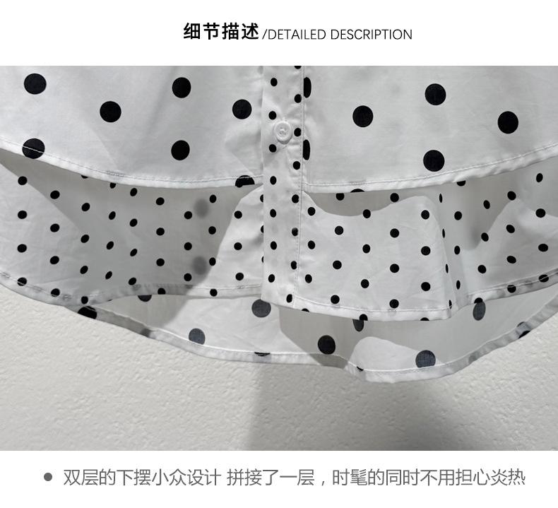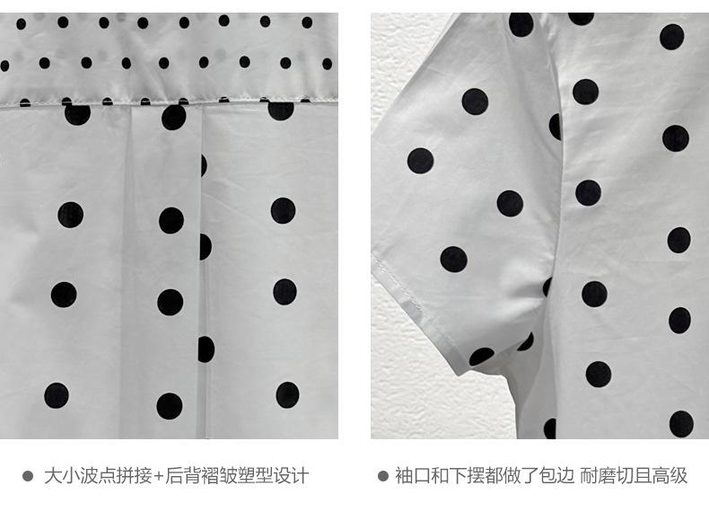 2025 Nueva Camisa de Verano Blanca con Estampado de Lunares de Manga Corta Cuello Polo Top Casual Versátil para Mujer