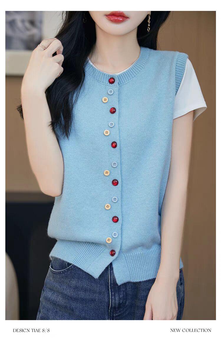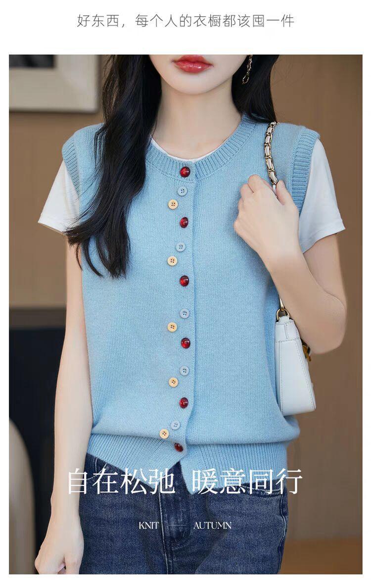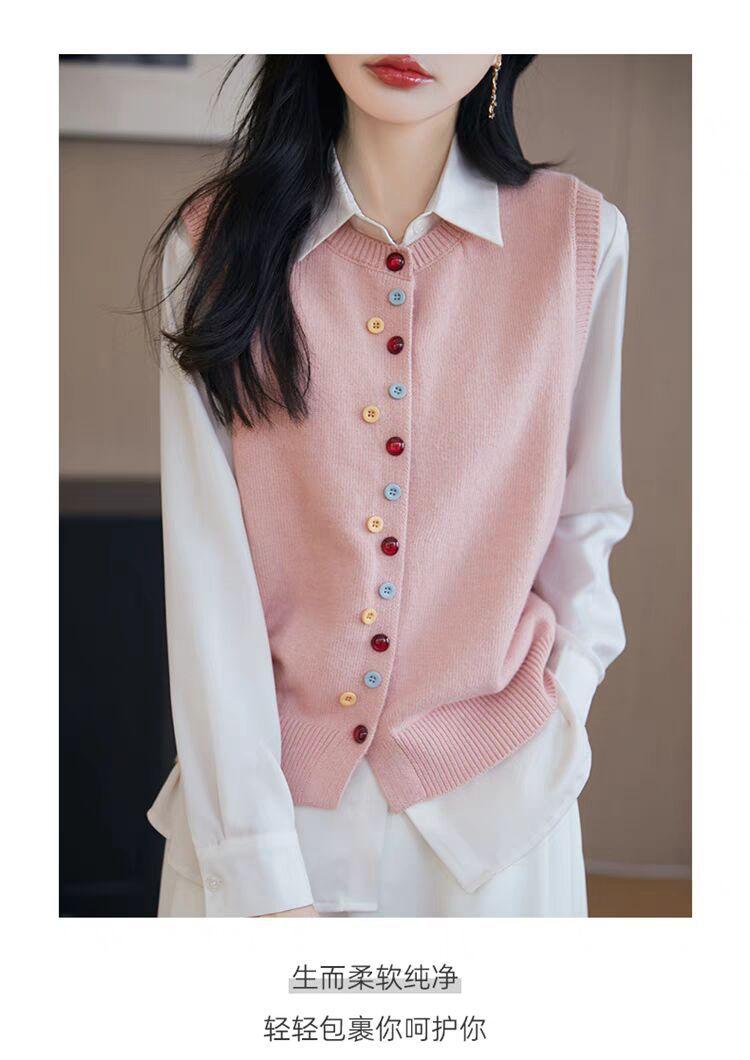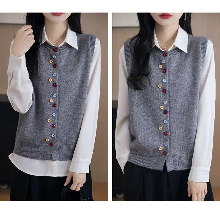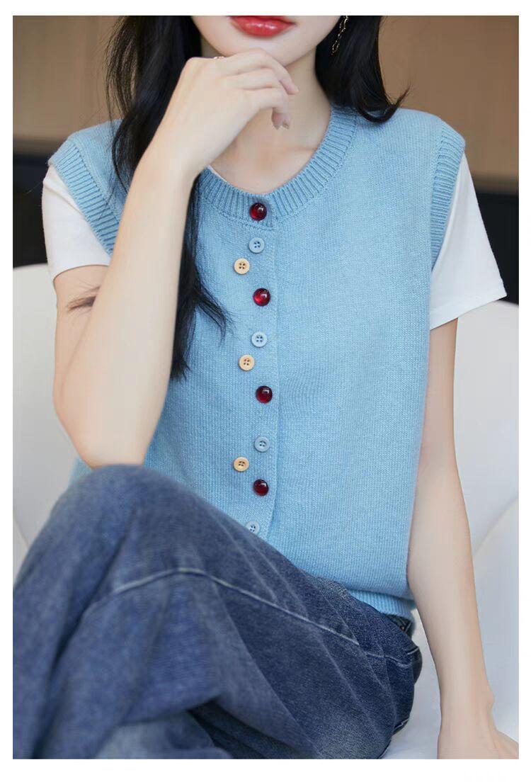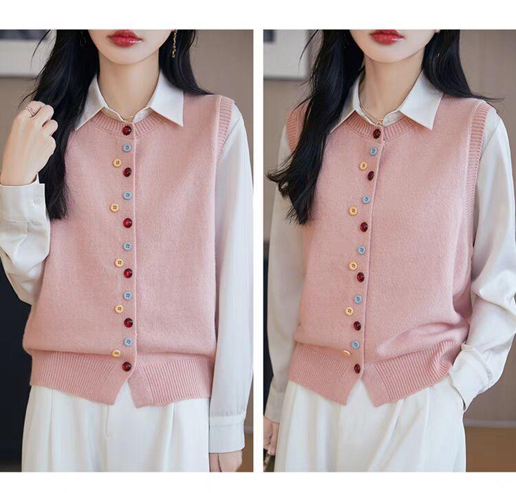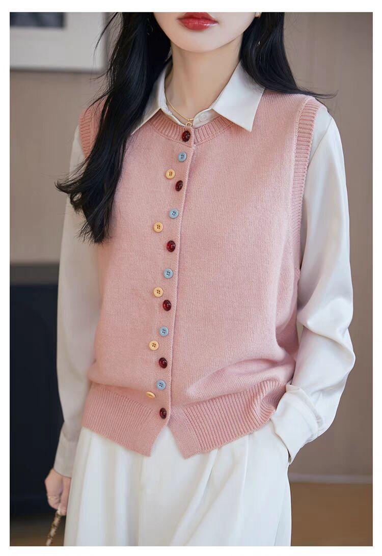 Cárdigan de Punto con Cuello Redondo y Botones de Color para Primavera y Otoño para Mujer, Chaleco de Punto Suelto Apilado en la Cintura