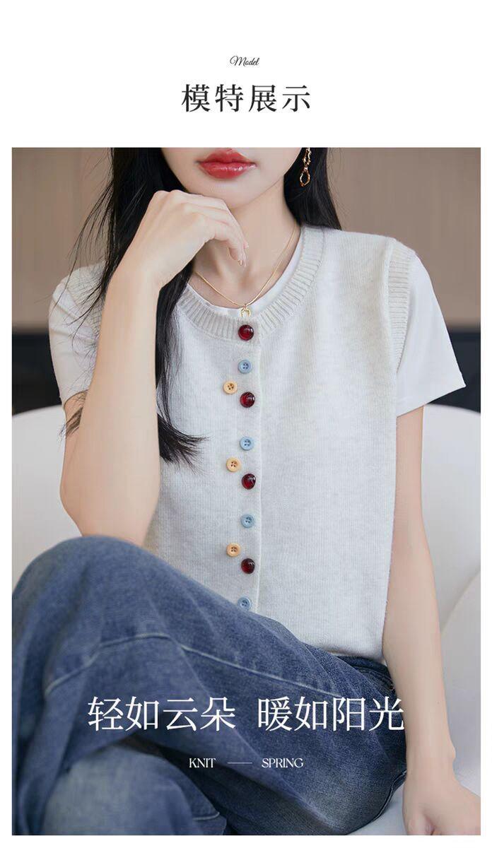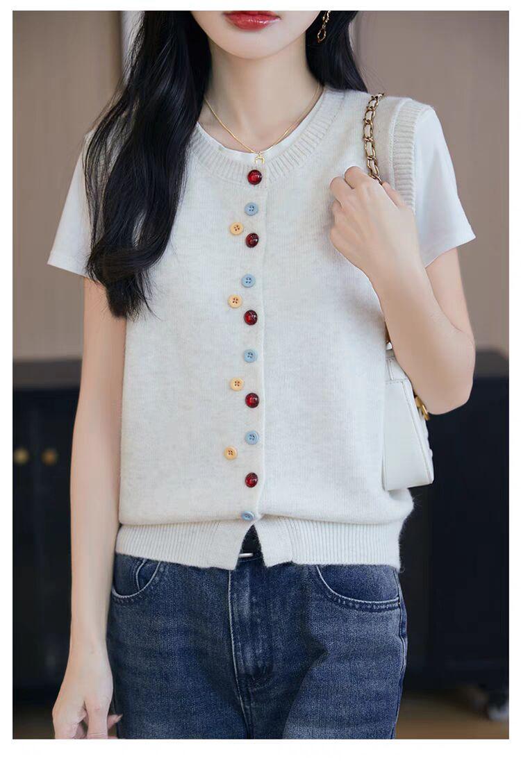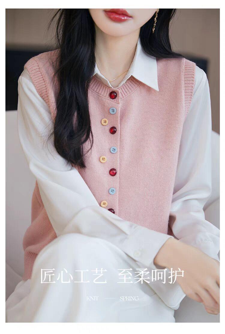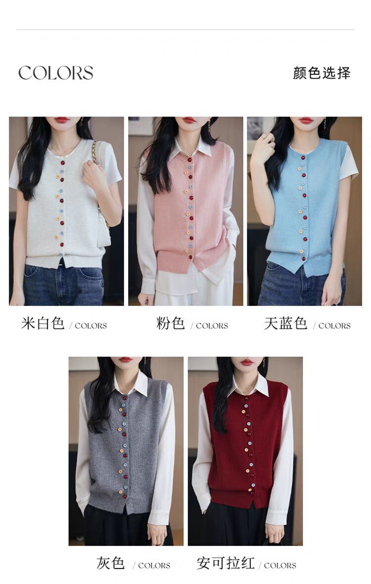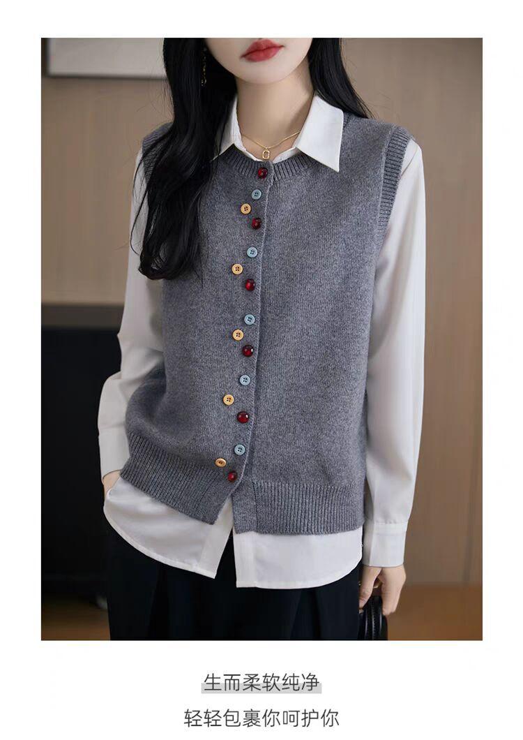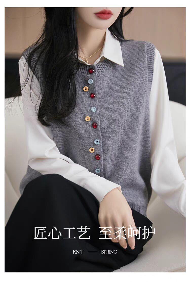 Cárdigan de Punto con Cuello Redondo y Botones de Color para Primavera y Otoño para Mujer, Chaleco de Punto Suelto Apilado en la Cintura