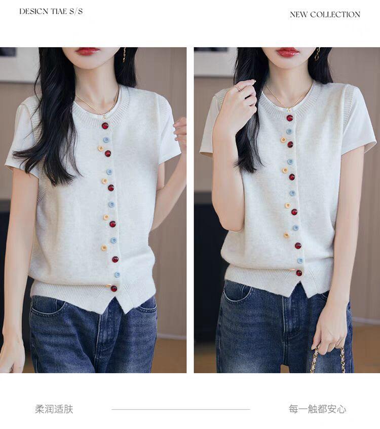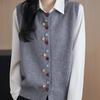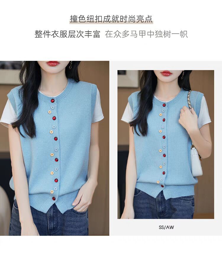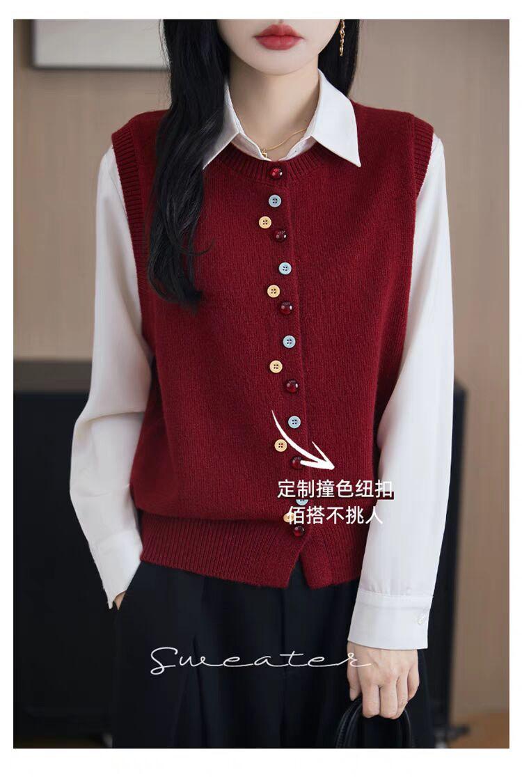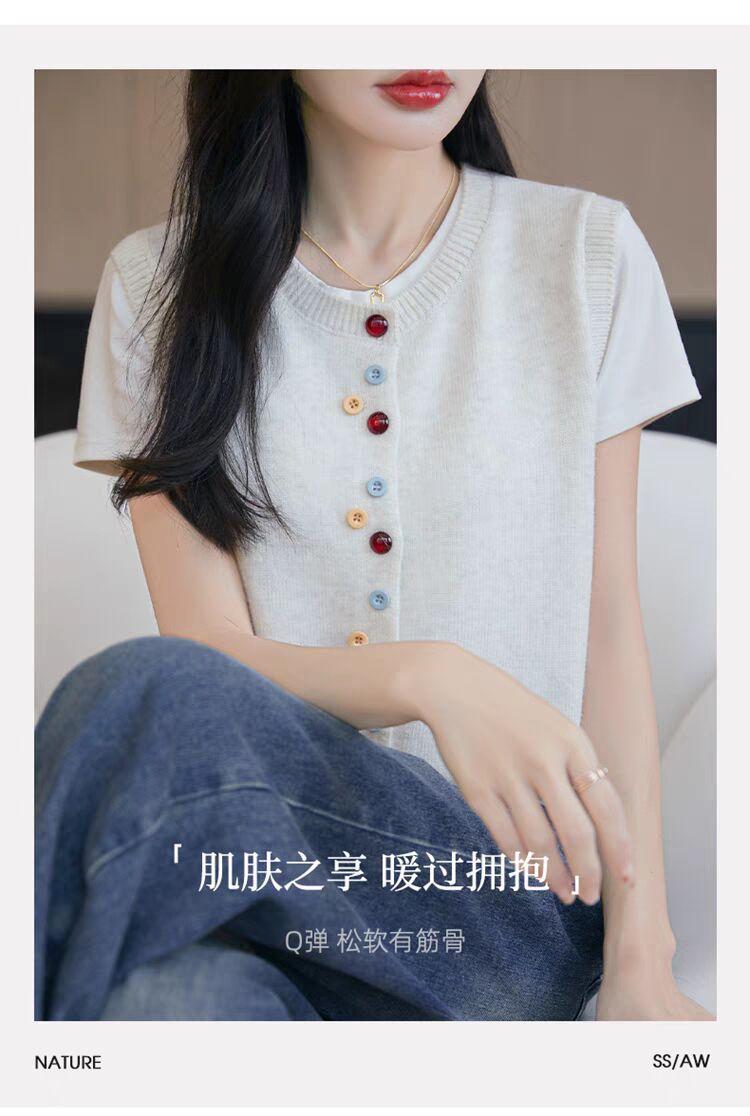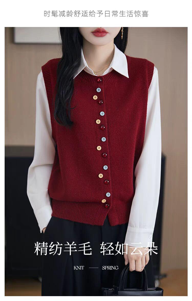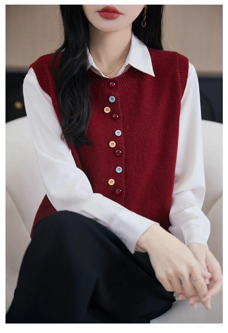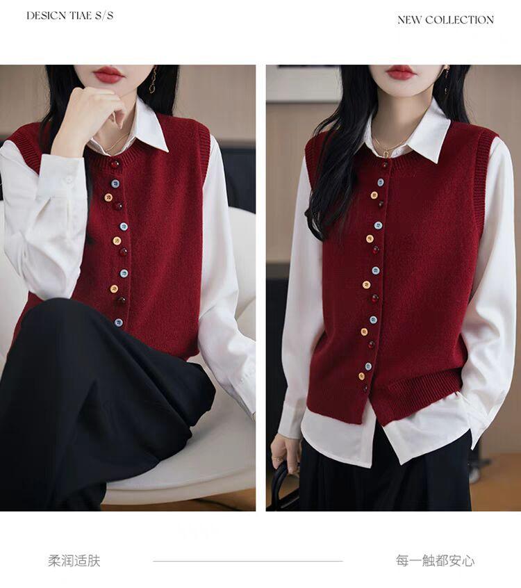 Cárdigan de Punto con Cuello Redondo y Botones de Color para Primavera y Otoño para Mujer, Chaleco de Punto Suelto Apilado en la Cintura