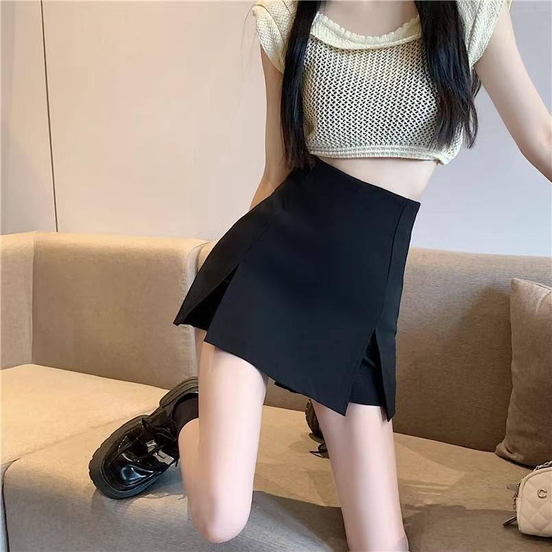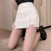 Traje blanco falda midi mujer primavera/verano 2025 nuevo estilo cruzada cadera culottes abertura cintura alta adelgazante línea A falda corta