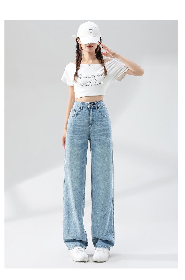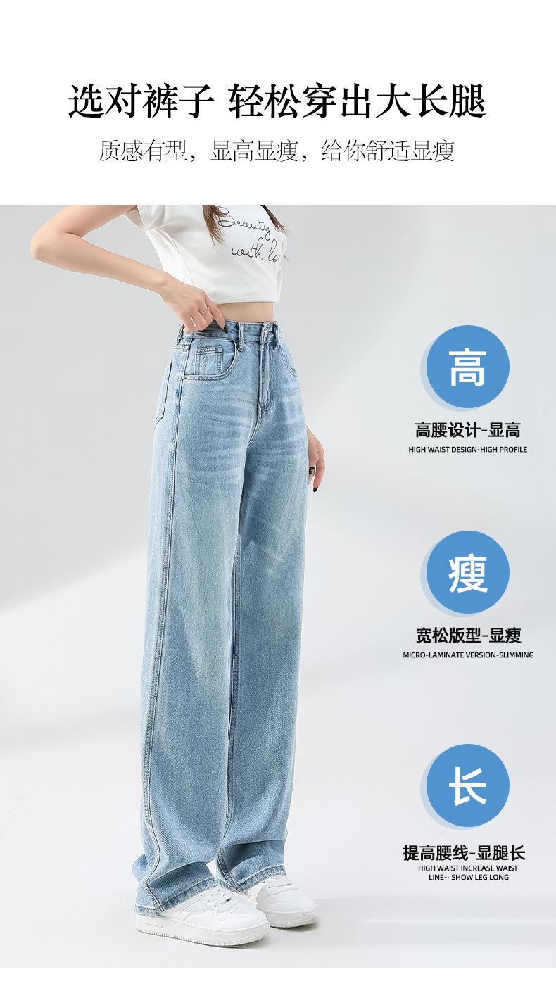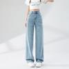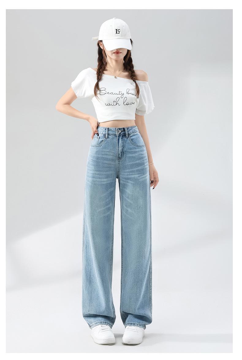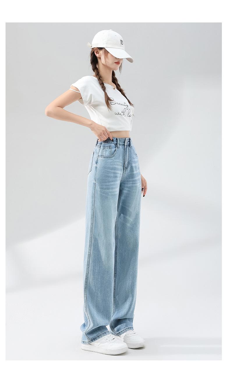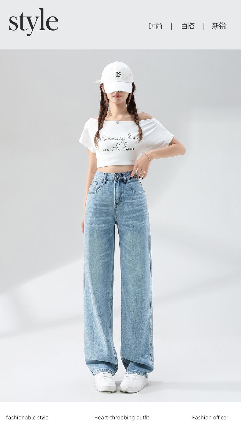 Jeans Rectos de Tencel Azul Claro para Mujer Verano Delgados 2025 Nuevo Cintura Alta Slim y Drapeados Sueltos Pantalones de Pierna Ancha