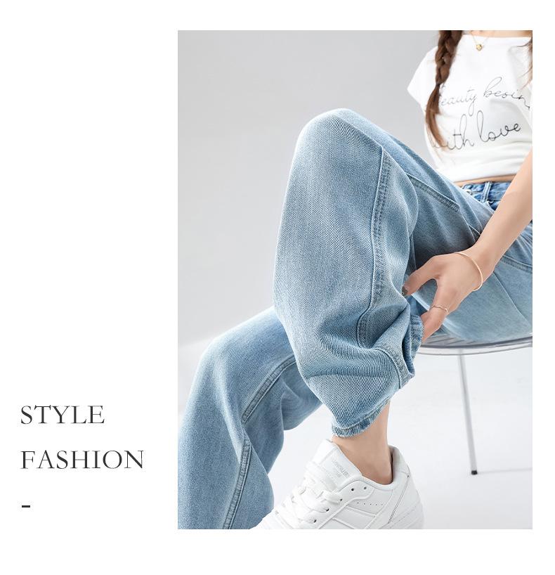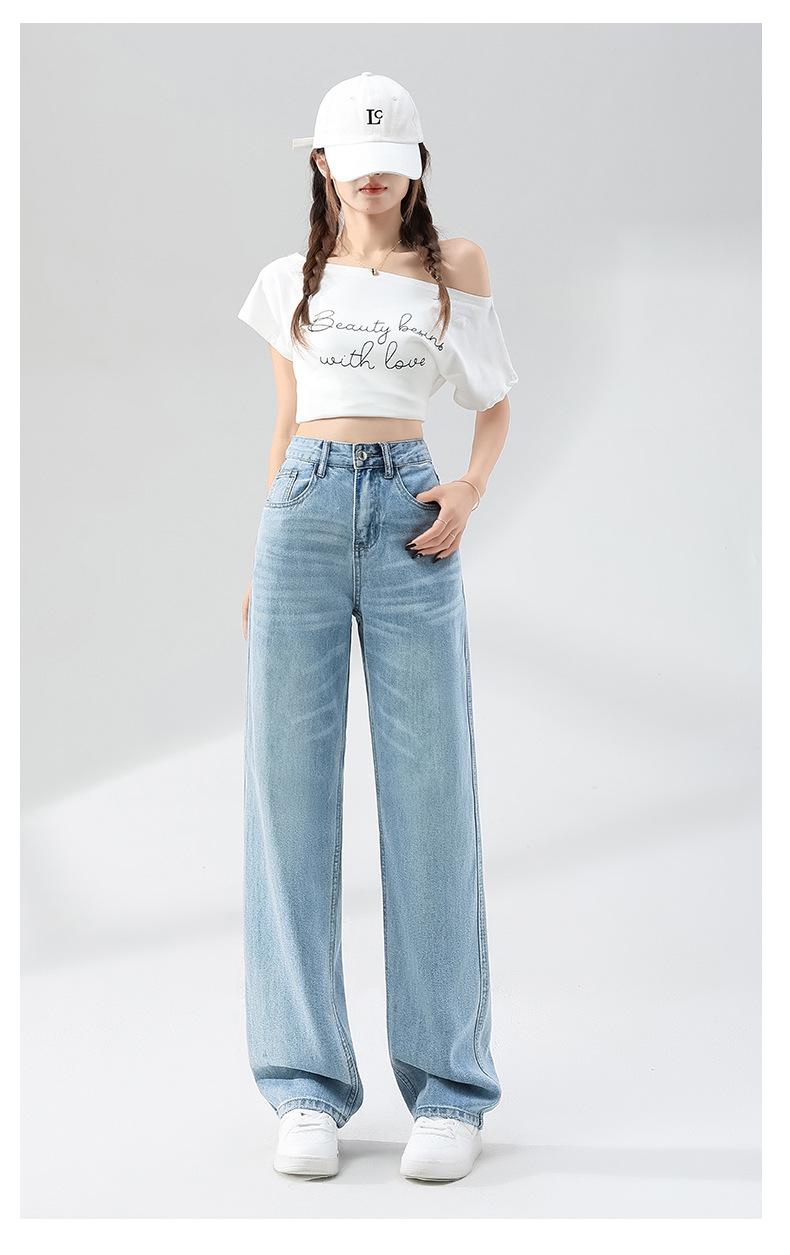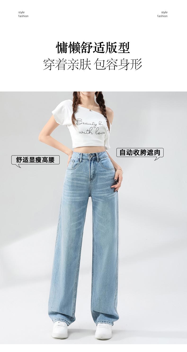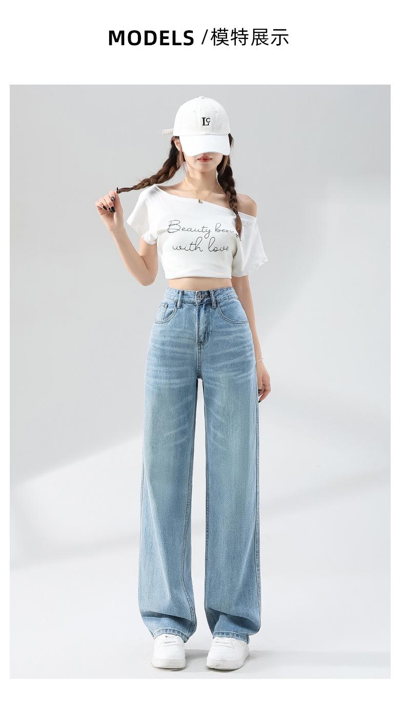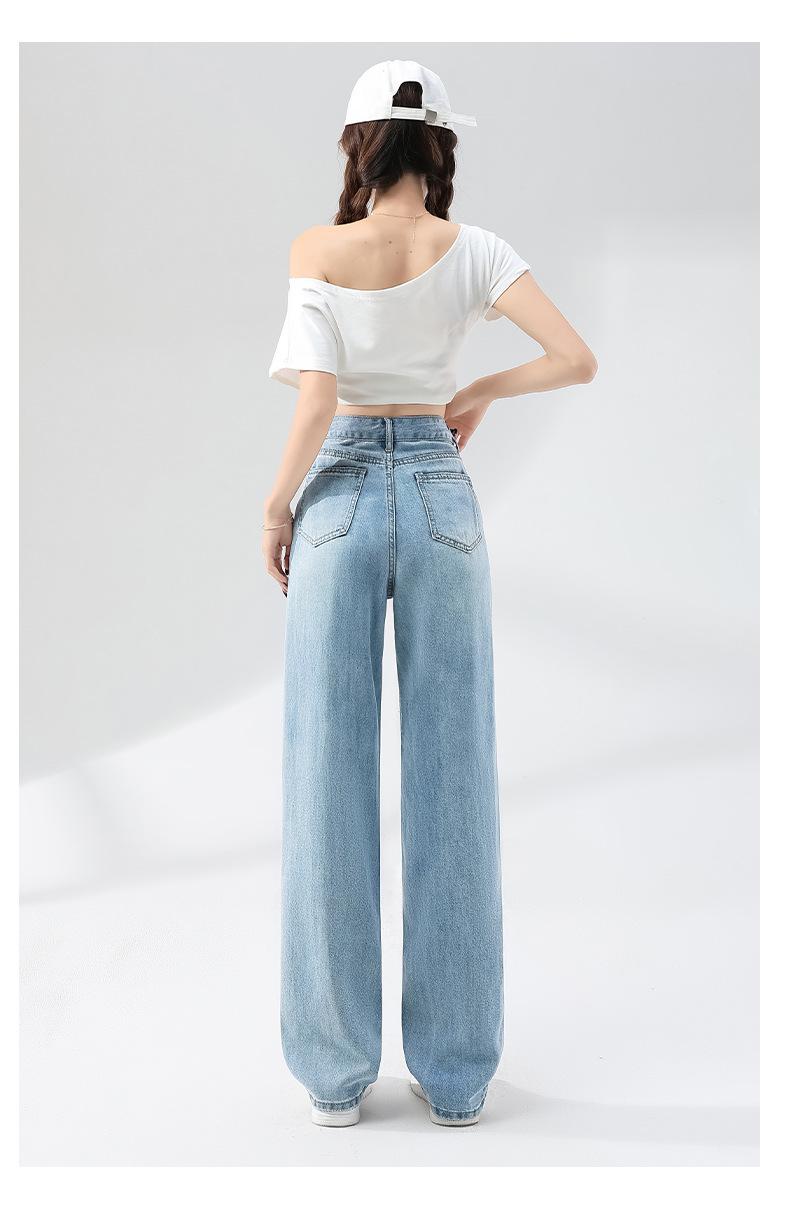 Jeans Rectos de Tencel Azul Claro para Mujer Verano Delgados 2025 Nuevo Cintura Alta Slim y Drapeados Sueltos Pantalones de Pierna Ancha
