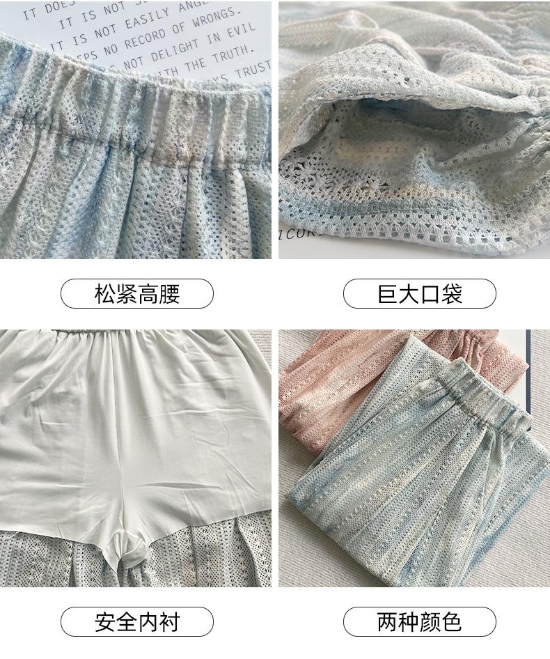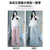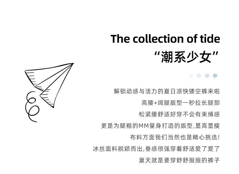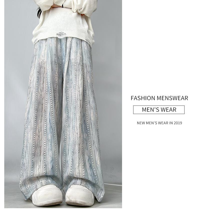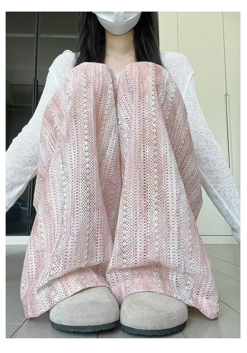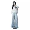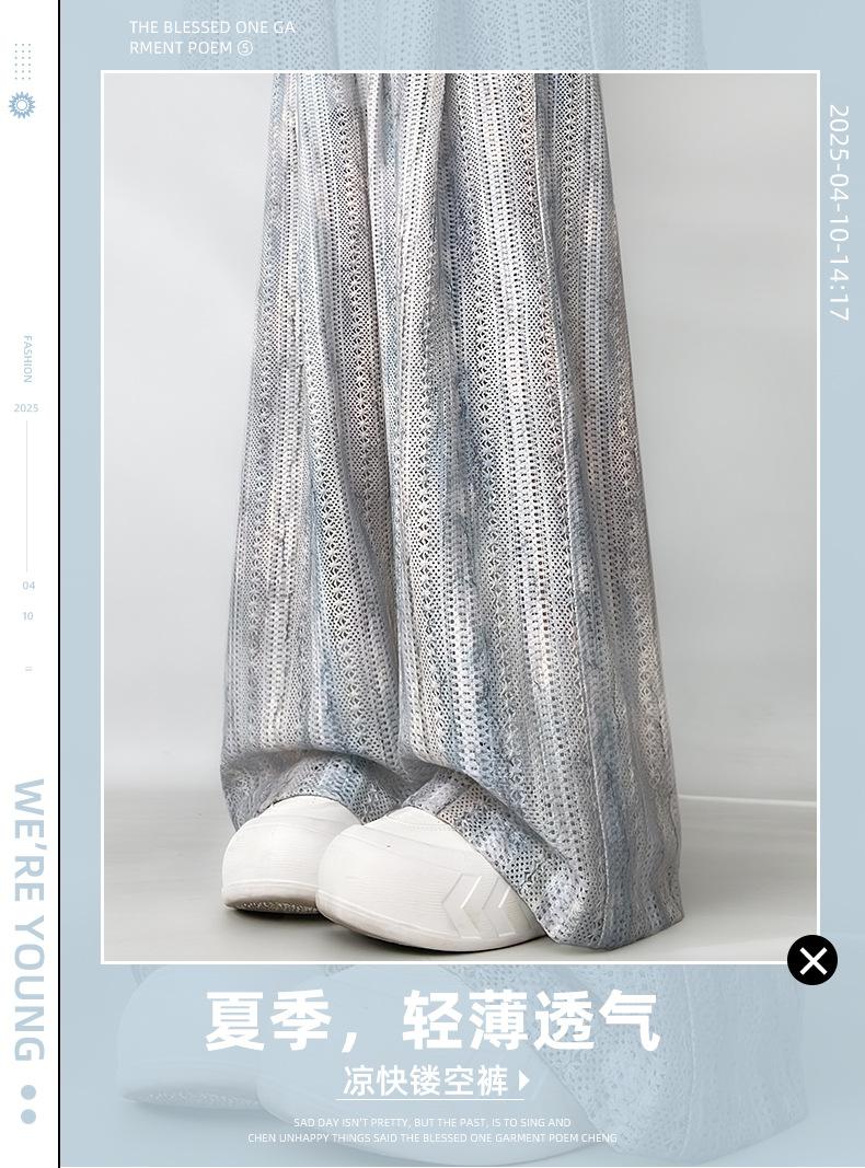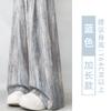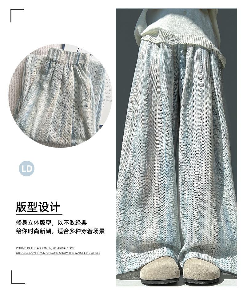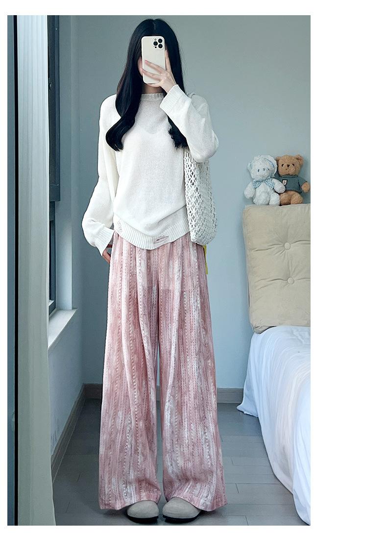 Pantalones Azules de Seda de Hielo de Pierna Ancha para Mujer Verano Nuevo Cintura Alta Sueltos Drapeados Casuales Frescos Pantalones Teñidos Anudados Huecos Rotos