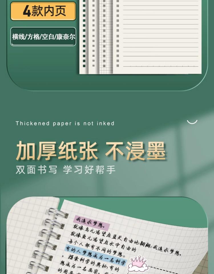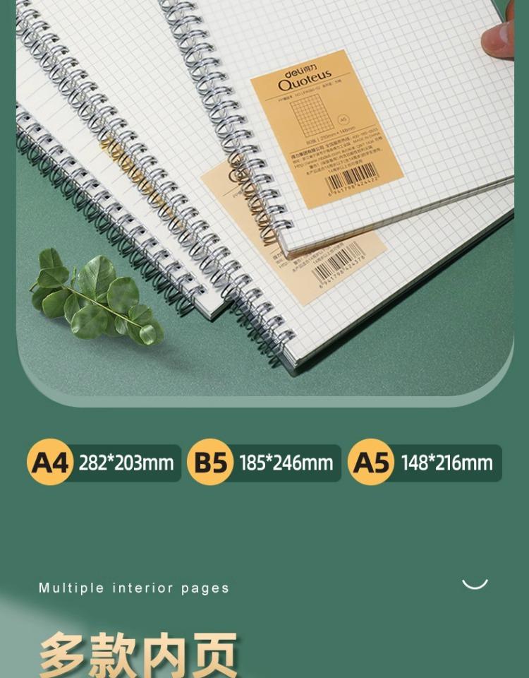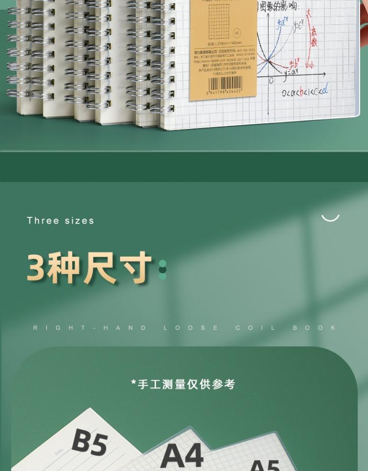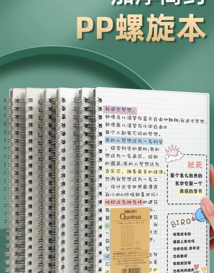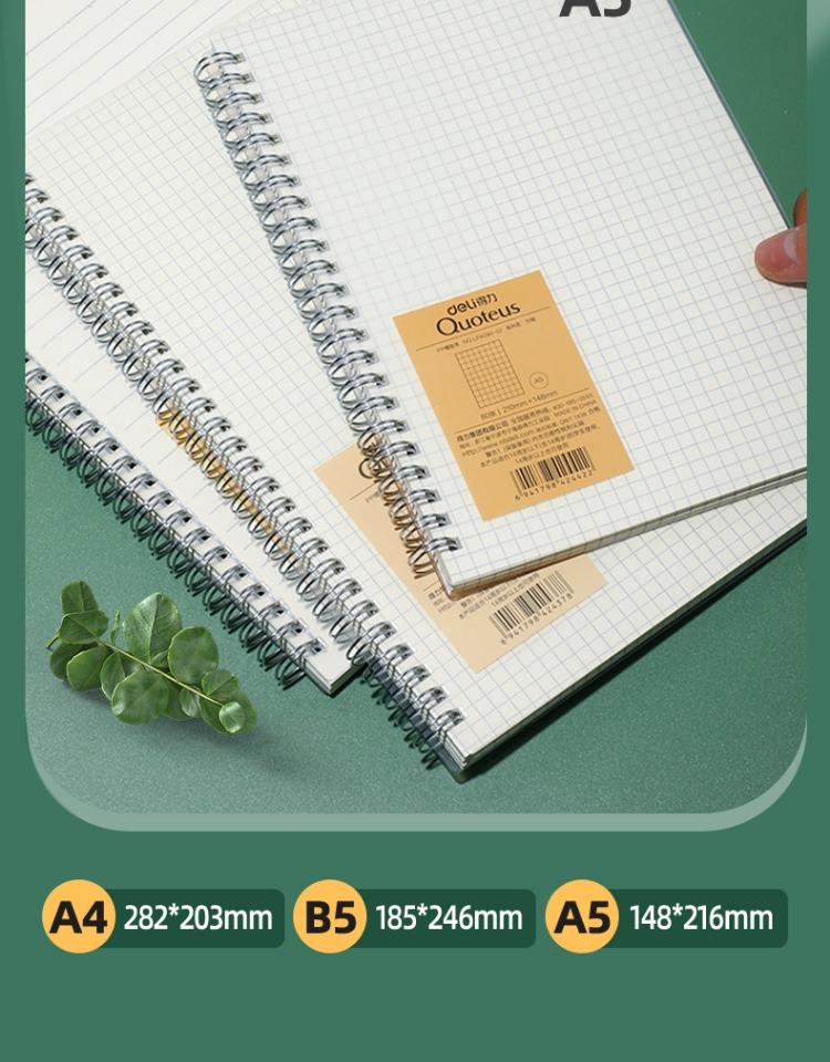 Cuaderno Espiral Deli para Exámenes, B5 Rayado, Cuaderno de Cuadrícula Gruesa para Estudiantes de Secundaria, Cuaderno Diario de Hojas Sueltas