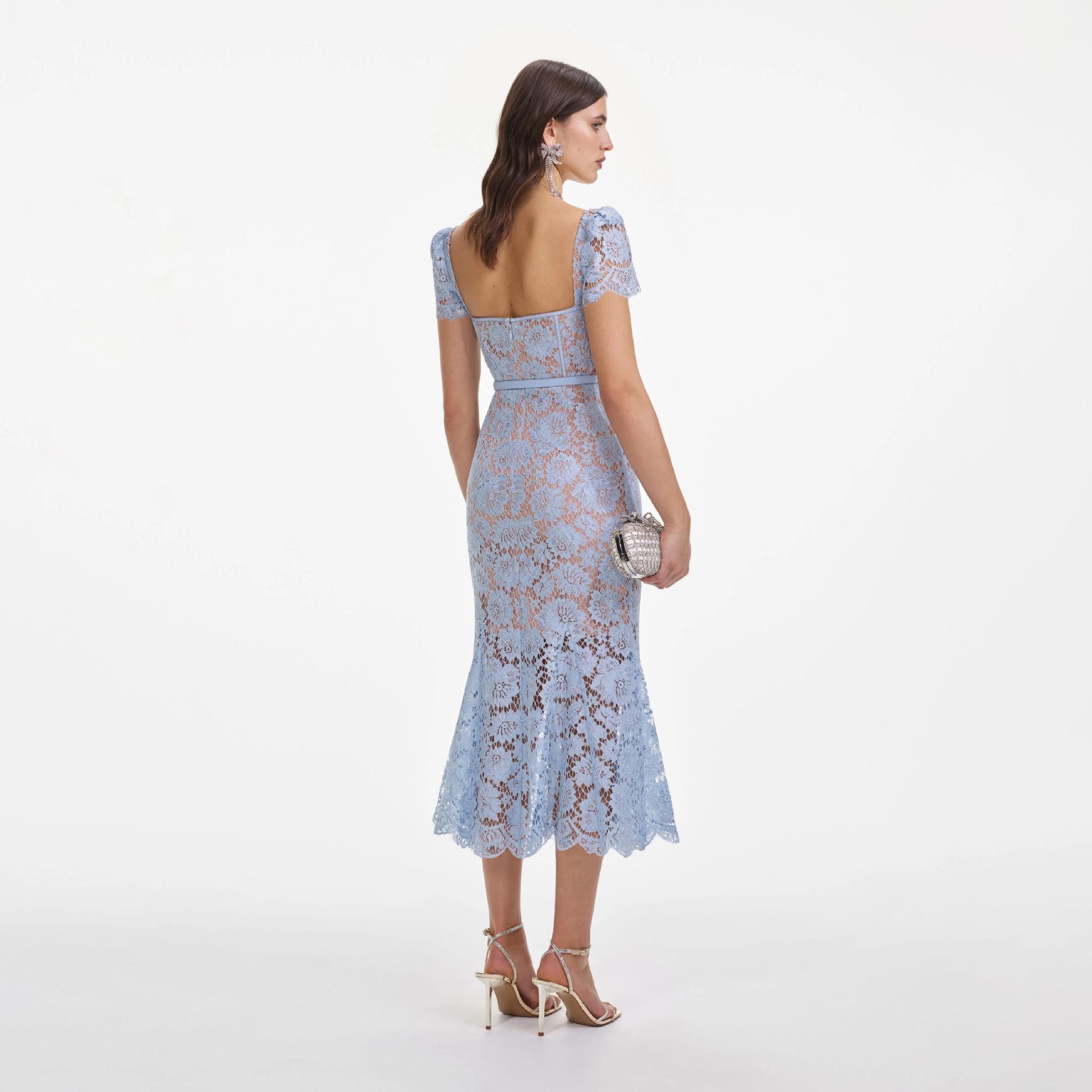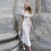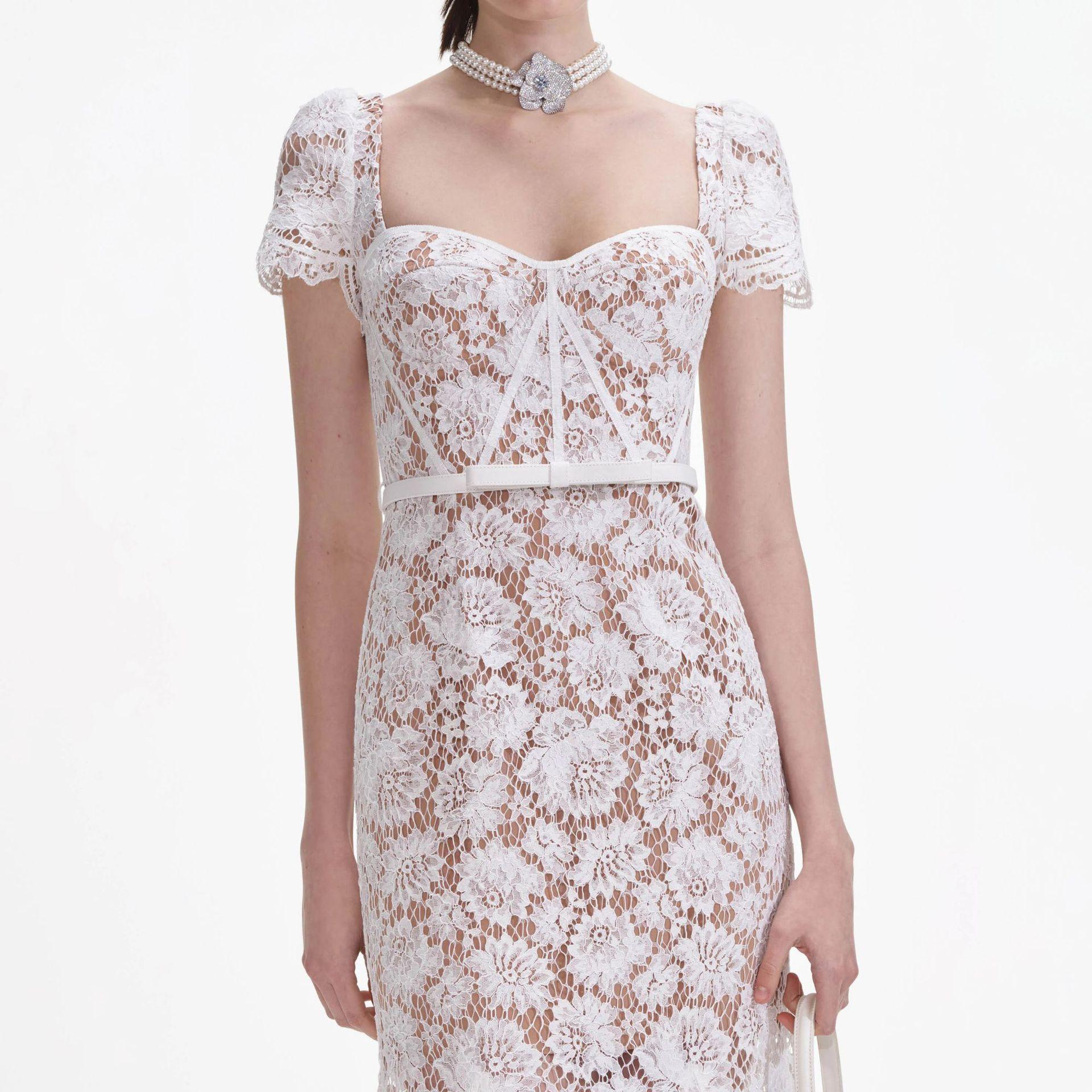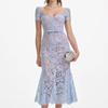 Vestido de Noche Transfronterizo al por Mayor Sexy Cuello Cuadrado Espalda Descubierta con Varillas Falda Midi Encaje Ceñido a las Caderas Vestido Cola de Pescado