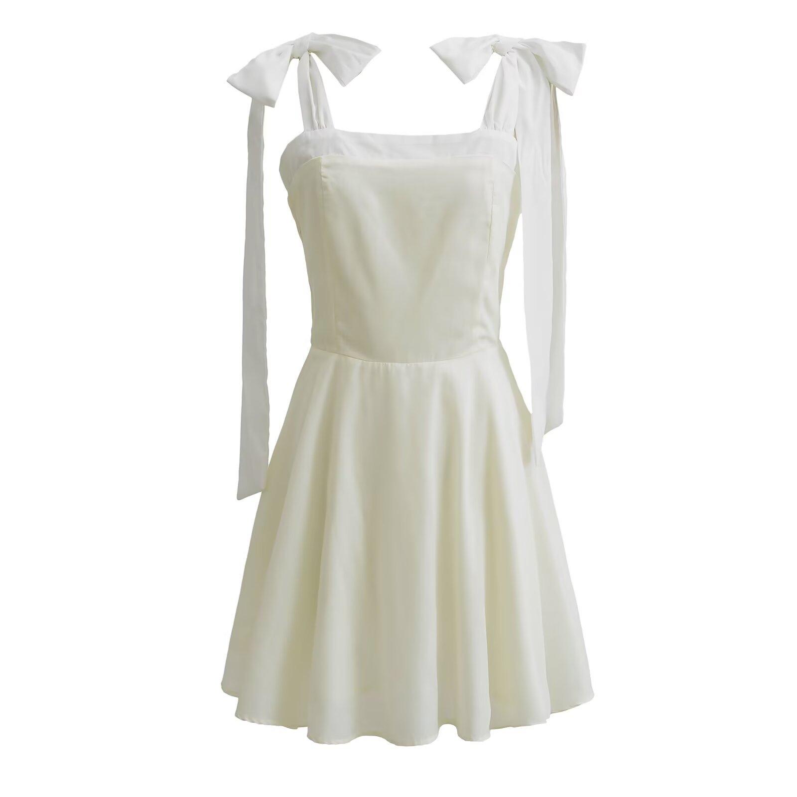 2024 Ropa Nueva de Invierno para Mujer Estilo Europeo y Americano Moda Sencilla Lazos Vestido Corto a la Cintura