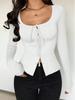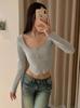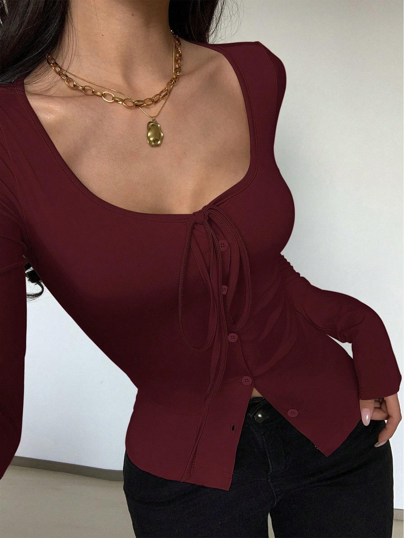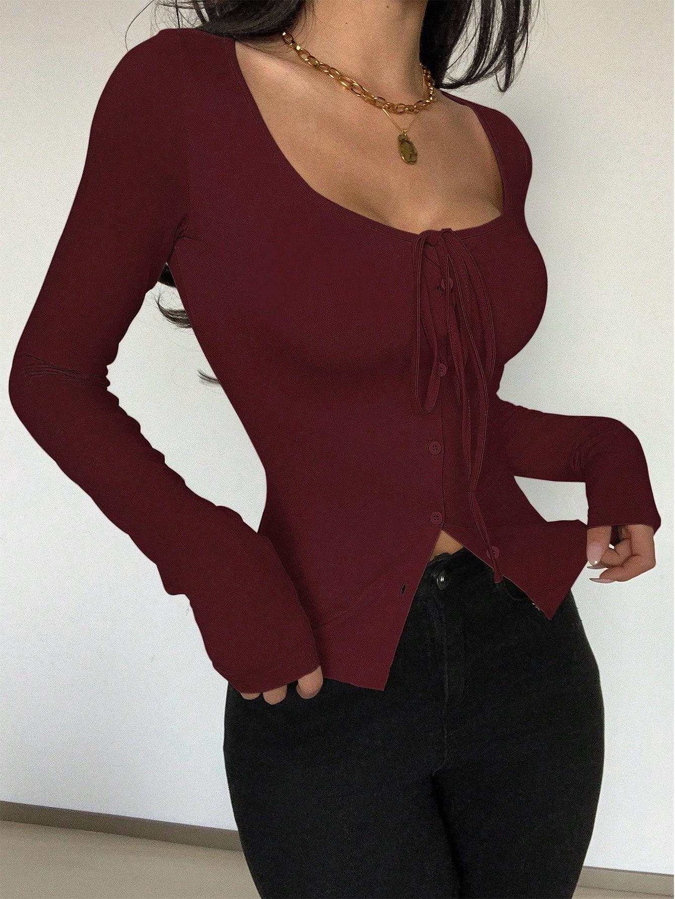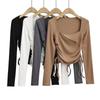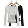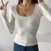 Nuevo Top Ajustado de Tirantes de Color Puro Europeo y Americano de Manga Larga con Cuello Cuadrado Sexy Casual Versátil Camiseta de Moda