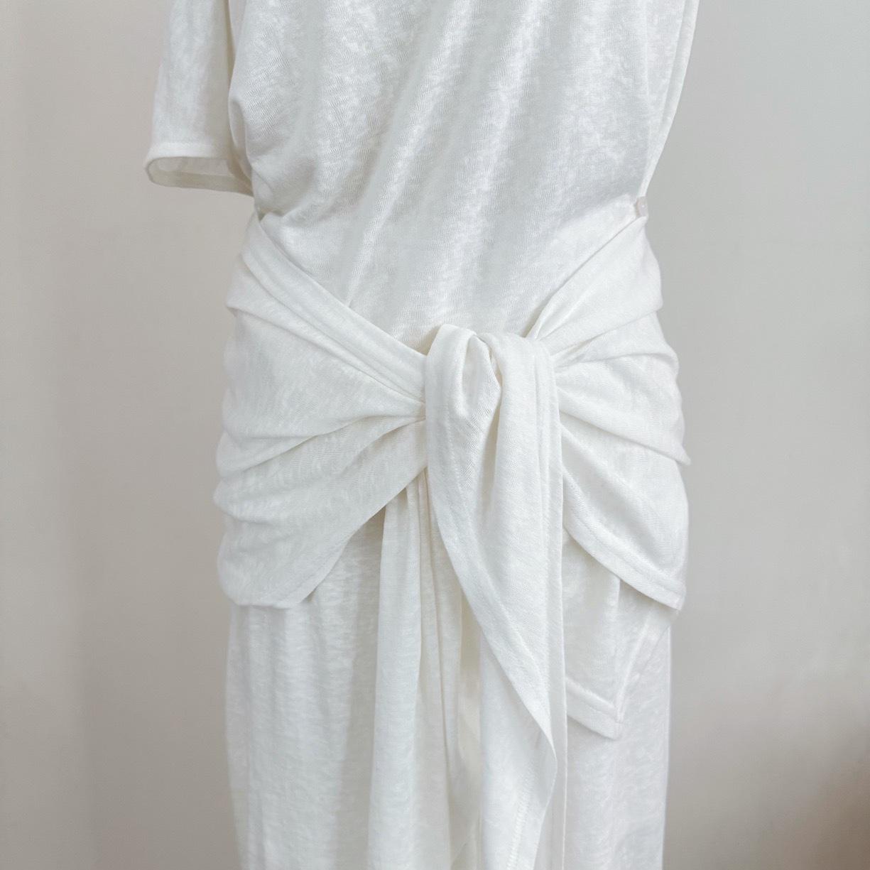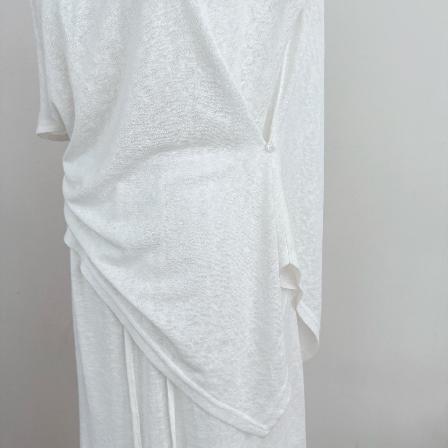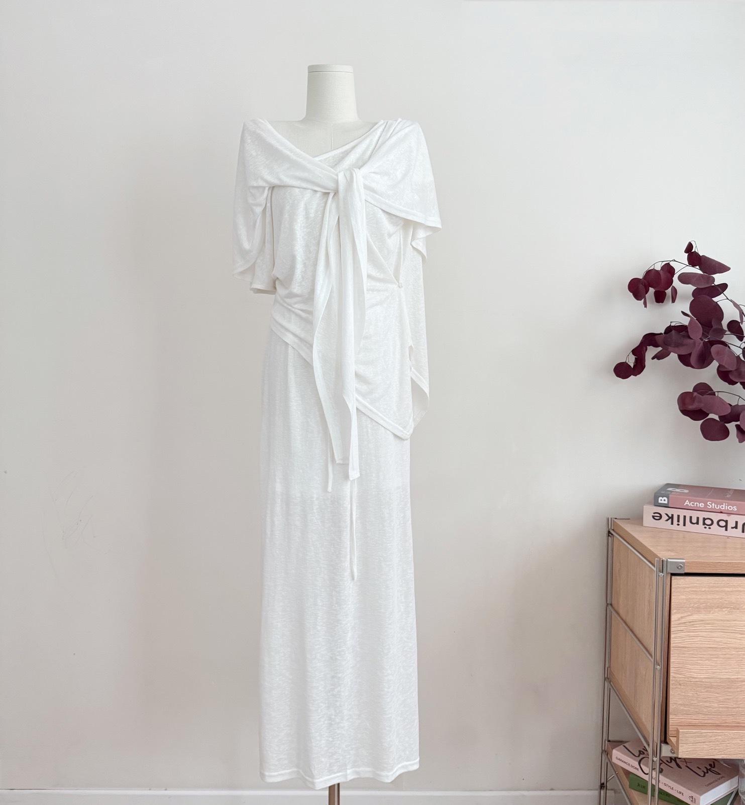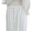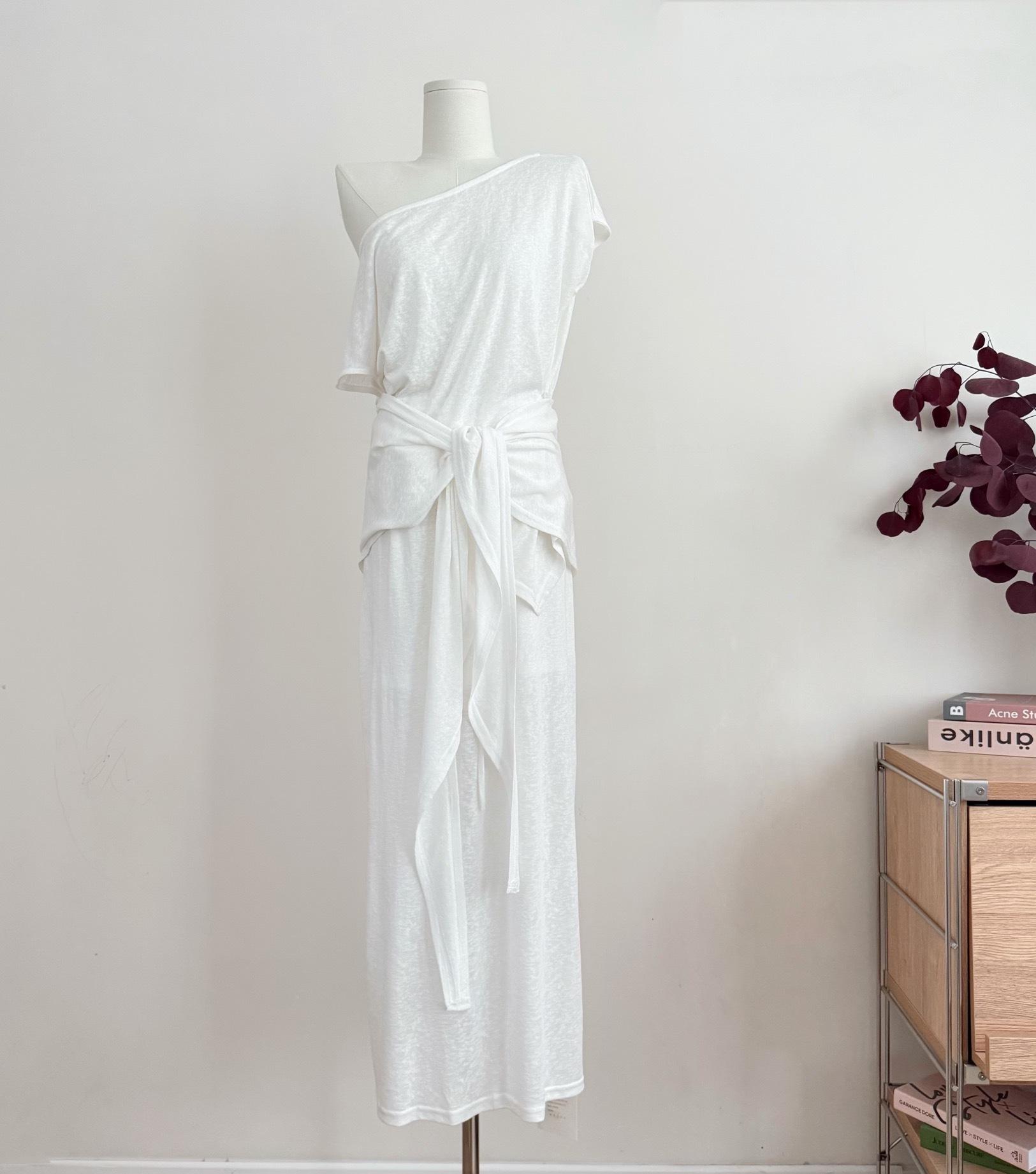 Camiseta Heroína de Alta Inteligencia Blanca Cuello de una Línea para Mujer Verano Falda Elegante Estilo Coreano Estilo Lazy Conjunto de Tres Piezas