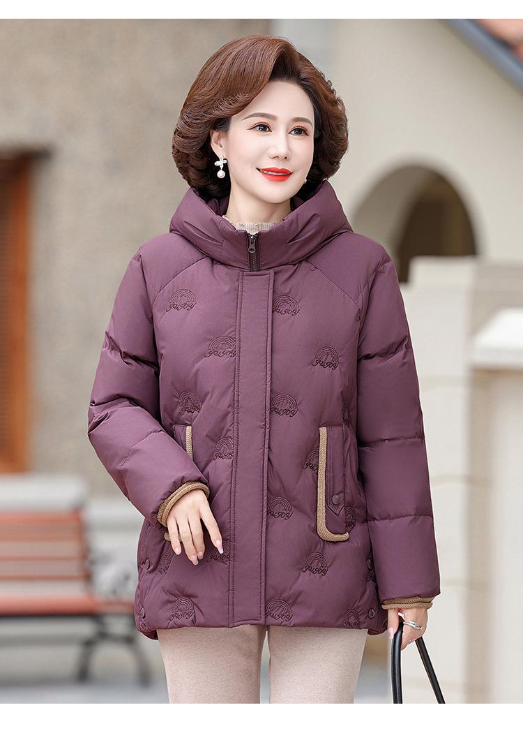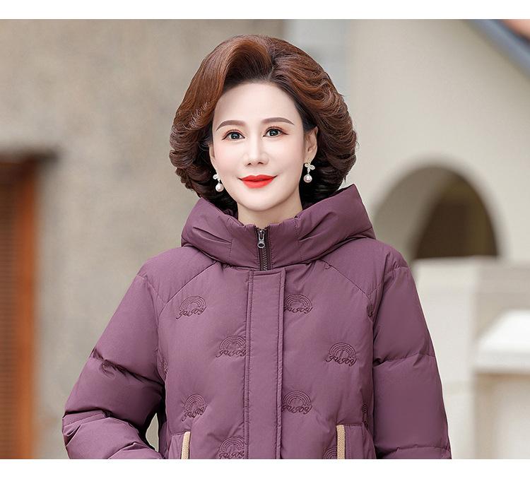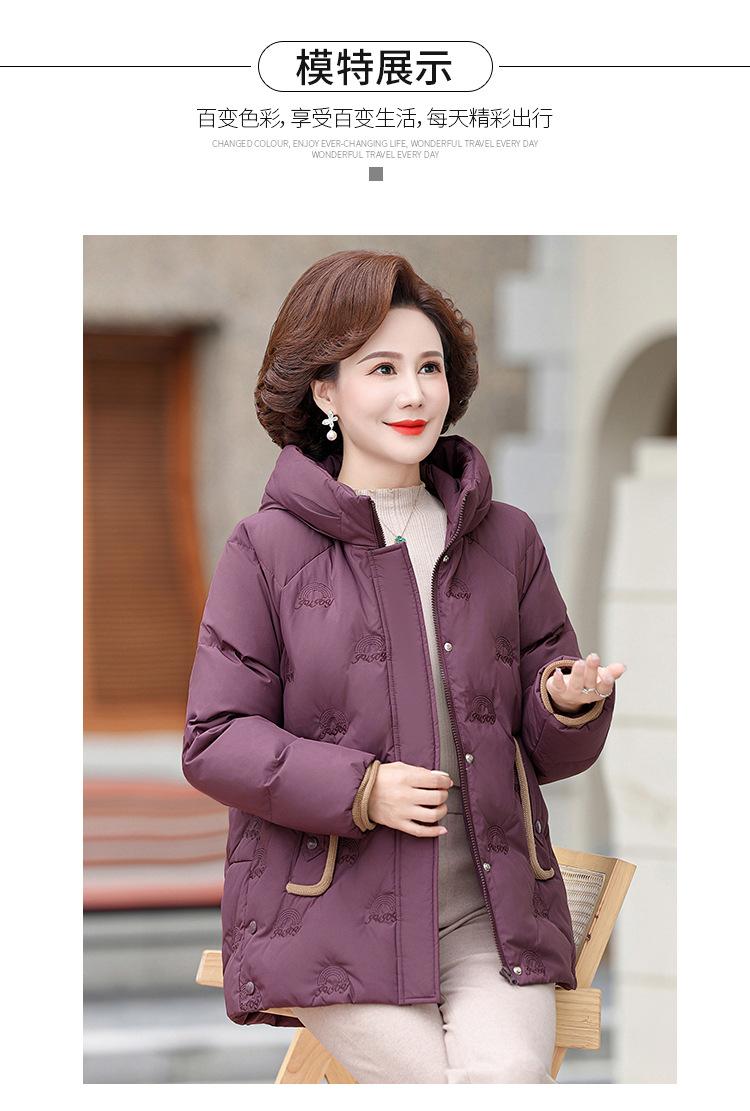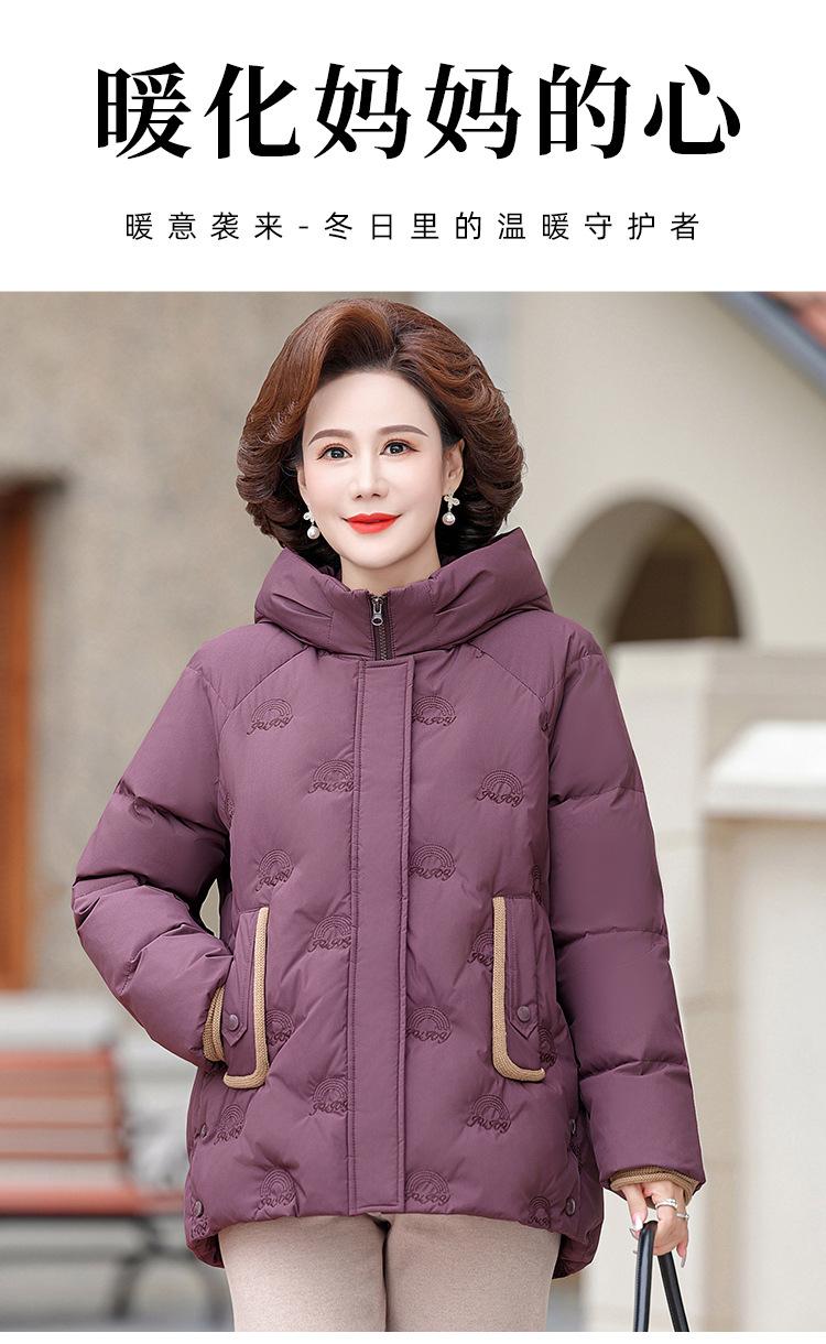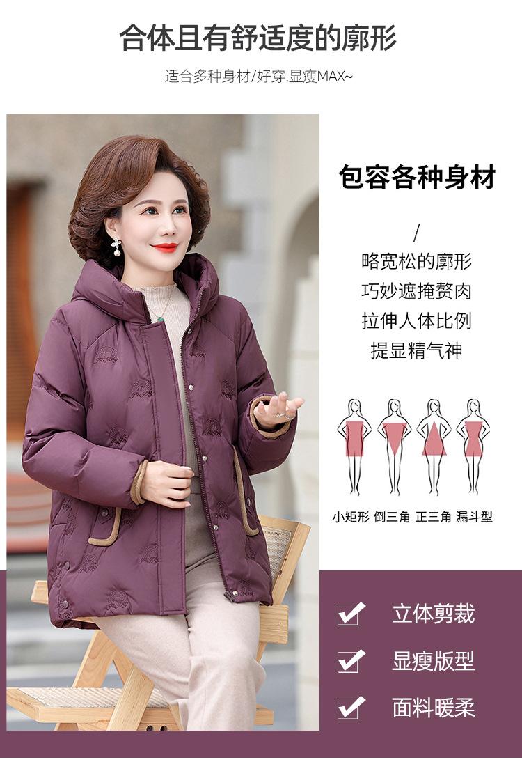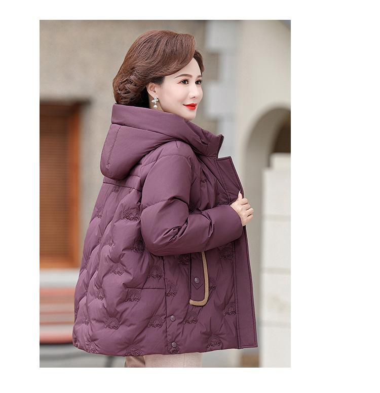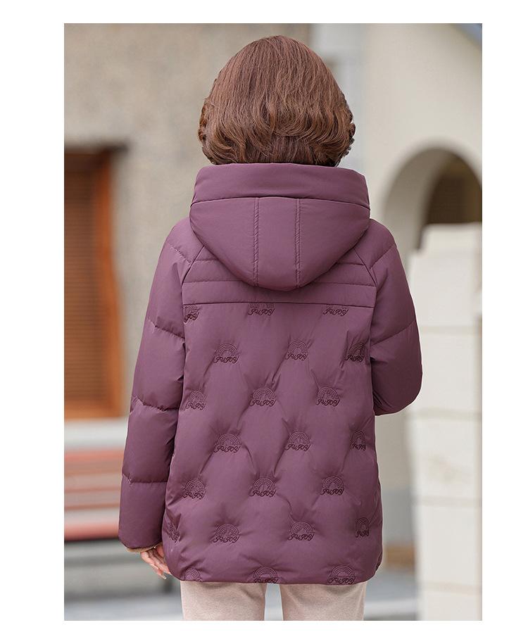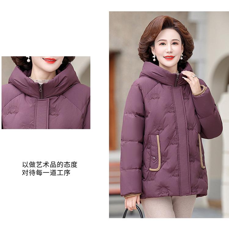 Volando en la Nieve Madre de Mediana Edad Invierno Chaqueta Corta con Capucha de Plumón 2025 Nuevo Estilo de Invierno Chaqueta para Mujeres de Mediana Edad y Ancianas