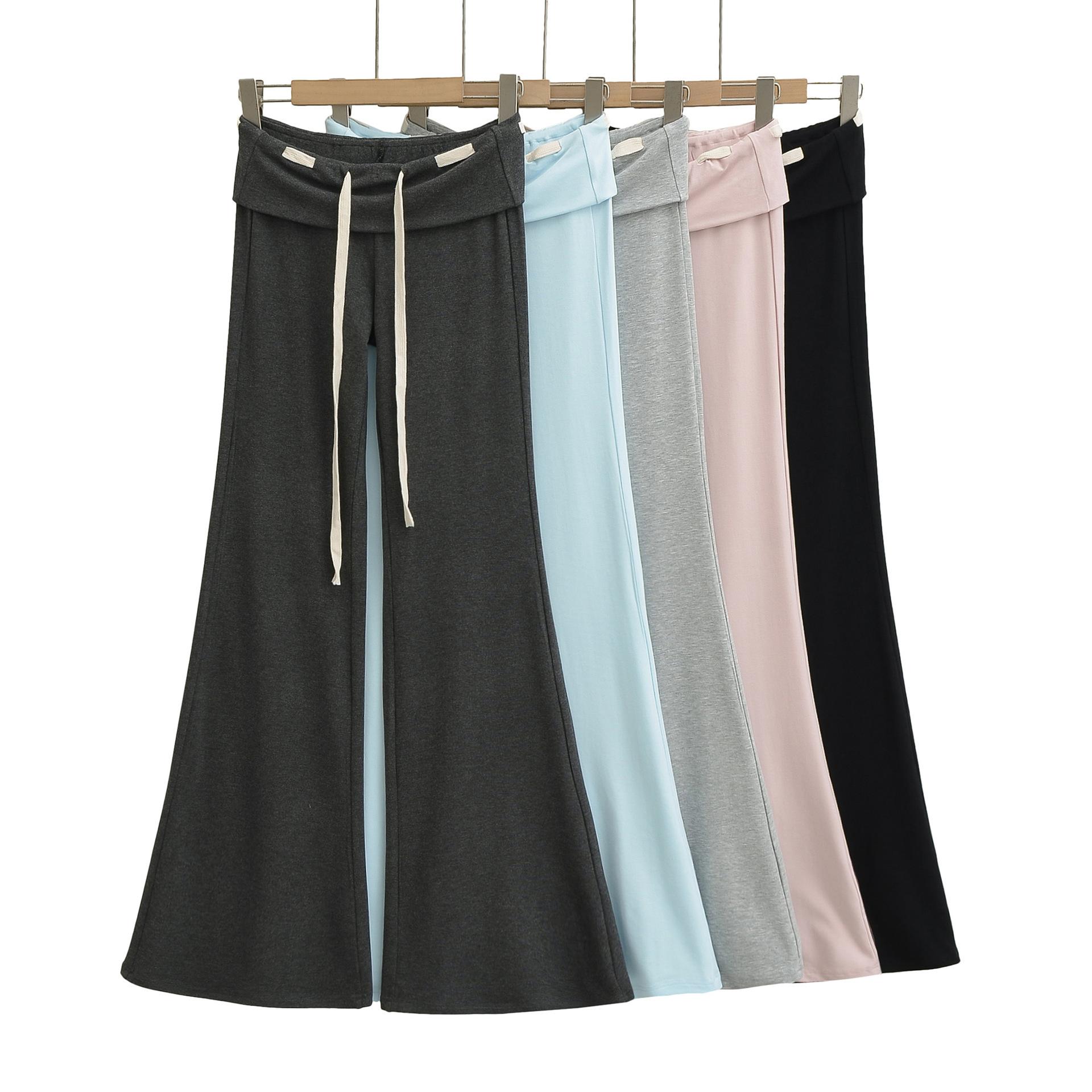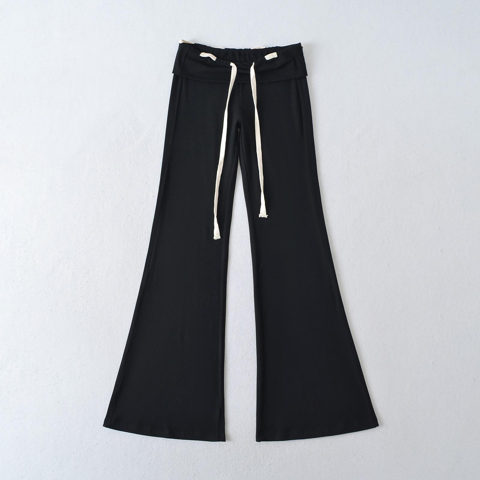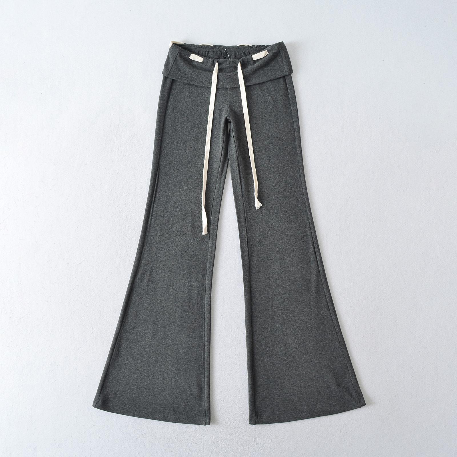 2020-2025 Nuevo Pantalón Acampanado de Cintura Baja con Cordón para Mujer Hot Girl Estilo Europeo y Americano Versátil Pantalón Largo Sexy Pantalón Casual