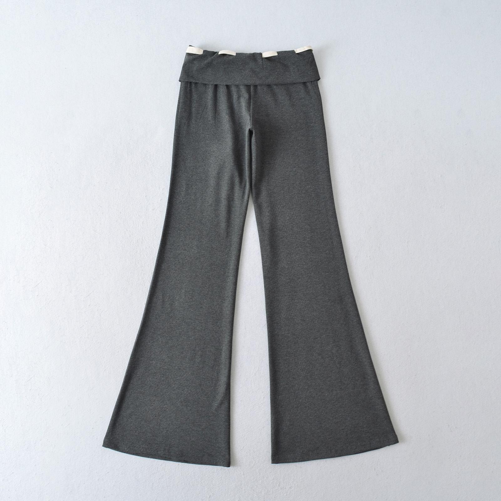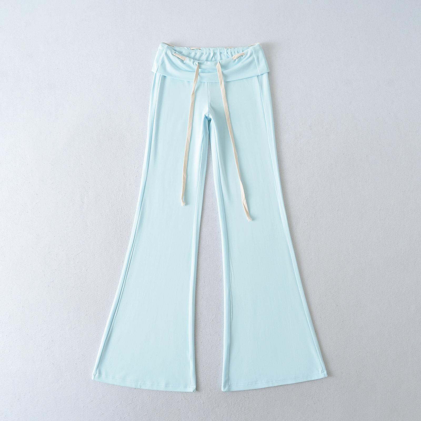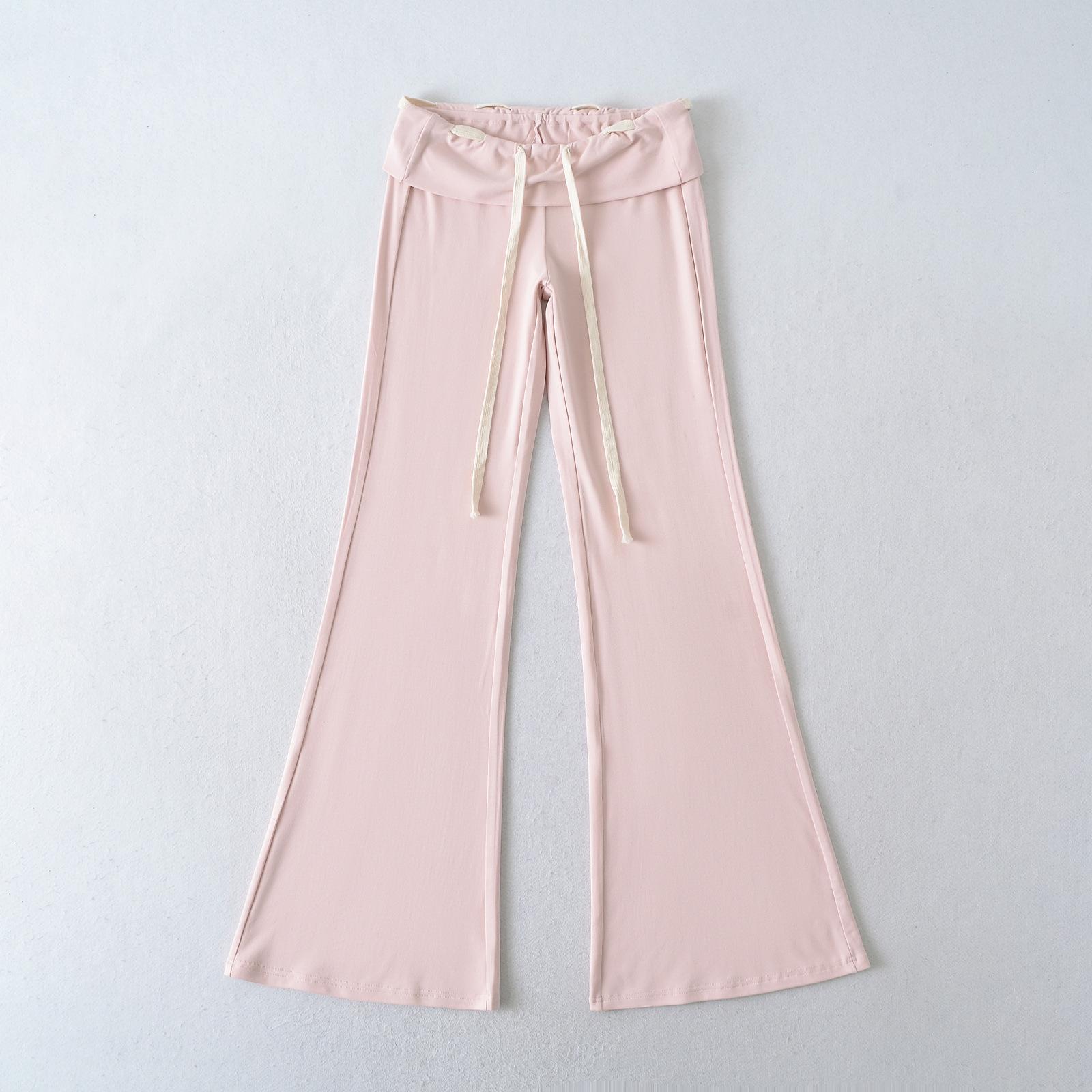 2020-2025 Nuevo Pantalón Acampanado de Cintura Baja con Cordón para Mujer Hot Girl Estilo Europeo y Americano Versátil Pantalón Largo Sexy Pantalón Casual