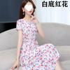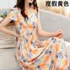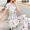 2025 Nuevo Vestido de Verano Elegante de Algodón Seda para Mujer Largo Medio Entallado de Cintura Bajo Amplio Algodón Artificial Falda Exterior Elegante