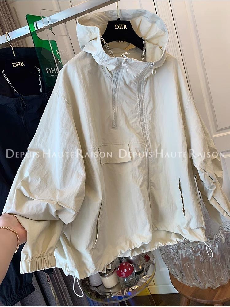 Súper Bonita Chaqueta Deportiva Casual con Cremallera y Capucha Cortavientos para Mujer Otoño Suelta 2024 Nuevo Estilo