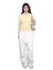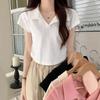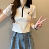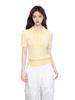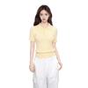 Playera de Punto Trenzado Amarillo con Solapa Tipo Polo de Manga Corta para Mujer en Verano, Corte Ajustado, Top Corto de Hombro Derecho