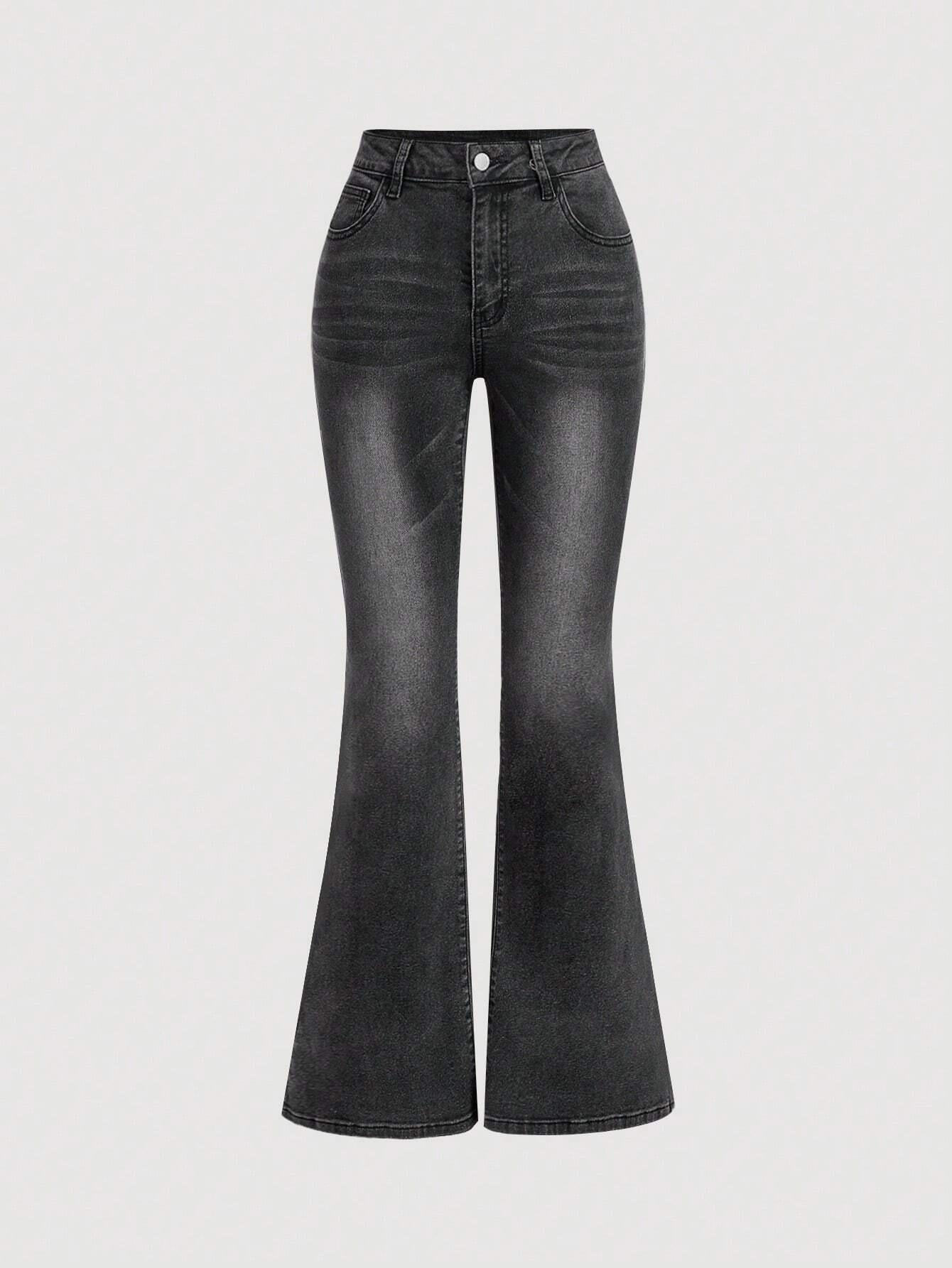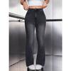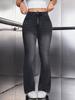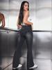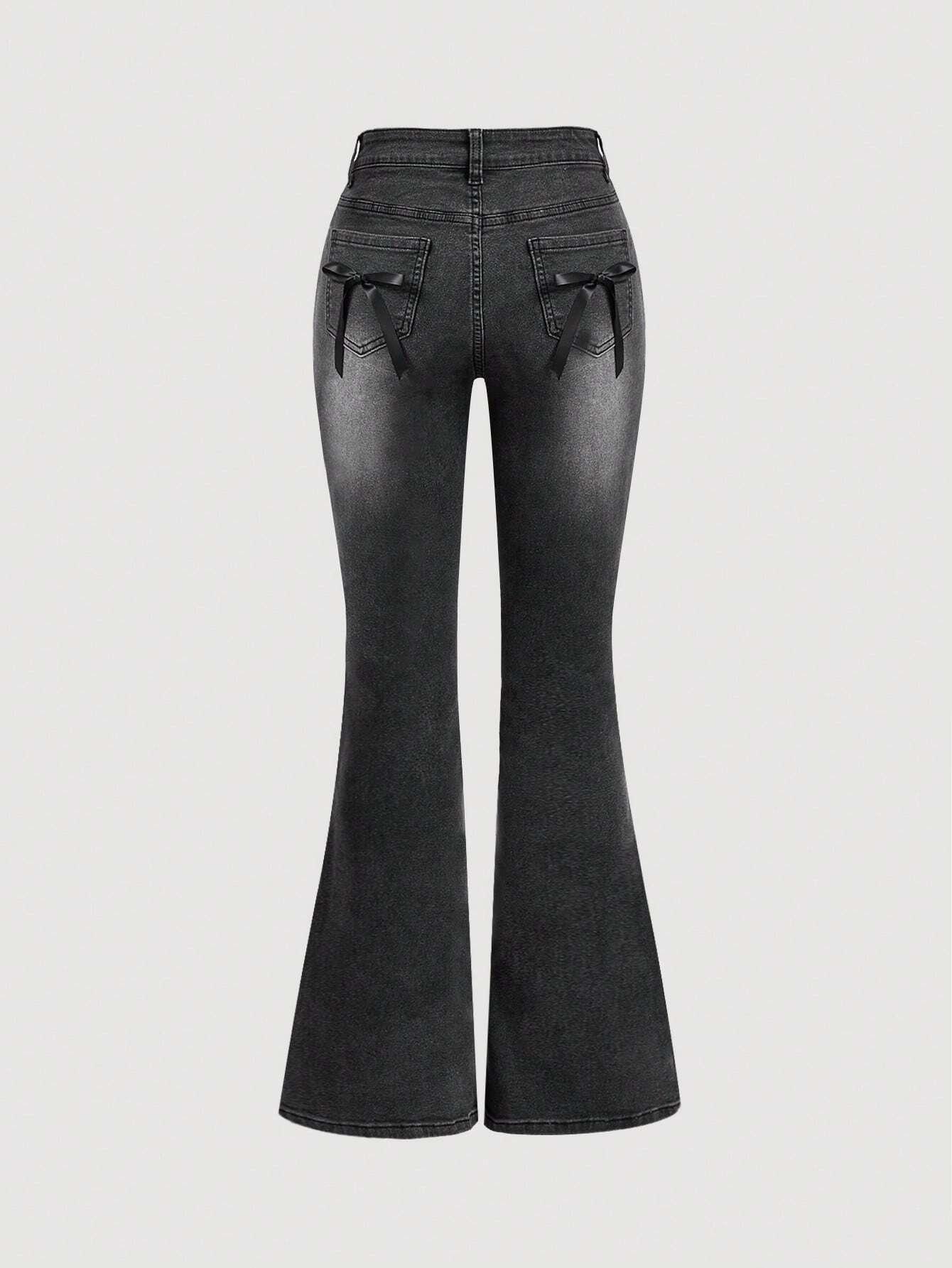 Jeans Personalizados Europeos y Americanos Transfronterizos Negros Decorados con Lazo de Campana Tejido Elástico Ajustado Pantalones de Moda para Mujer
