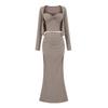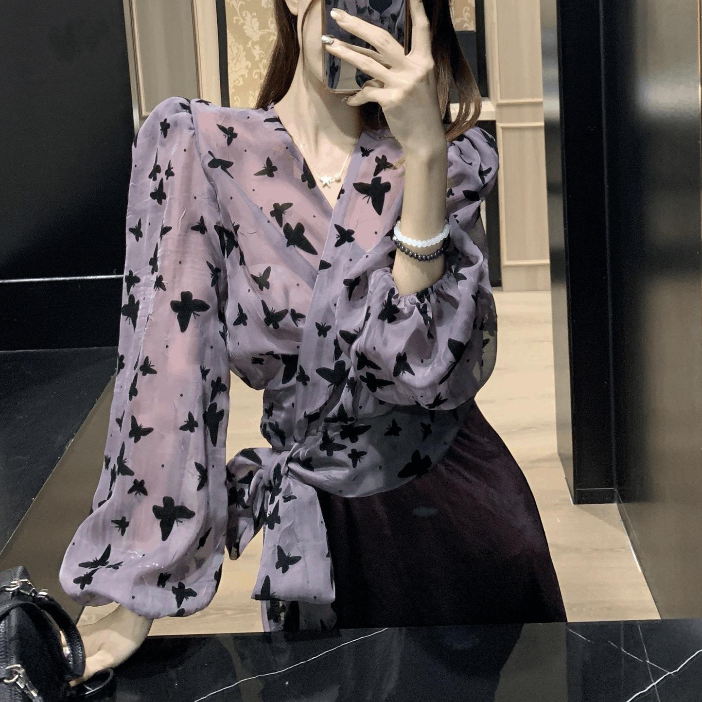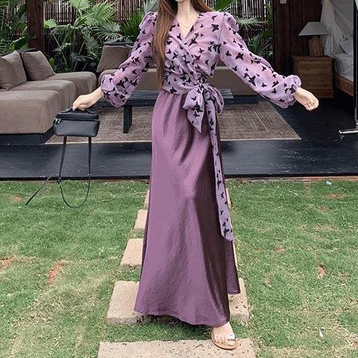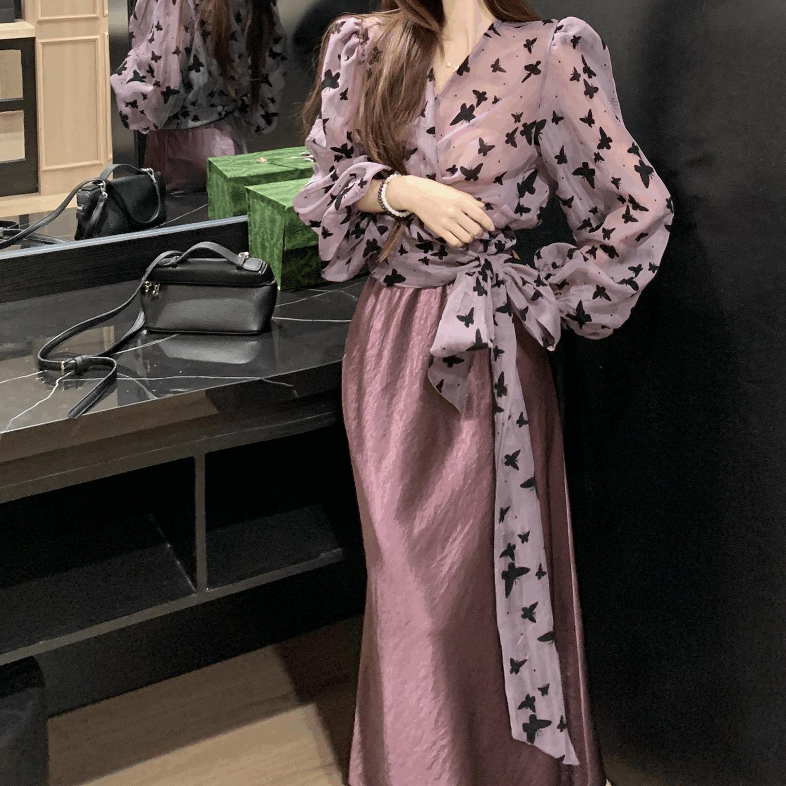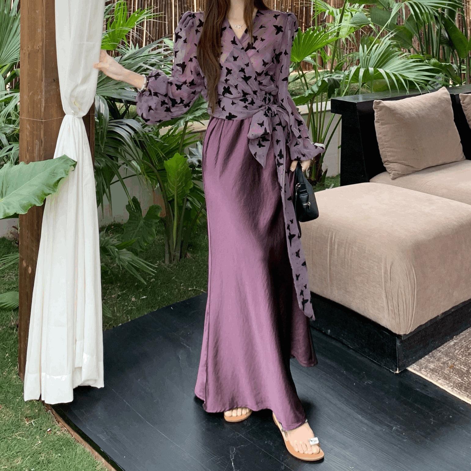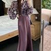 Diseñados Tops Morados Estampados con Tirantes y Manga Larga para Mujer Moda Verano 2025 Traje Falda de Cintura Alta Conjunto de Dos Piezas