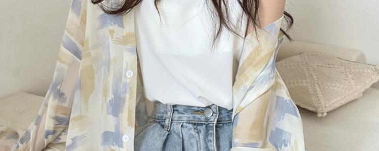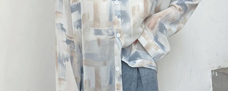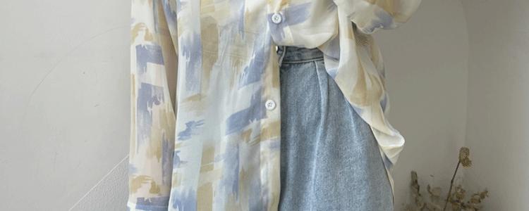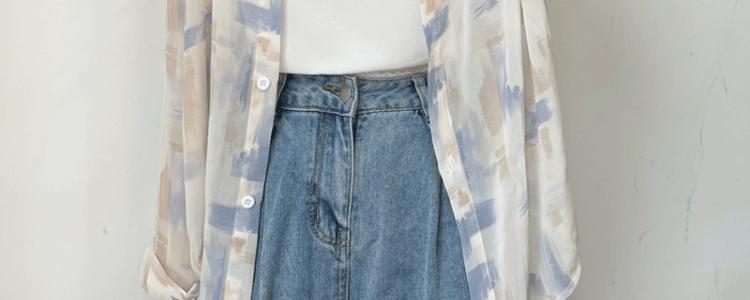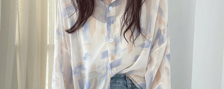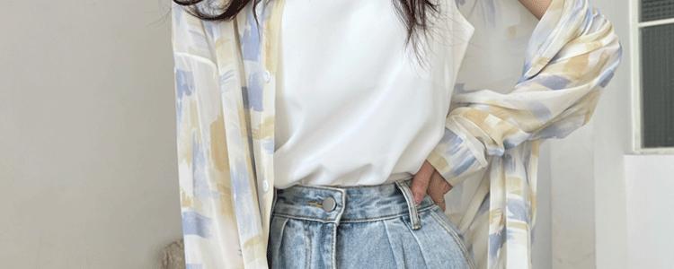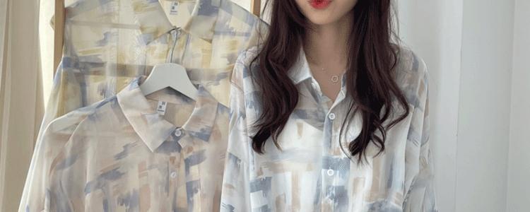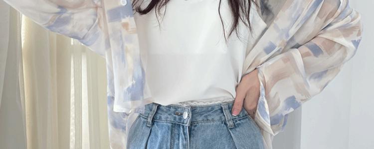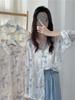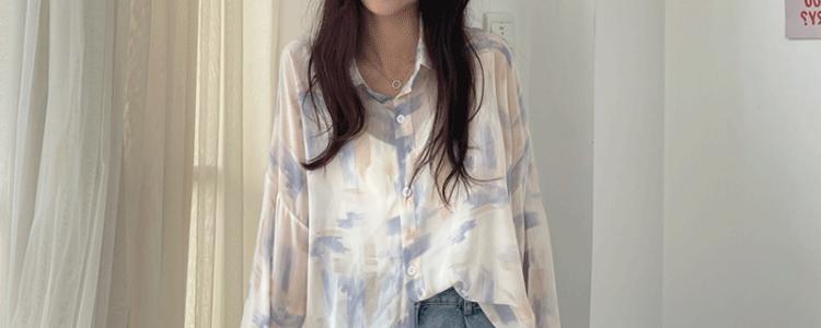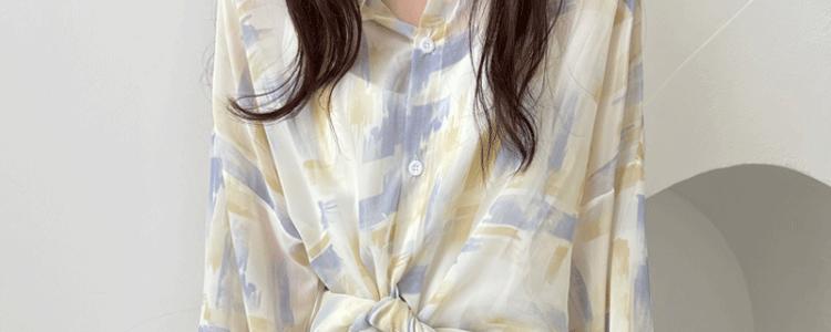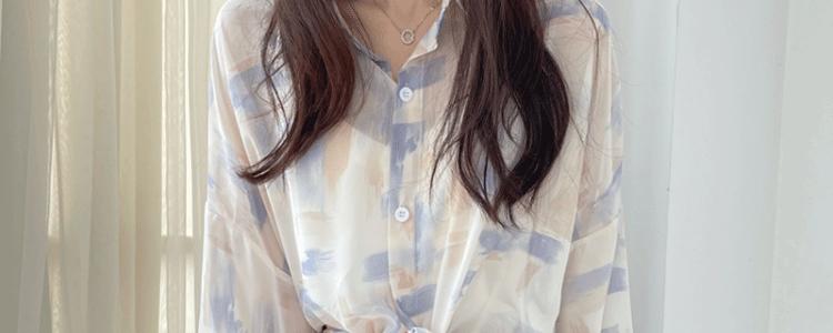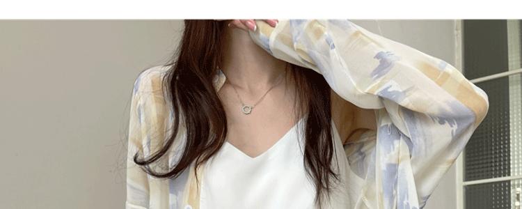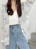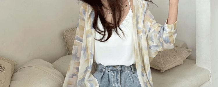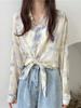 Camisa Floral Tie-Dye con Protección Solar para Mujer, Top Cárdigan de Chifón Delgado de Verano con Tirantes Camisa de Manga Larga de Seda Helada Chaqueta