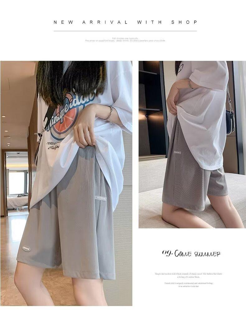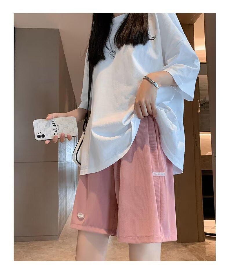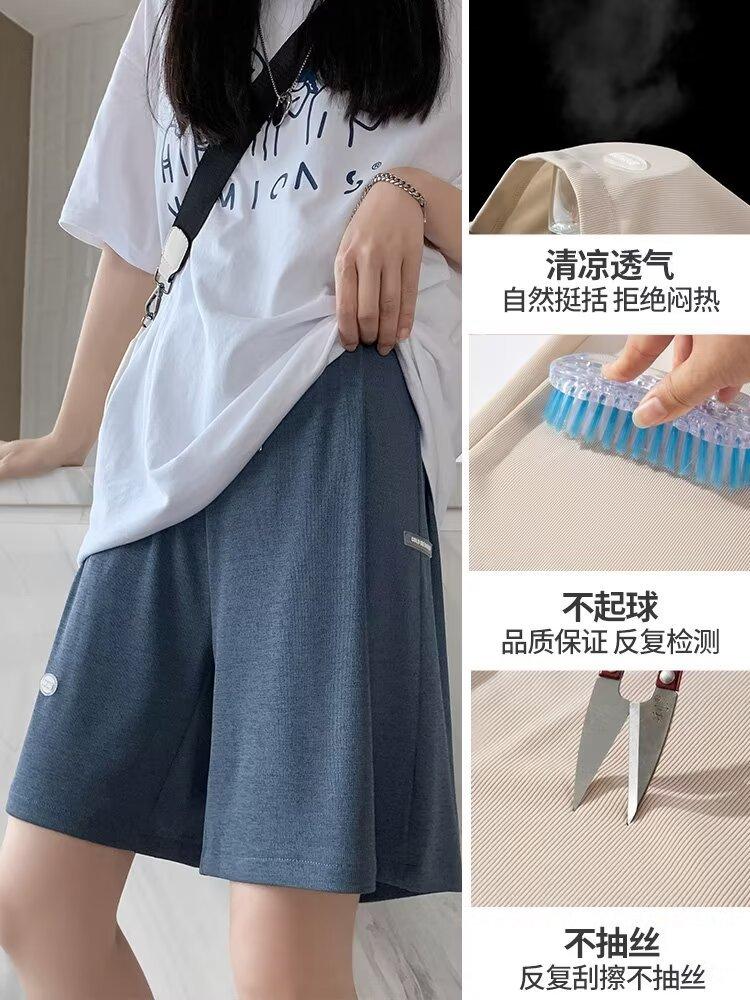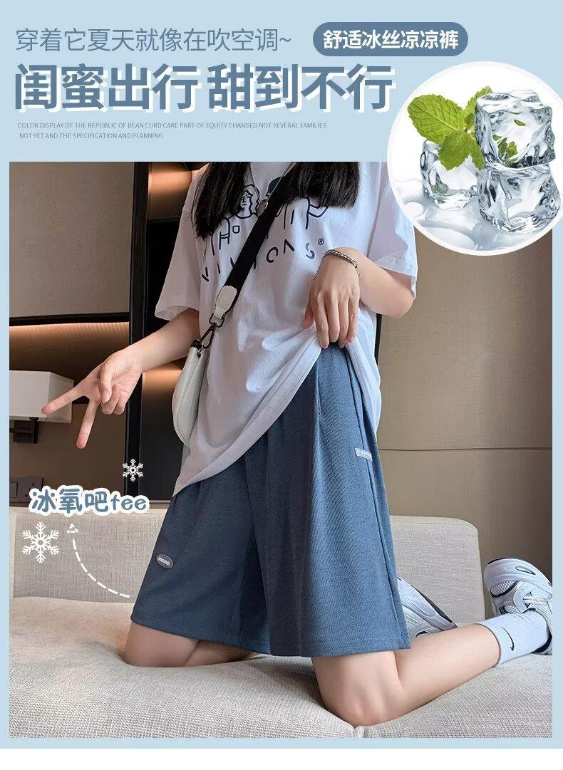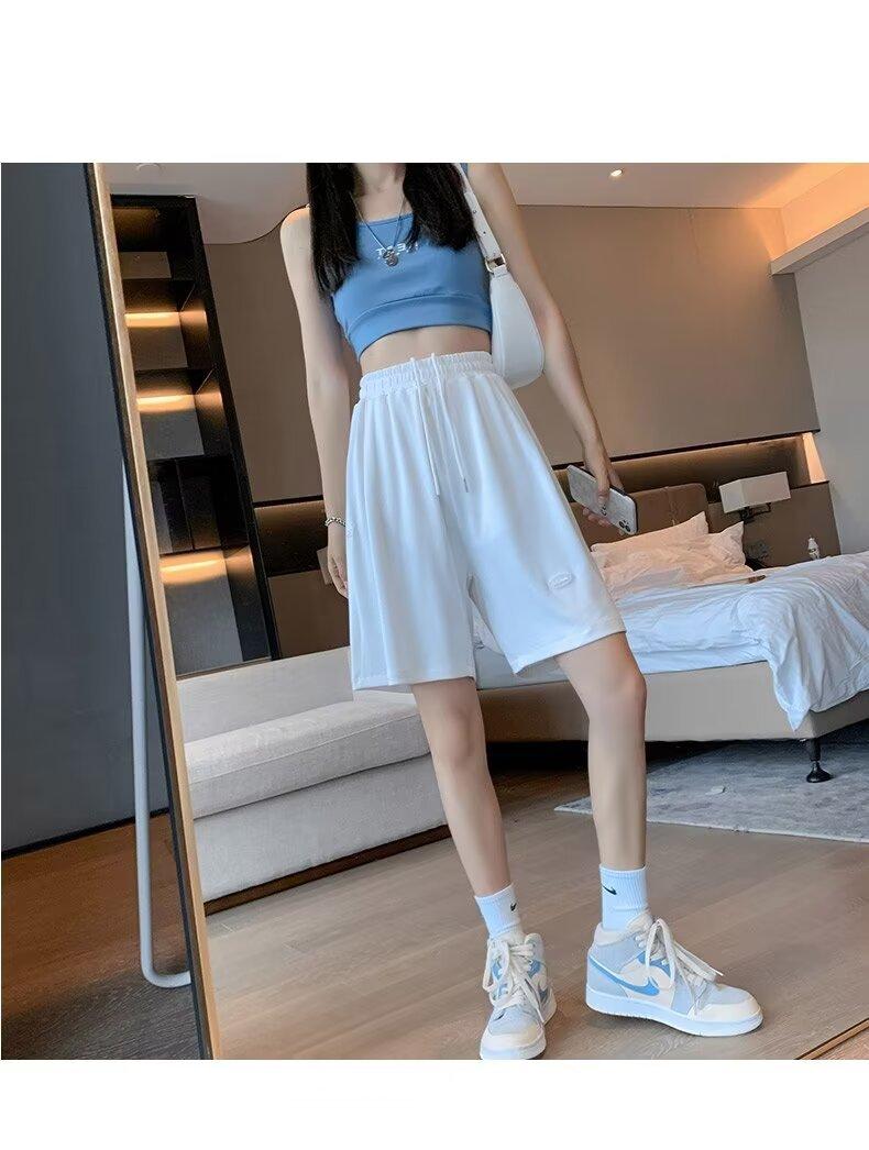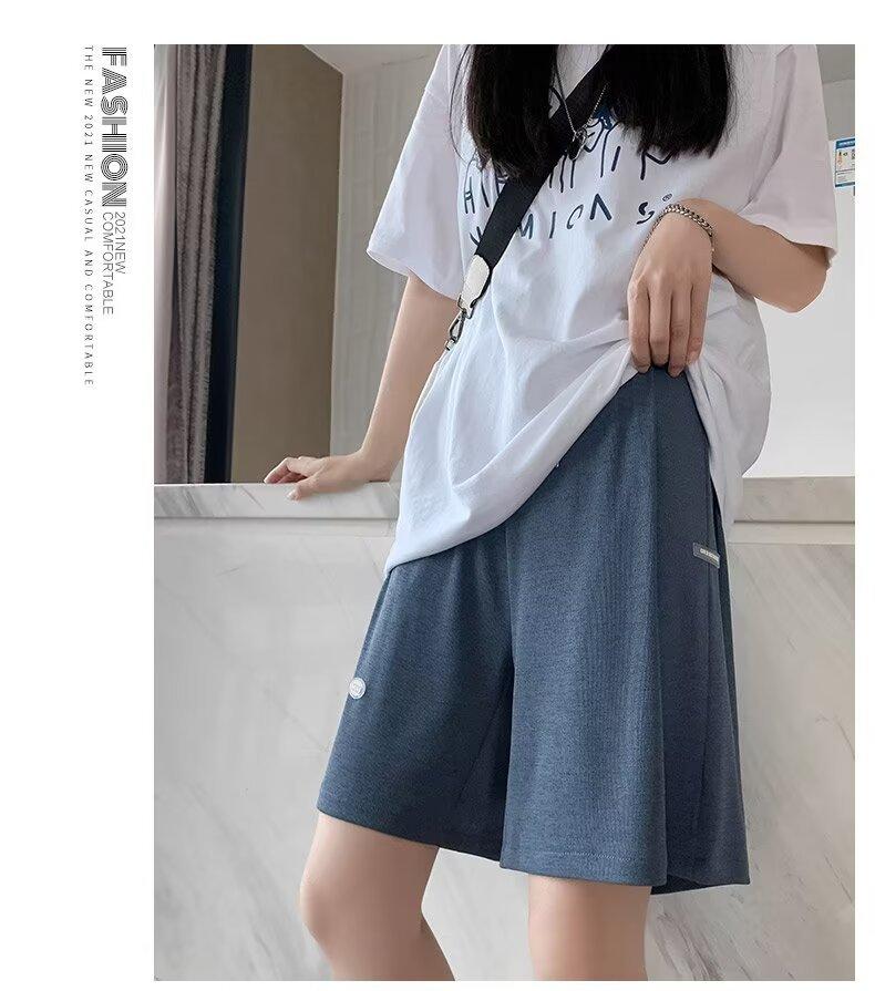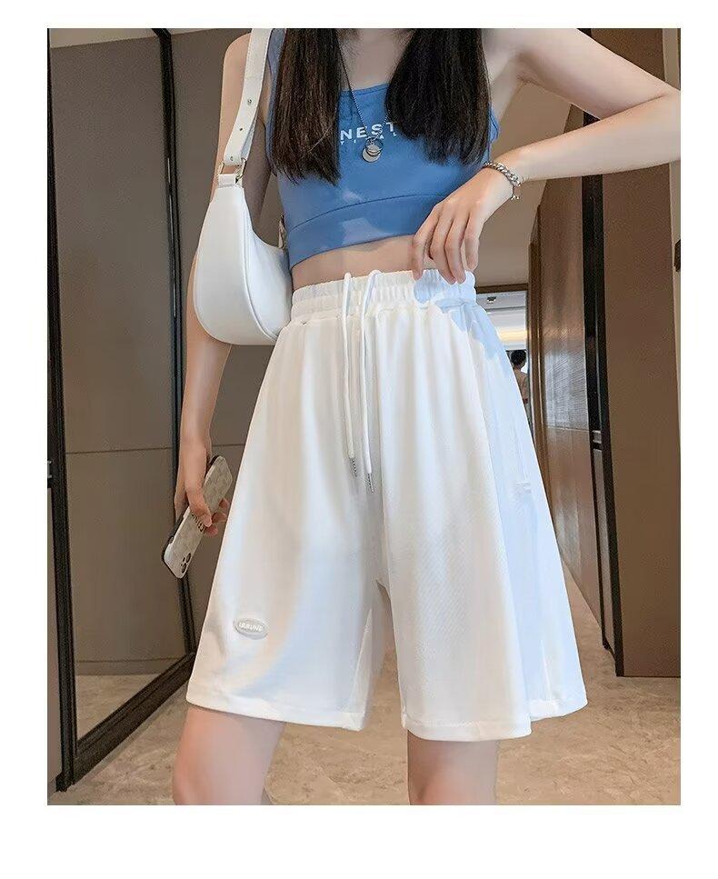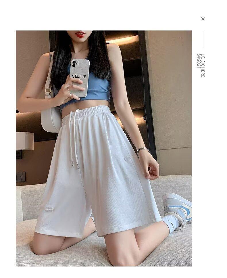 Pantalones cortos de seda de hielo para mujer, de verano, finos, adelgazantes, sueltos, de cintura alta, rectos, casuales, de pierna ancha, pantalones deportivos