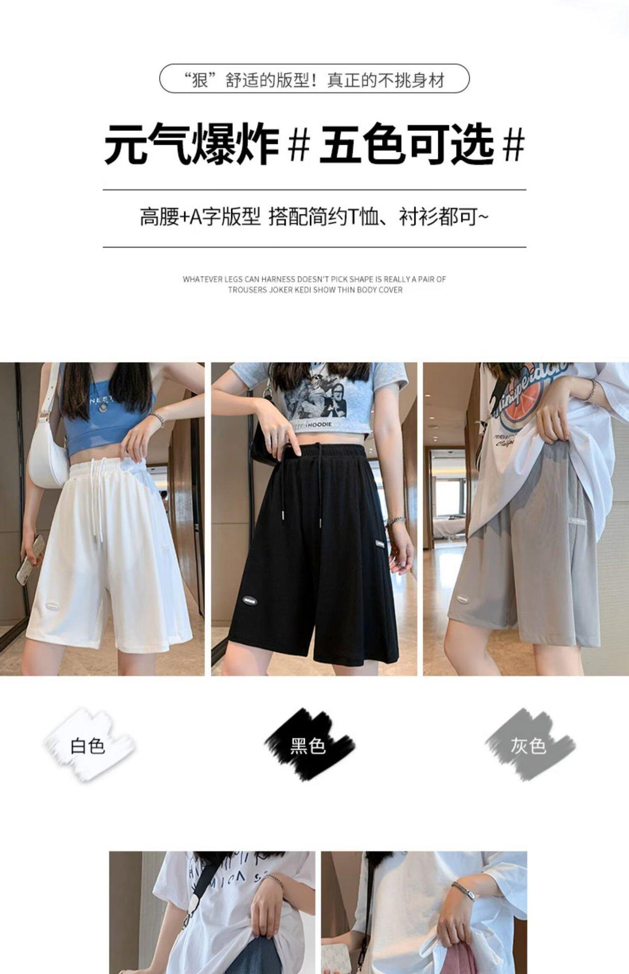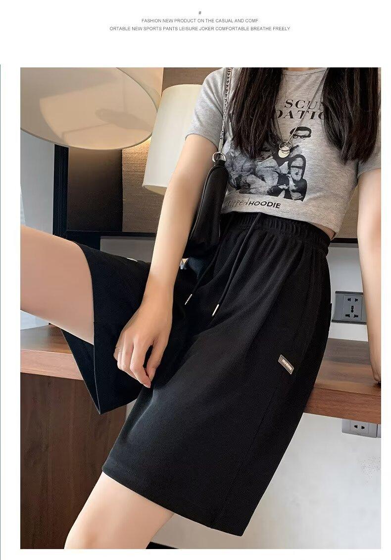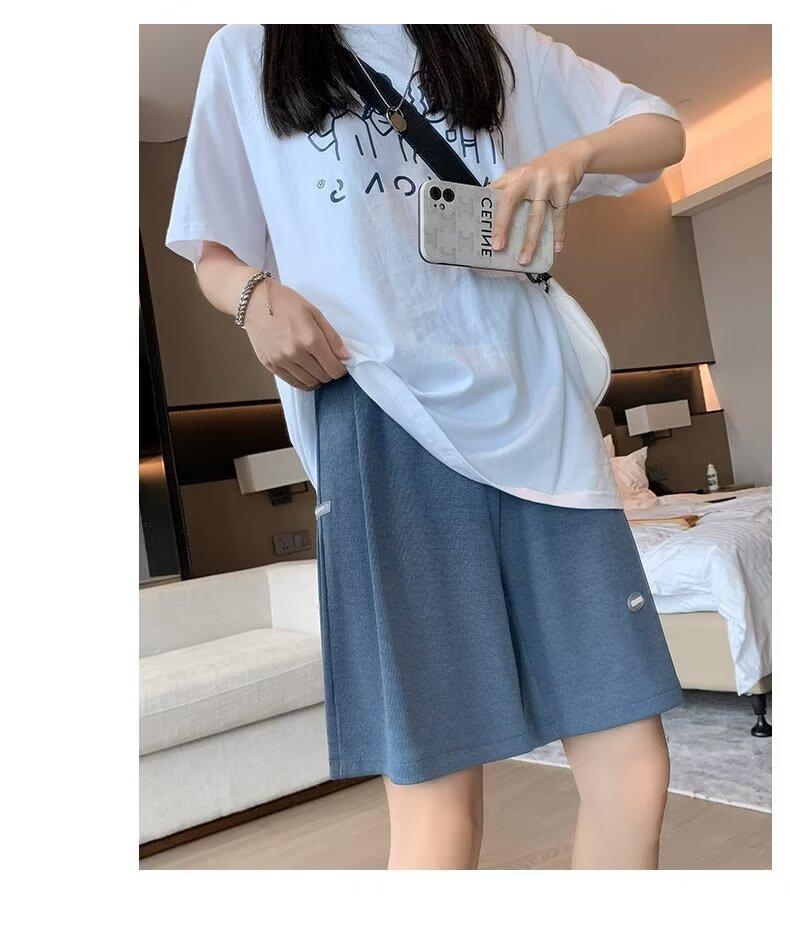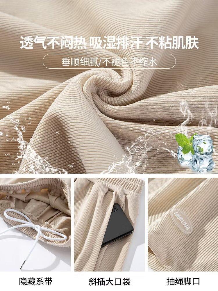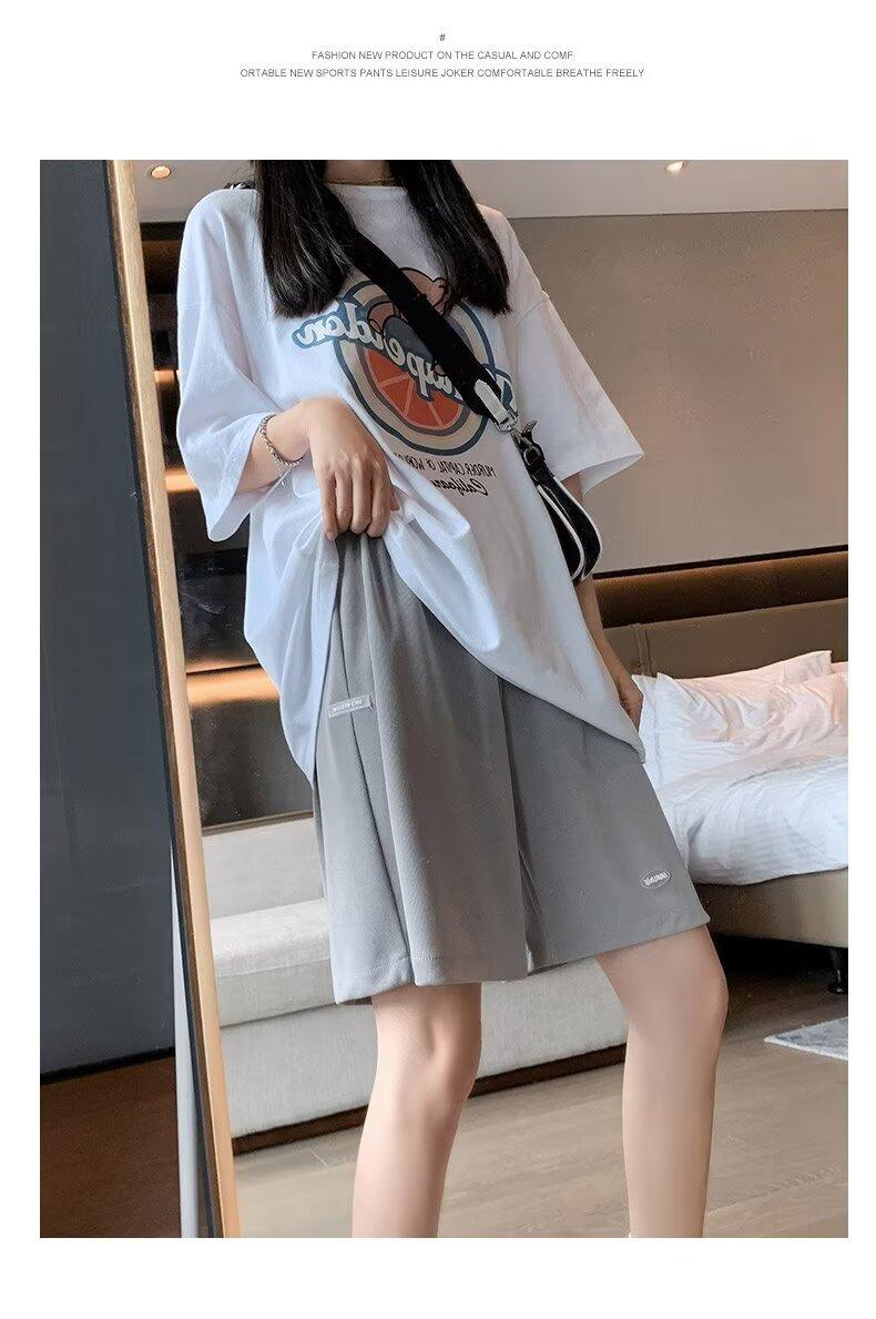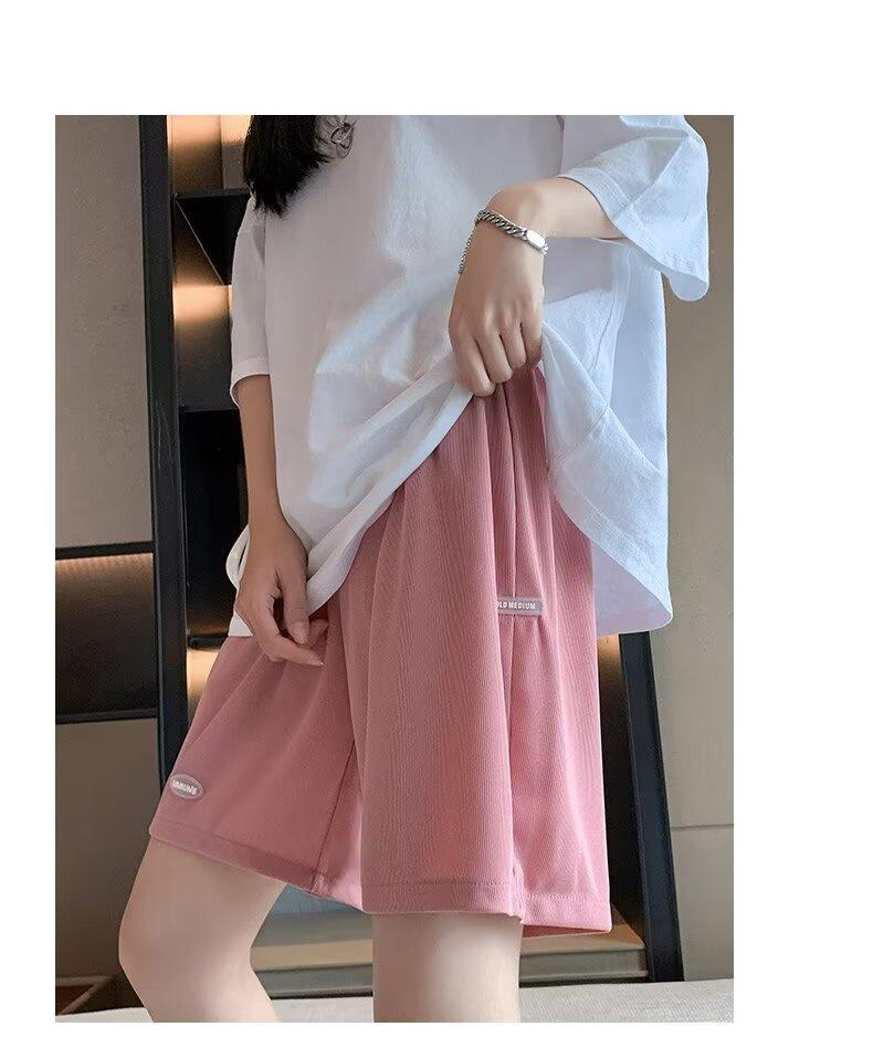 Pantalones cortos de seda de hielo para mujer, de verano, finos, adelgazantes, sueltos, de cintura alta, rectos, casuales, de pierna ancha, pantalones deportivos