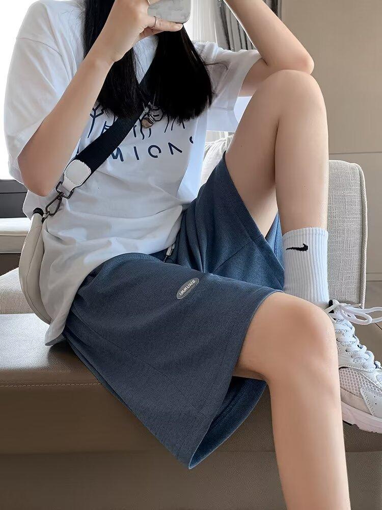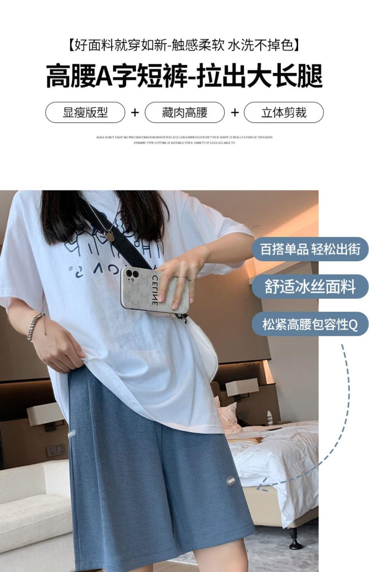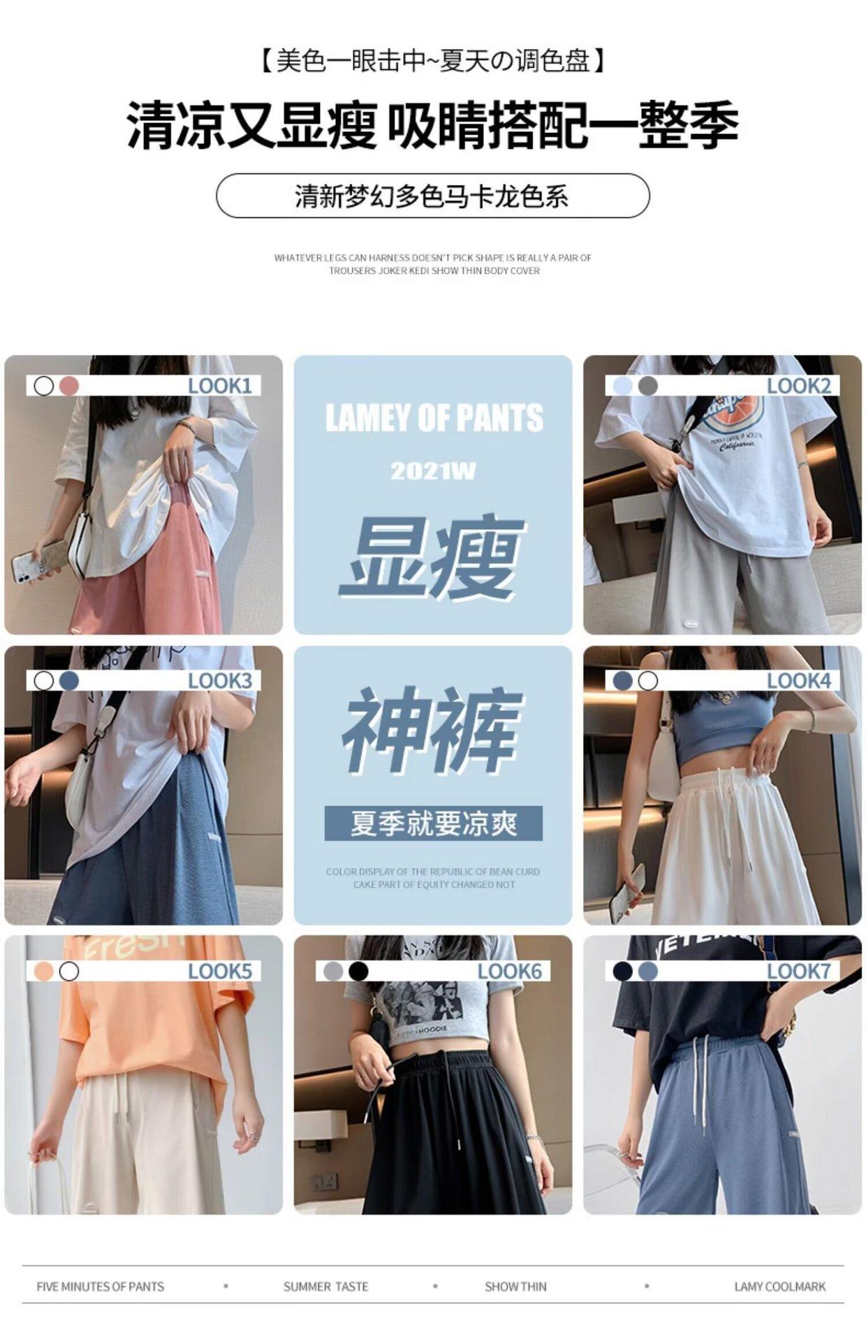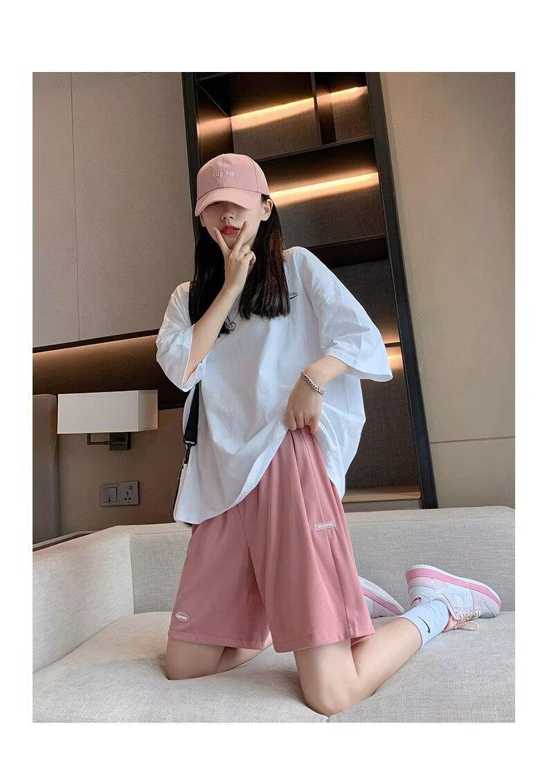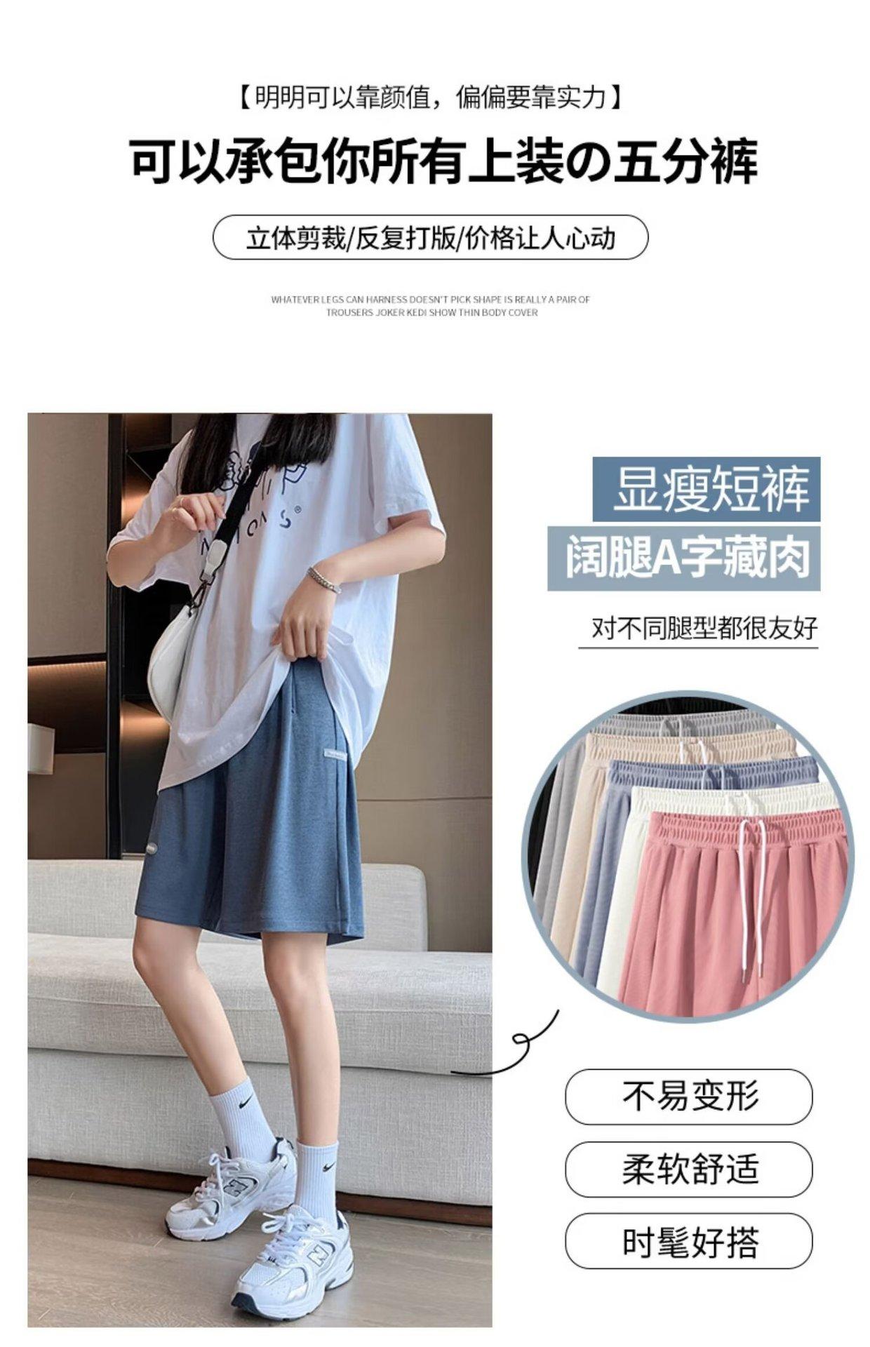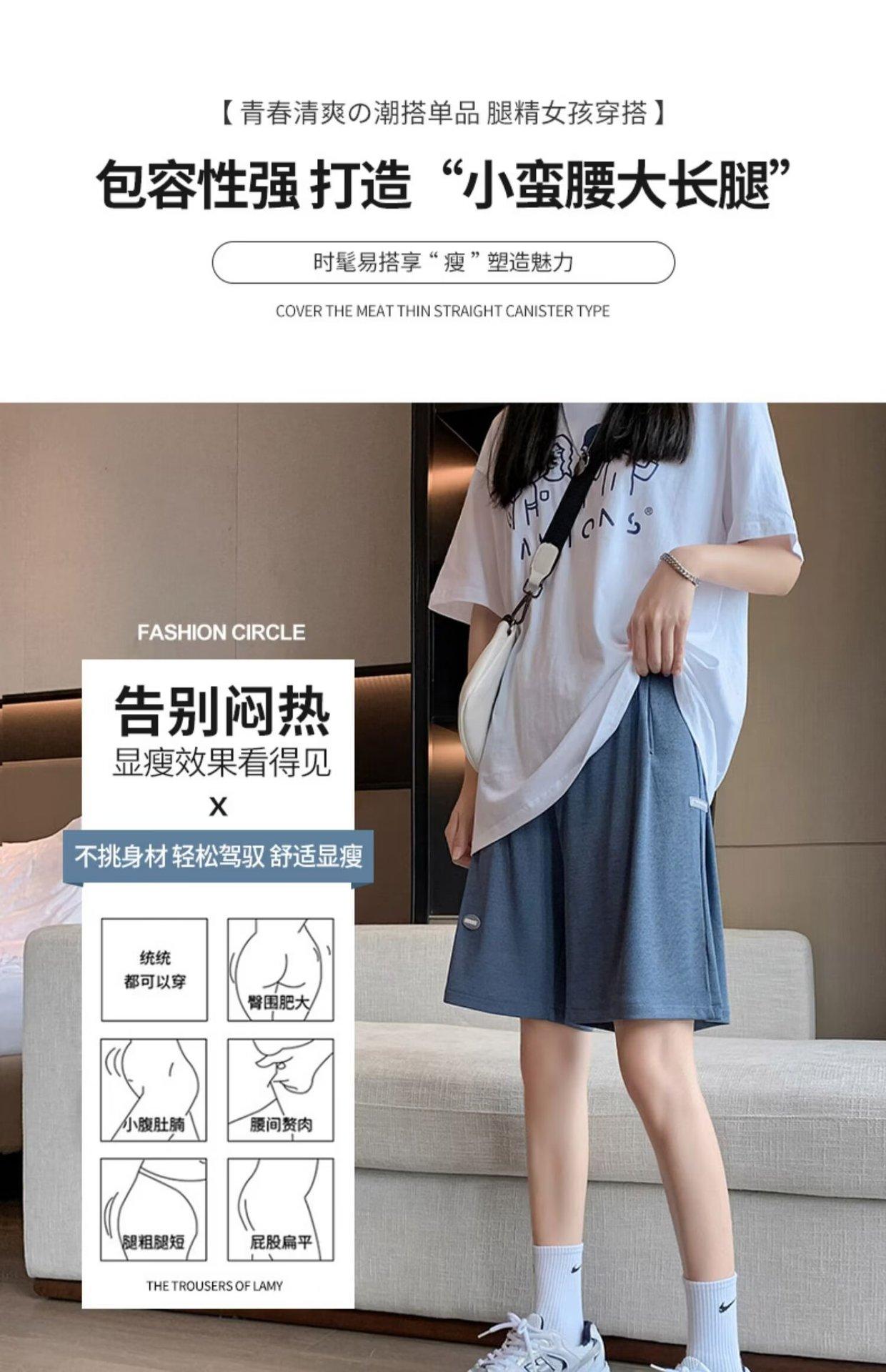 Pantalones cortos de seda de hielo para mujer, de verano, finos, adelgazantes, sueltos, de cintura alta, rectos, casuales, de pierna ancha, pantalones deportivos