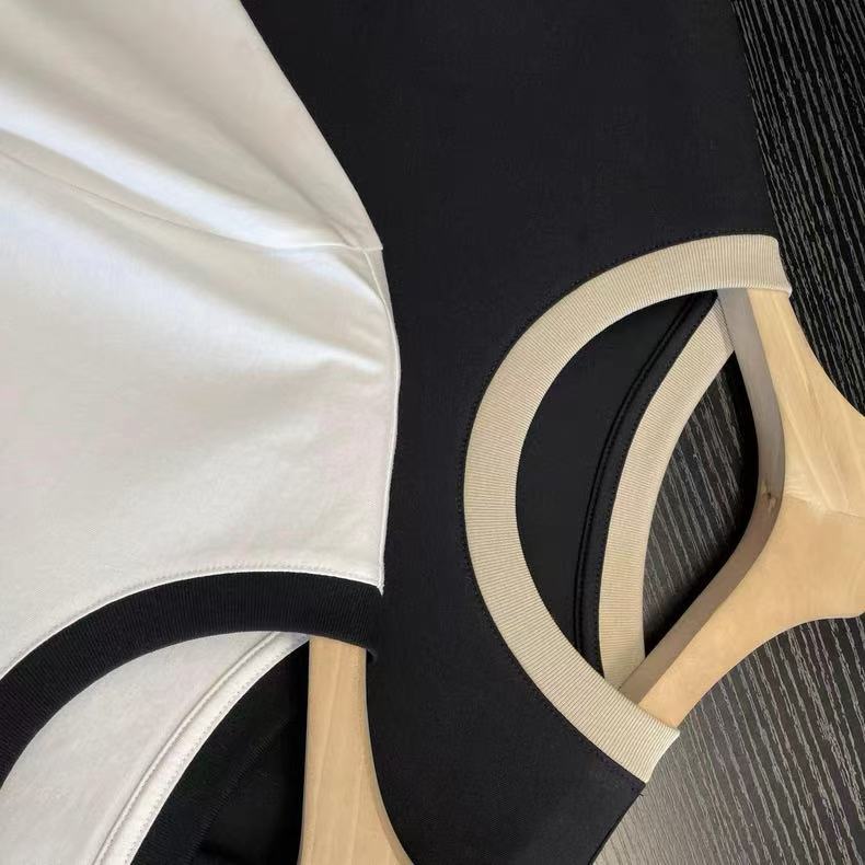 El escote presenta un diseño de color contrastante, rompiendo la monotonía y realzando el sentido general de la moda.