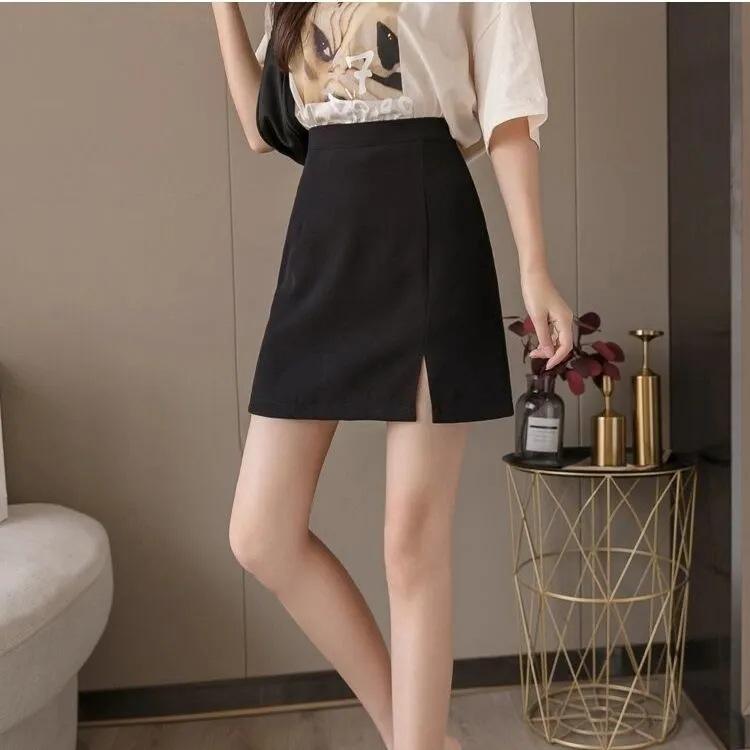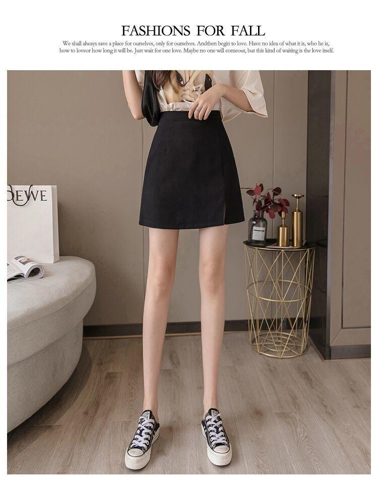 Falda Corta Estilo Preppy 2025 con Abertura Cubre Caderas para Mujer Falda Línea A Anti-Exposición Verano Cintura Alta Efecto Adelgazante