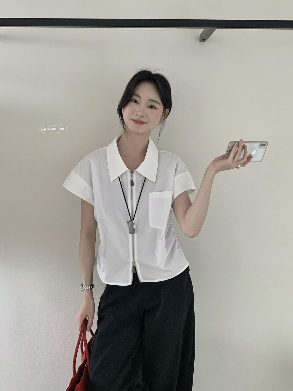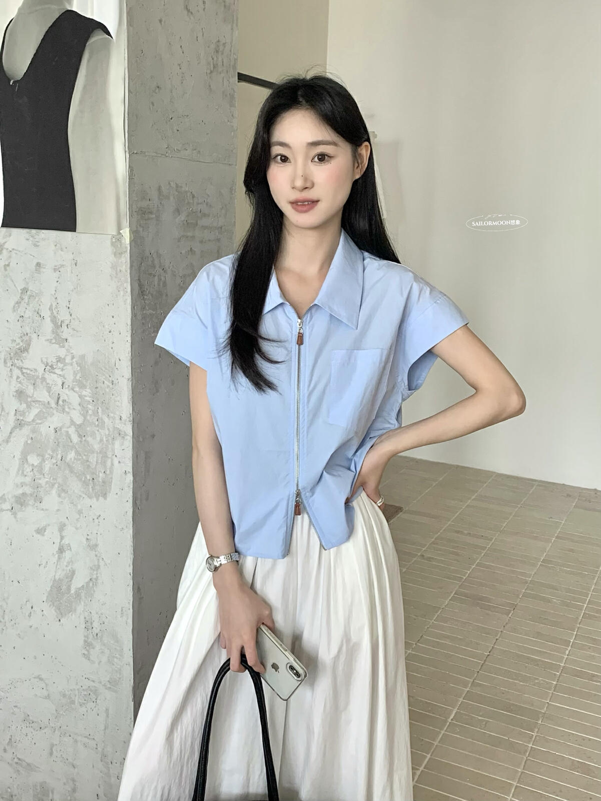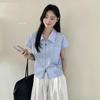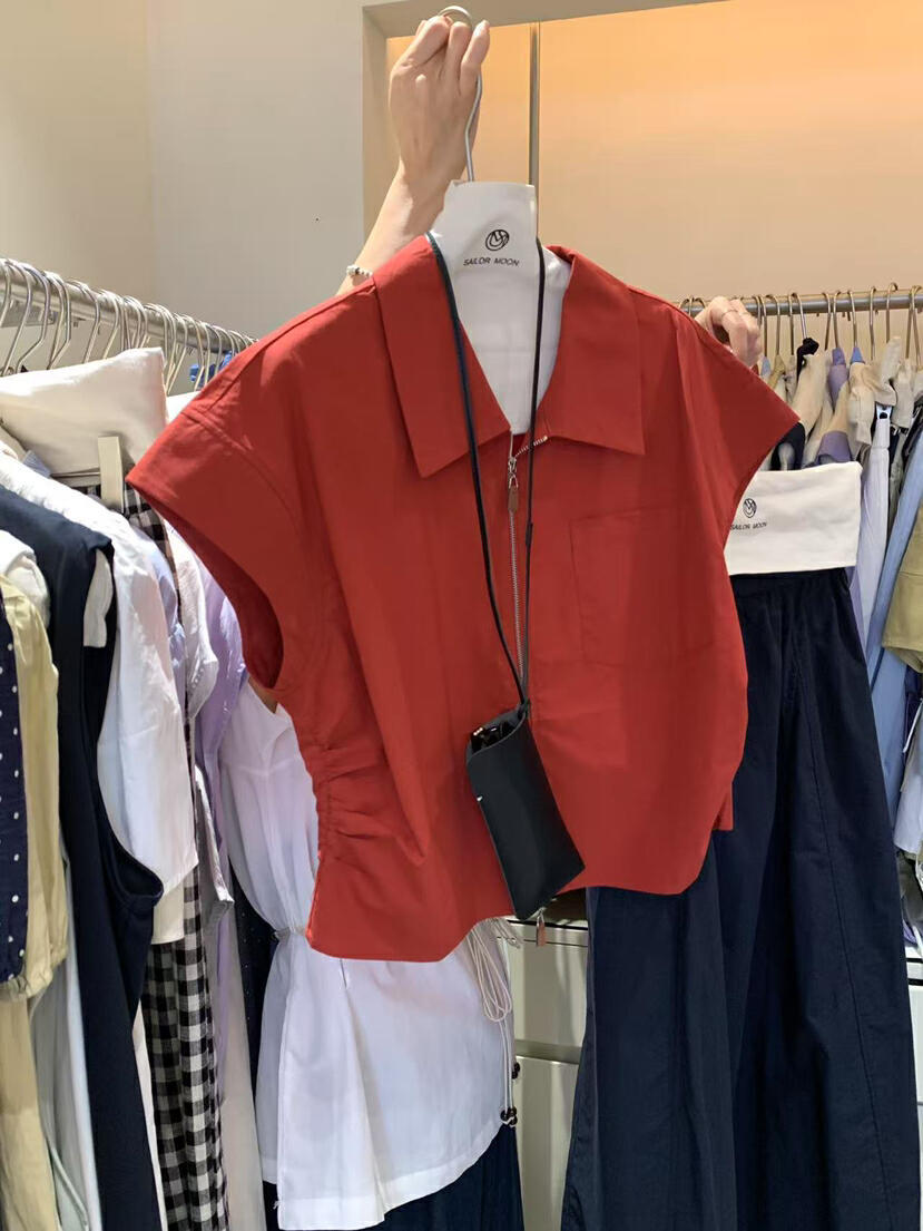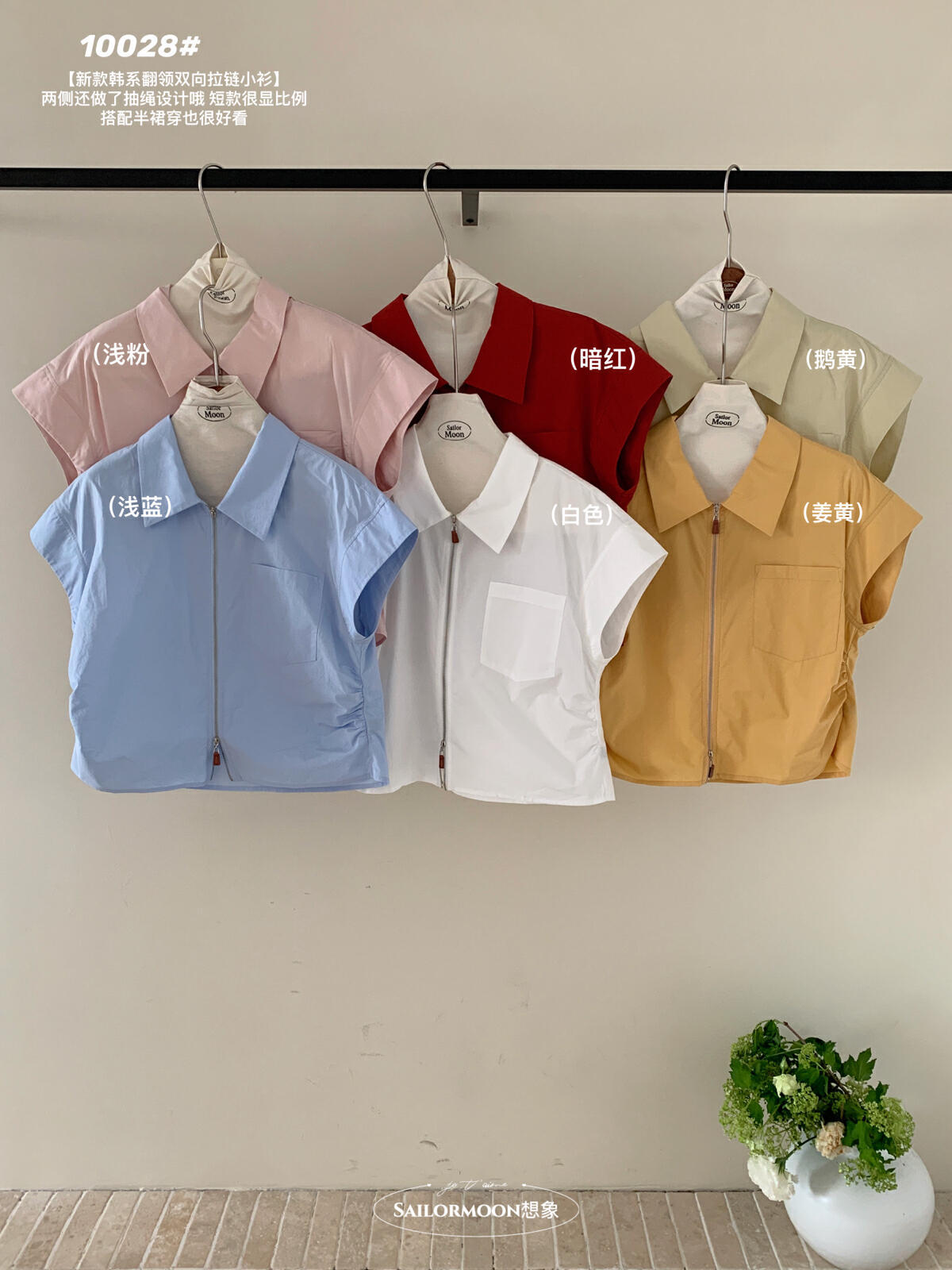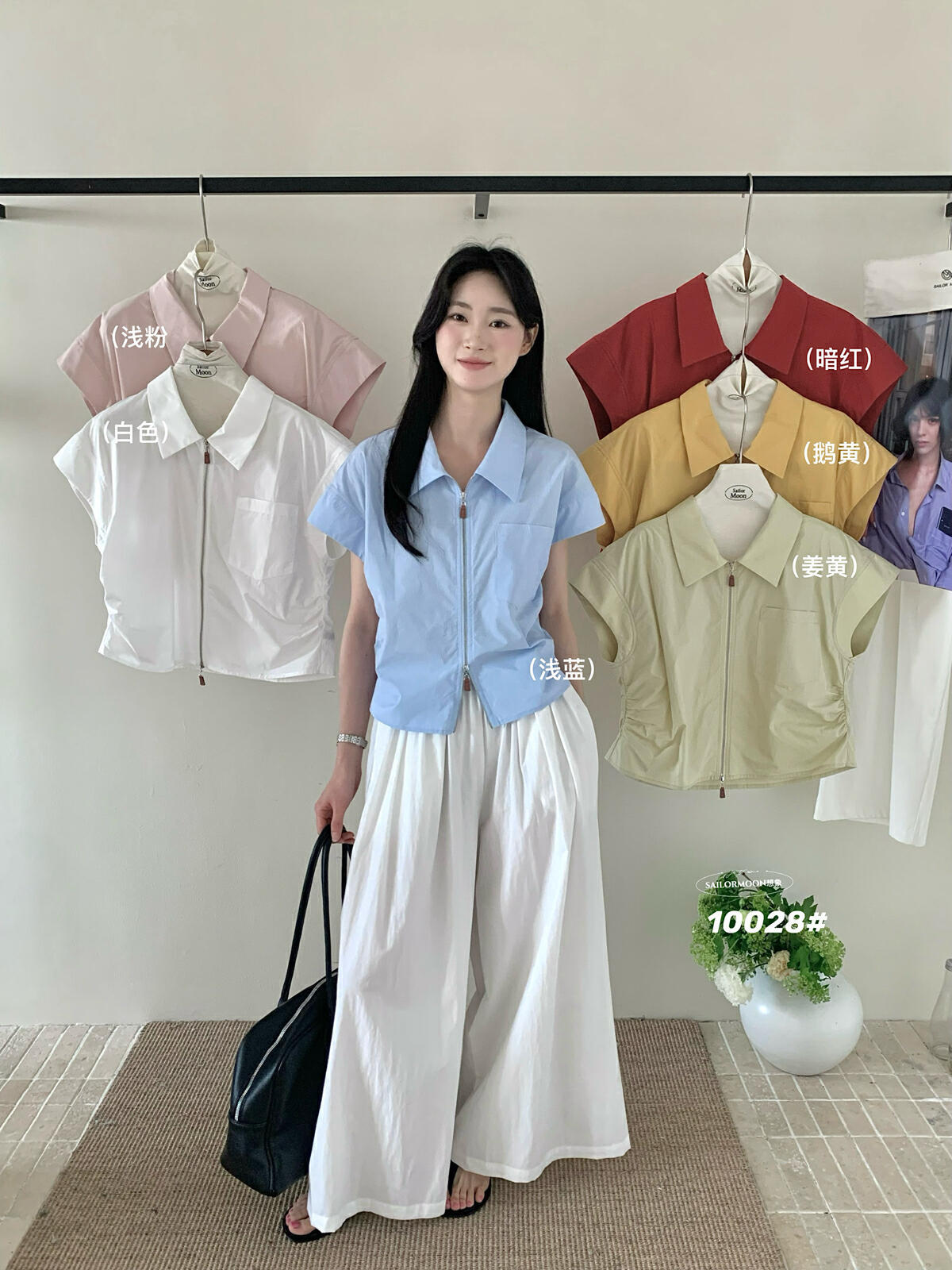 Gran Venta No Devolución Imaginativo Verano 2025 Solapa Simple Camisa Corta Multicolor Color Puro 10028