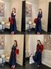 TikTok Más Vendido Primavera y Verano Francés Cuello Redondo Cintura Ajustada A Vestido Denim Sin Mangas Cárdigan de Punto Conjunto de Dos Piezas