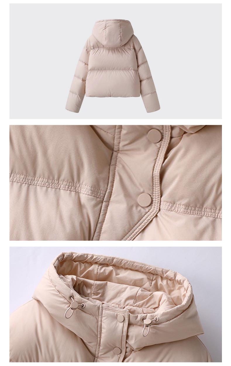 Abrigo de Invierno Plumón de Pato Blanco Cálido para Mujer Estilo Simple y Gentil Chaqueta Acolchada con Capucha Holgada Color Sólido Corta