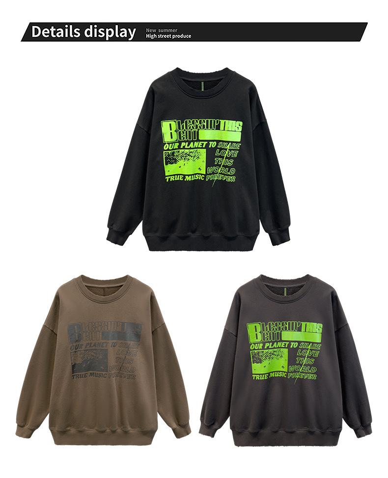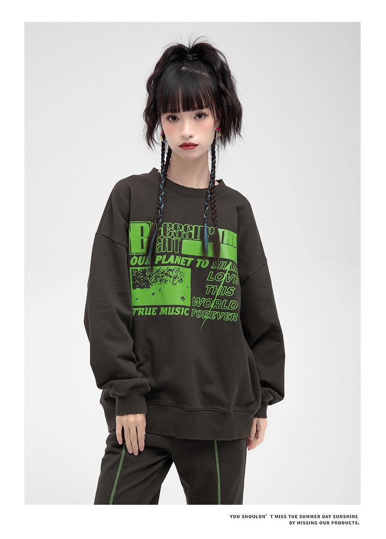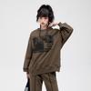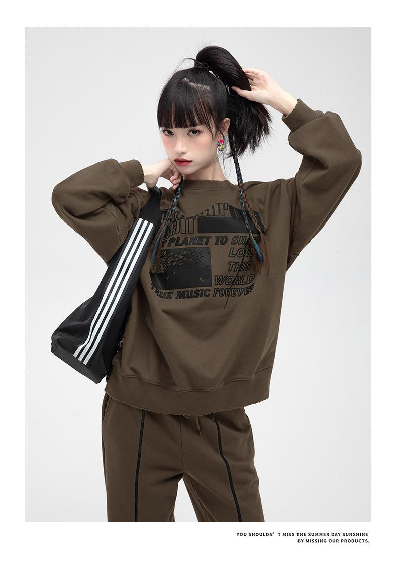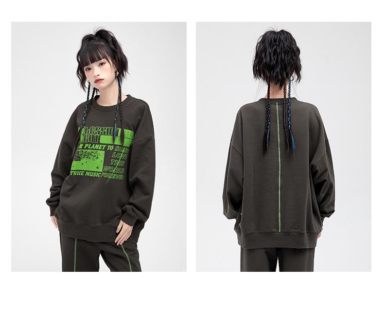 2025 Otoño e Invierno Nuevo Elegante Cuello Redondo Manga Larga Estilo Perezoso Sudadera con Puntada Superior para Mujer Diseño Americano Top Estampado