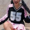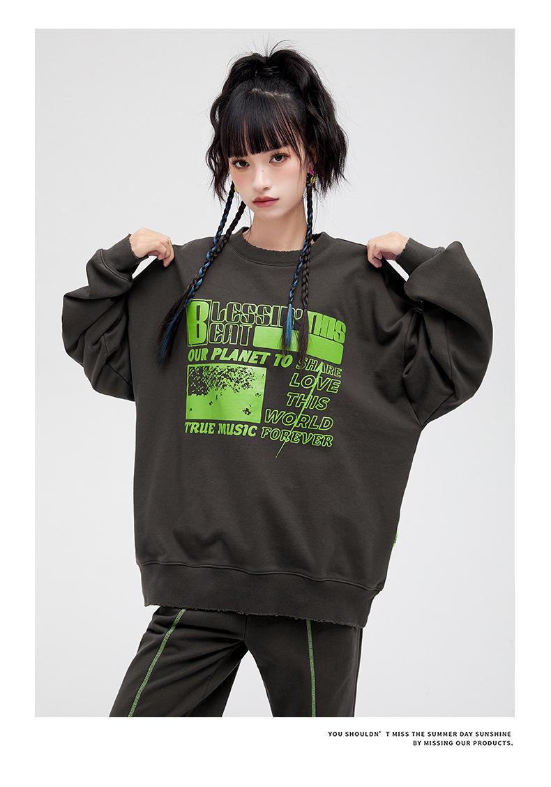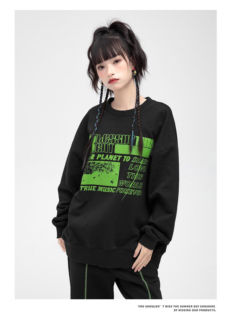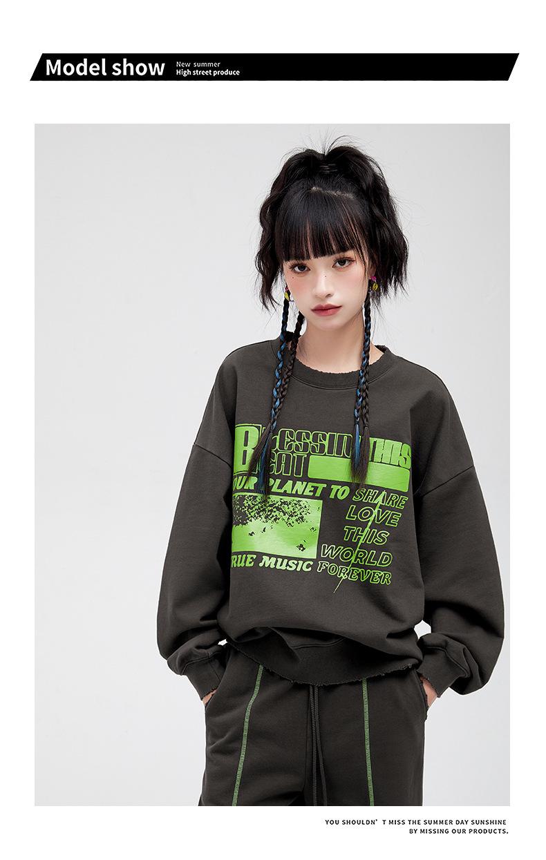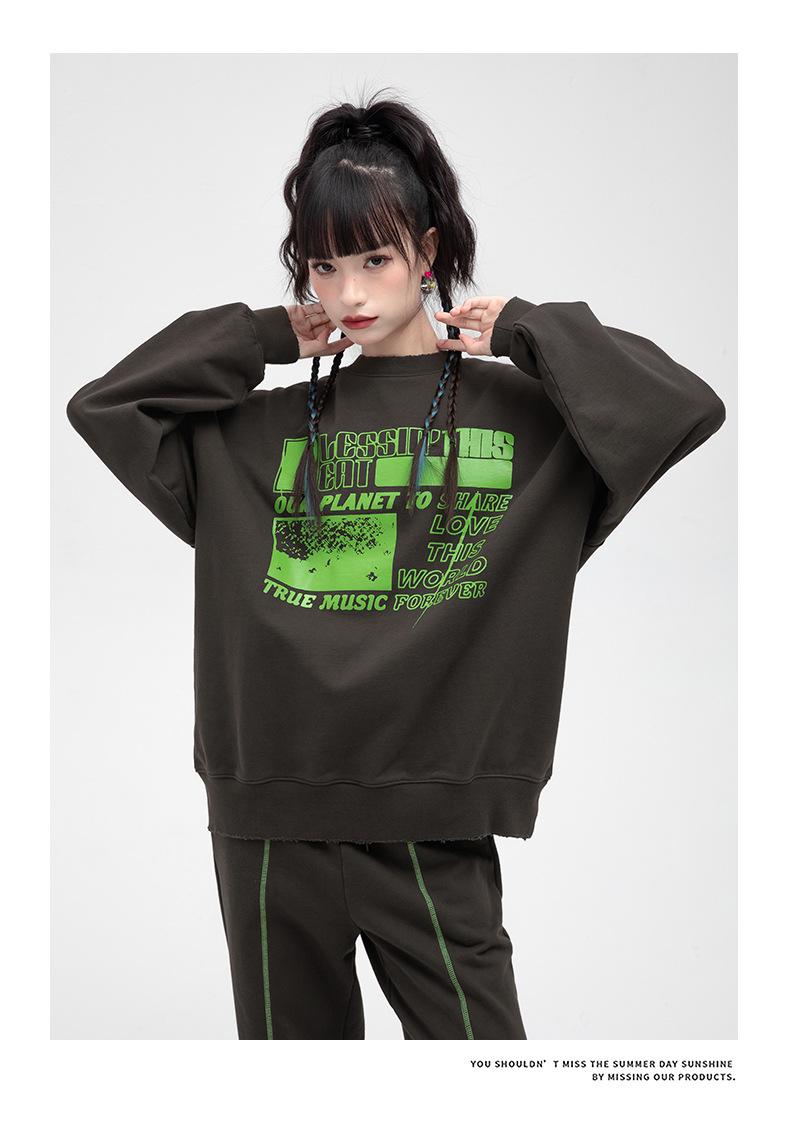 2025 Otoño e Invierno Nuevo Elegante Cuello Redondo Manga Larga Estilo Perezoso Sudadera con Puntada Superior para Mujer Diseño Americano Top Estampado