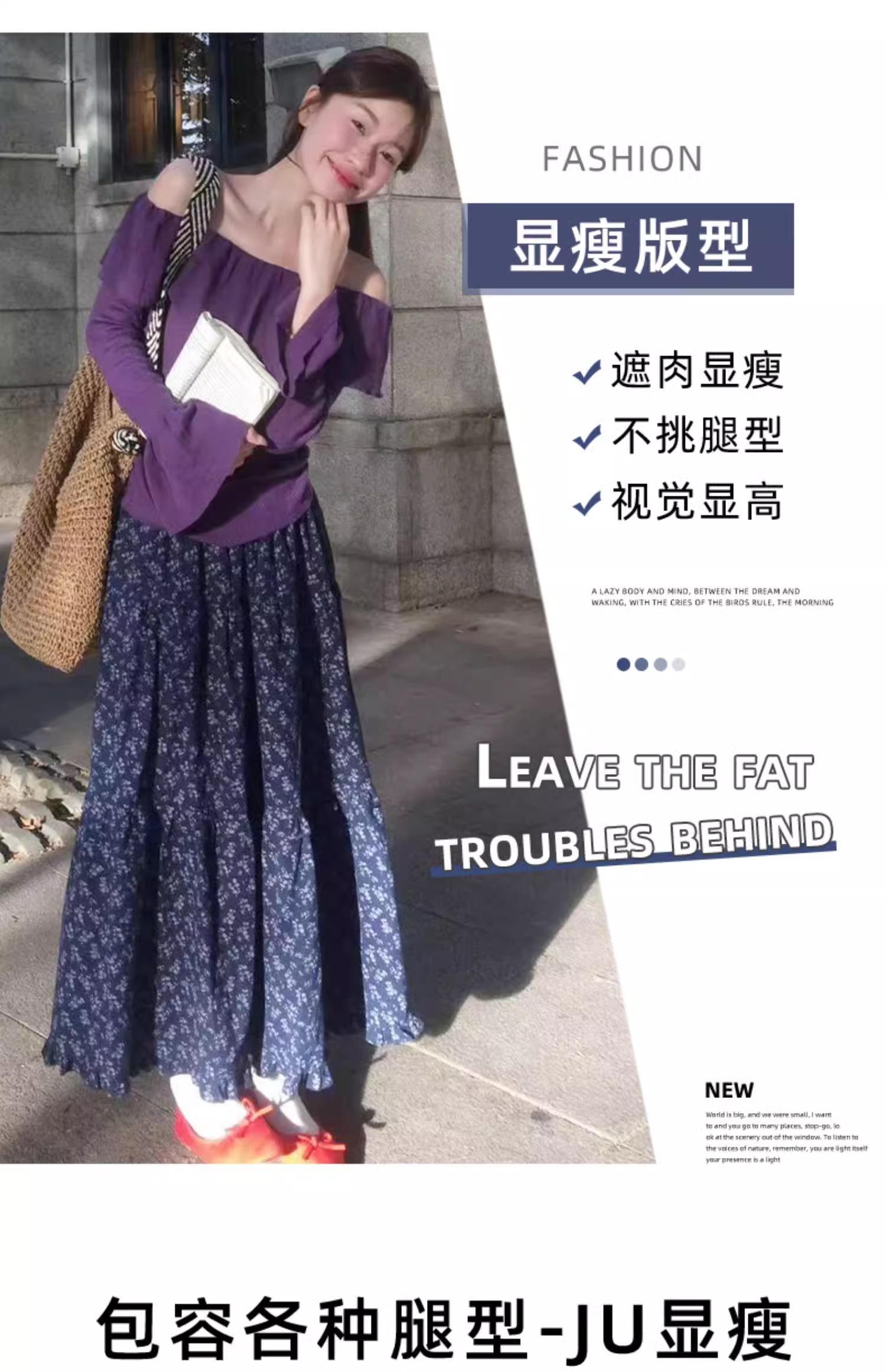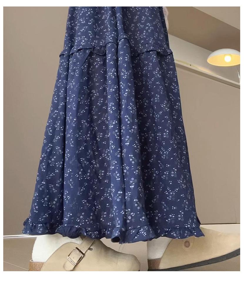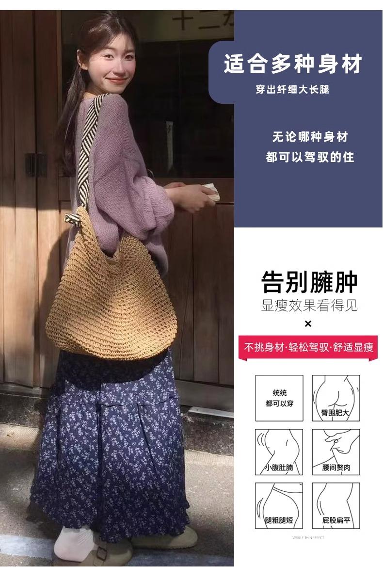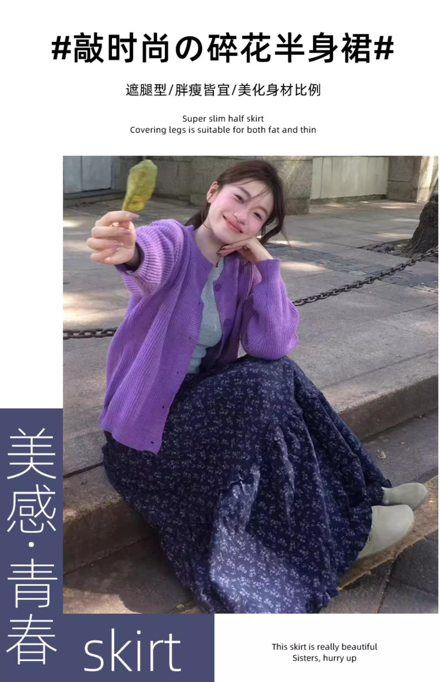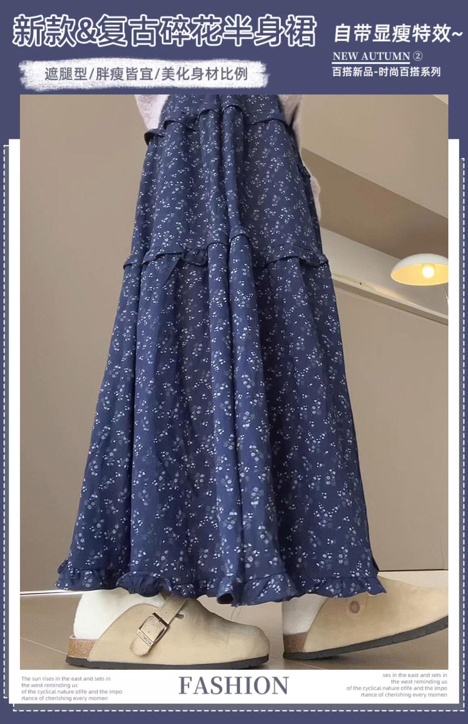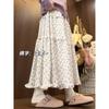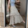 Falda Floral Coreana para Mujer Largo Medio Verano 2025 Nueva Cintura Alta Slim Línea A Falda Larga Huevo Esponjoso