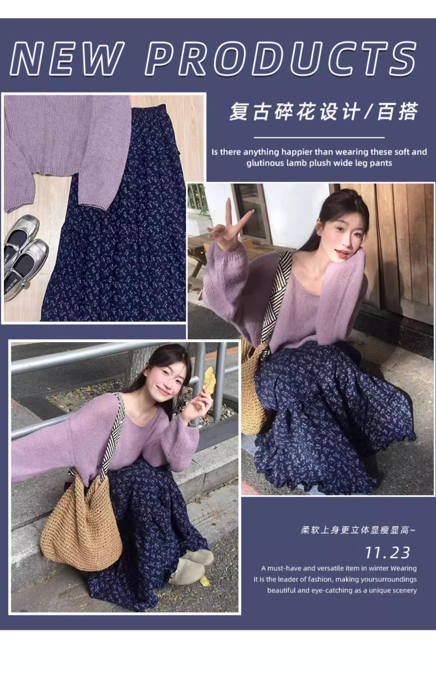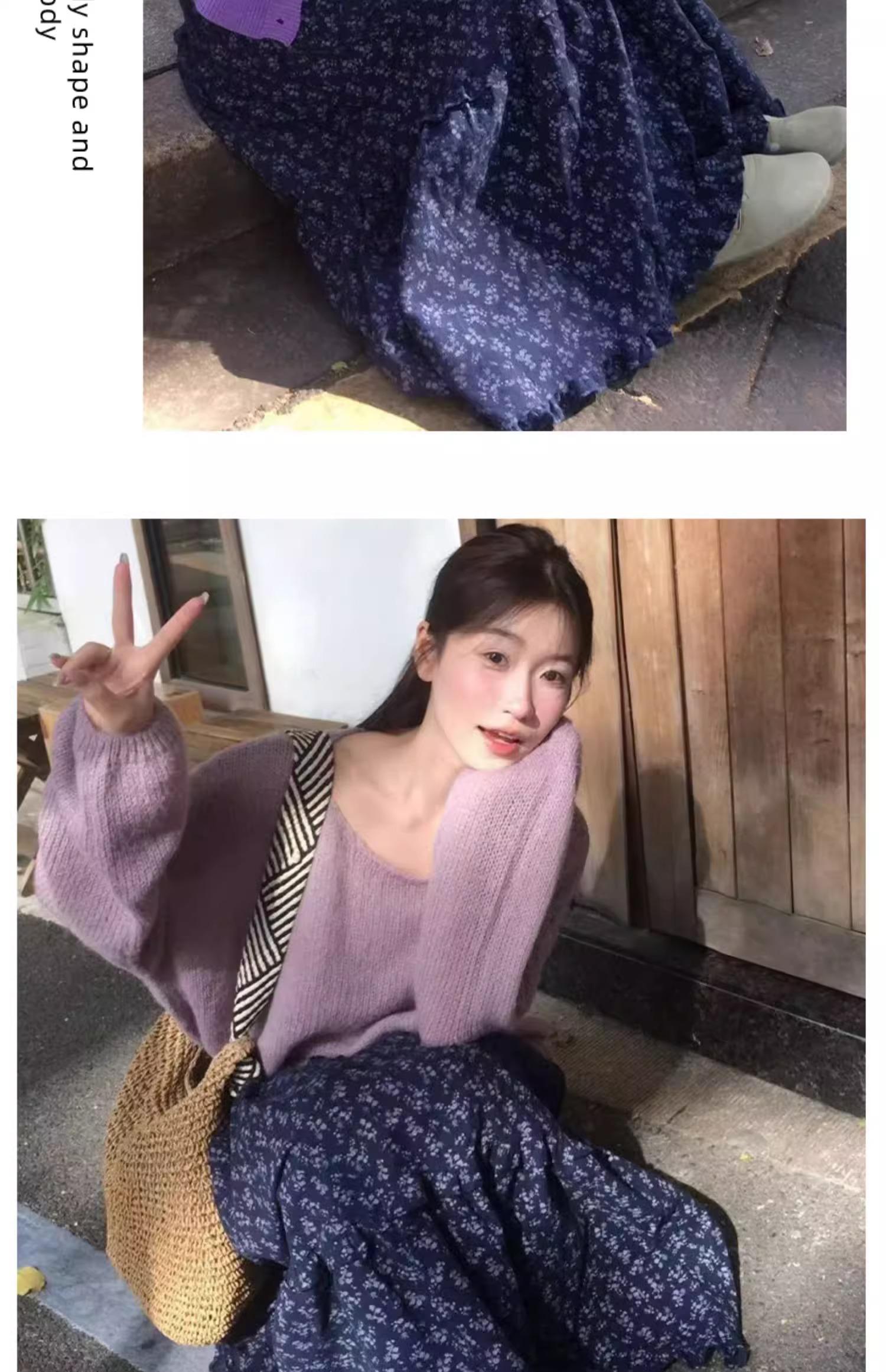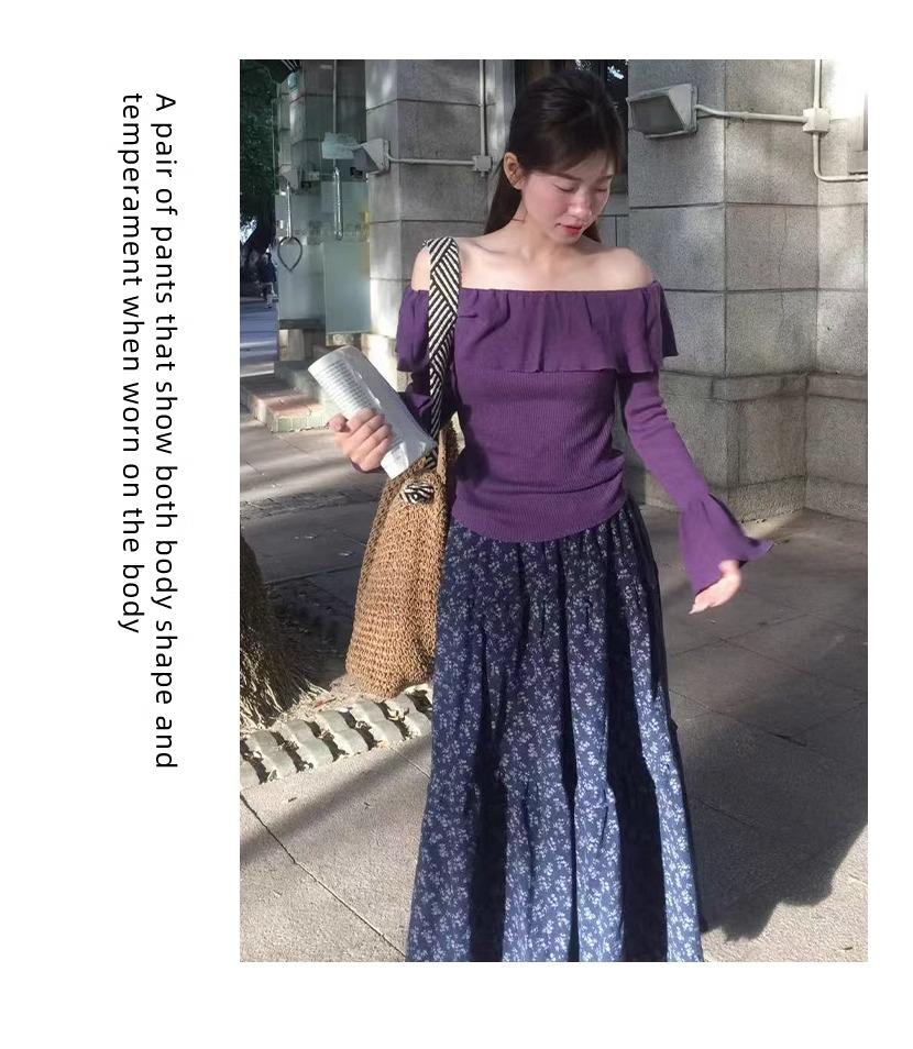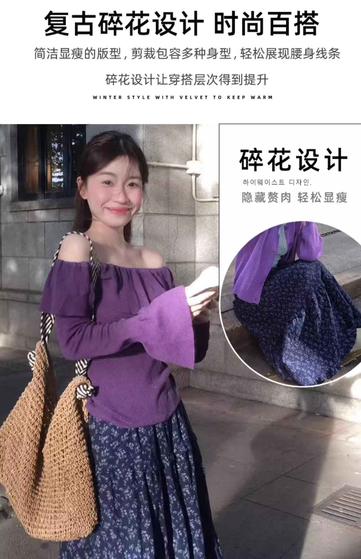 Falda Floral Coreana para Mujer Largo Medio Verano 2025 Nueva Cintura Alta Slim Línea A Falda Larga Huevo Esponjoso