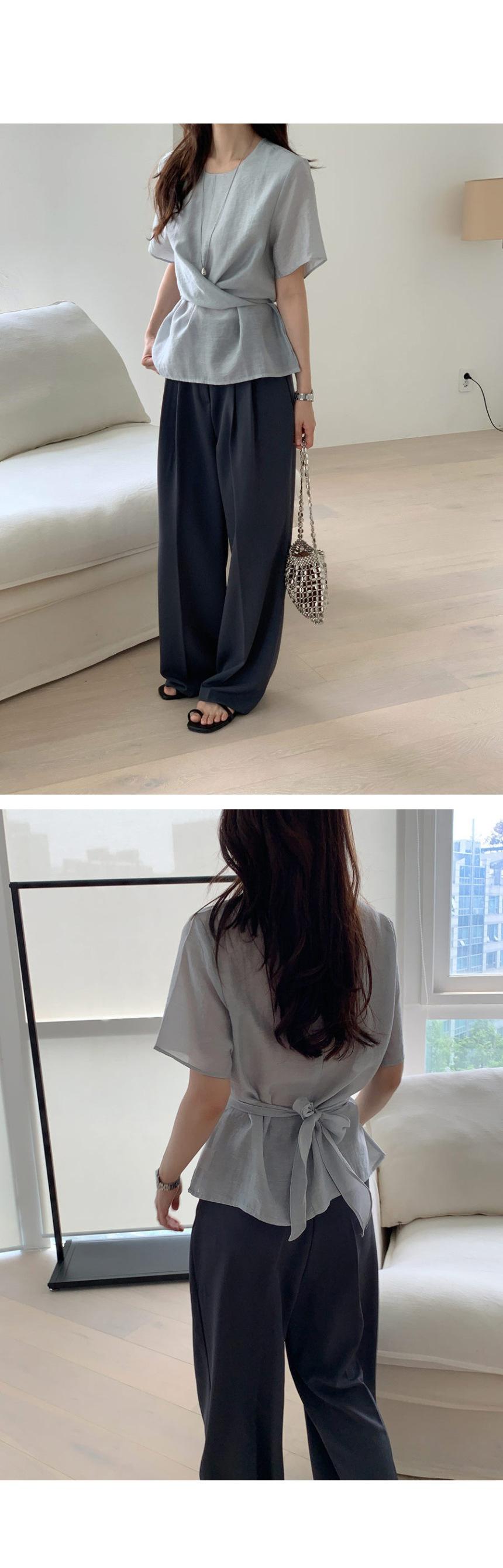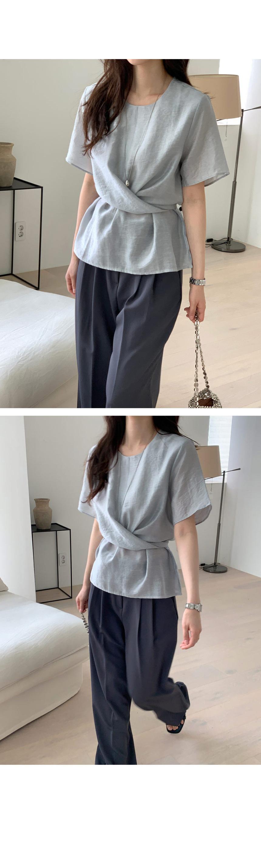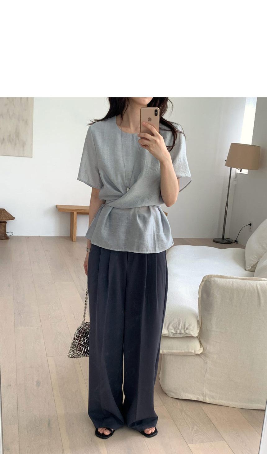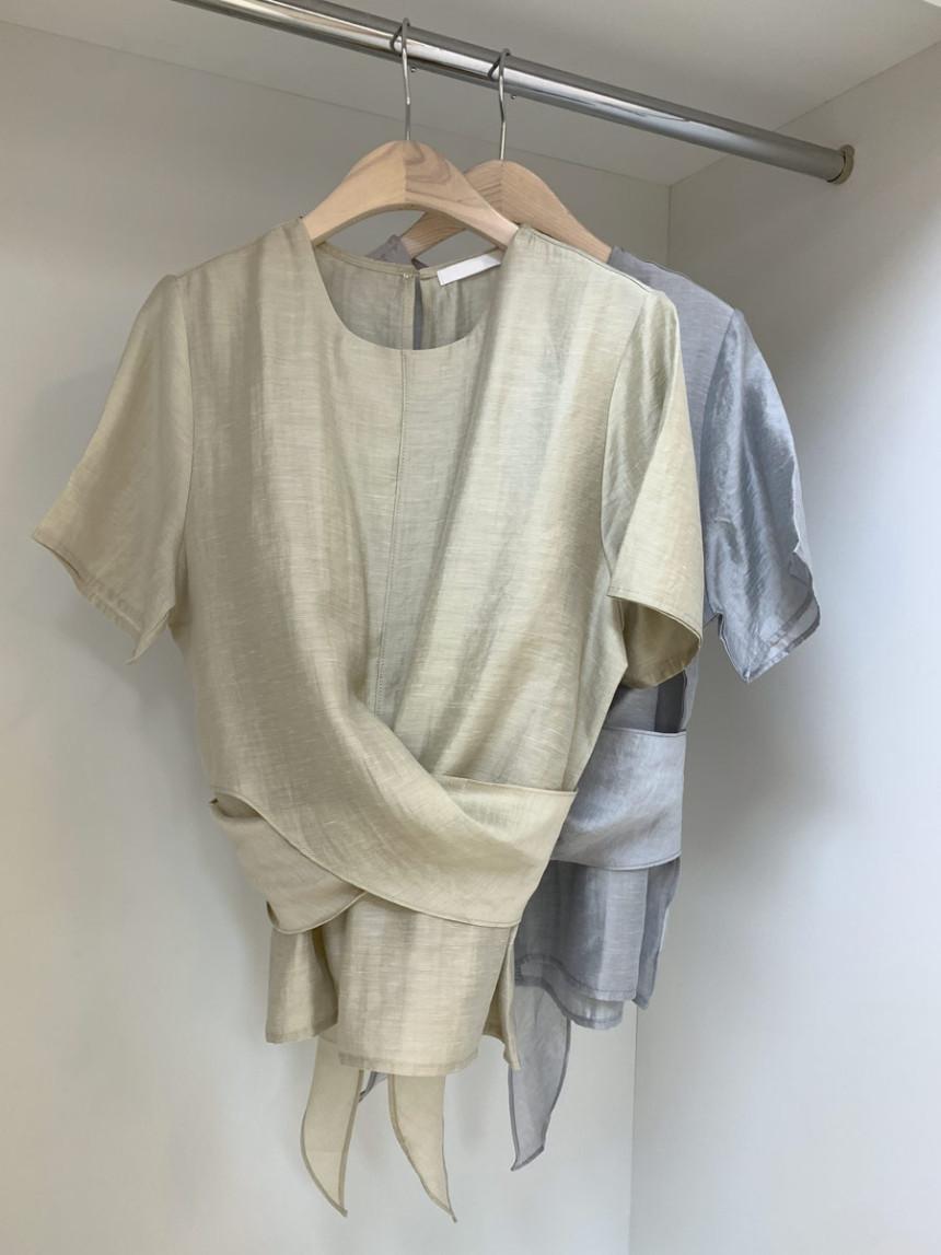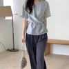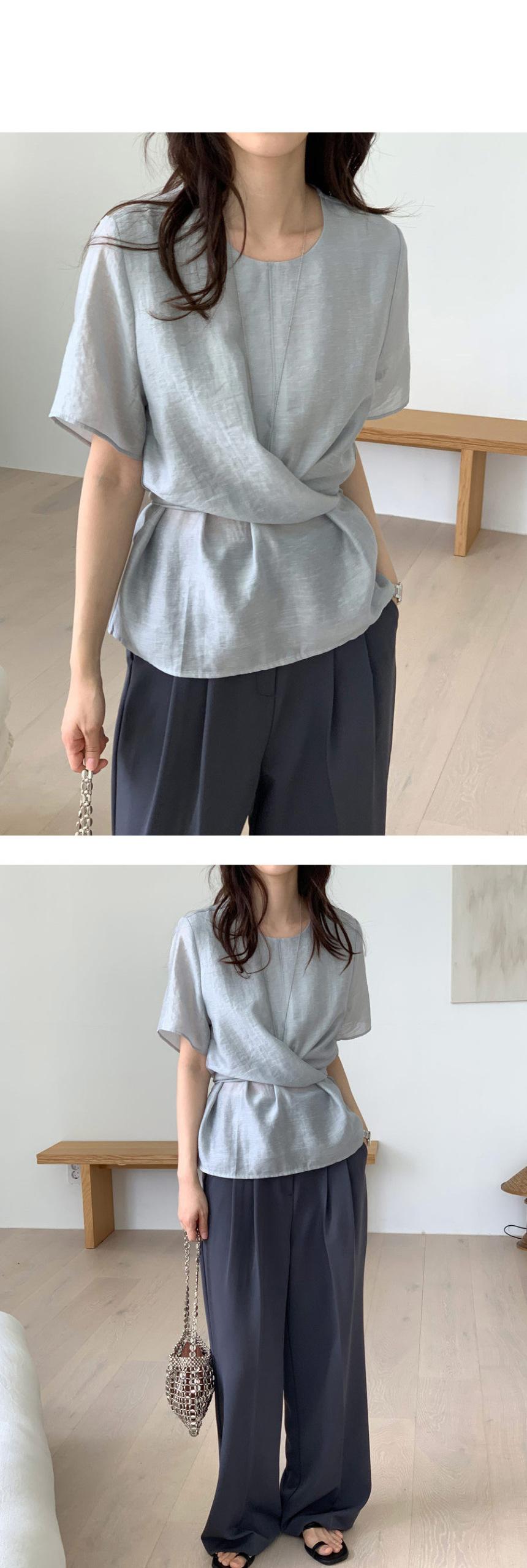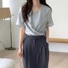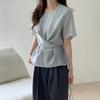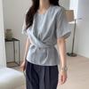 Camisa de Manga Corta con Hombro Derecho Descubierto y Cintura Entallada de Color Claro, Top Estilo Pequeño Burgués