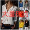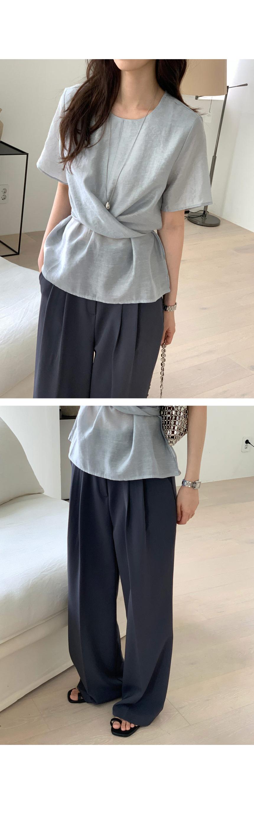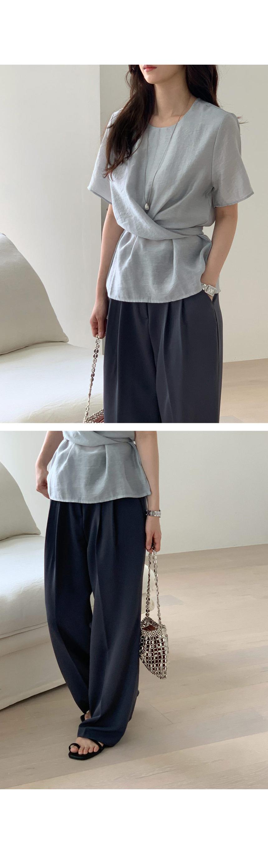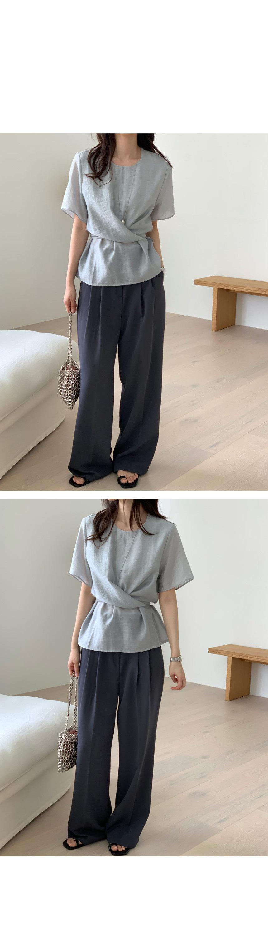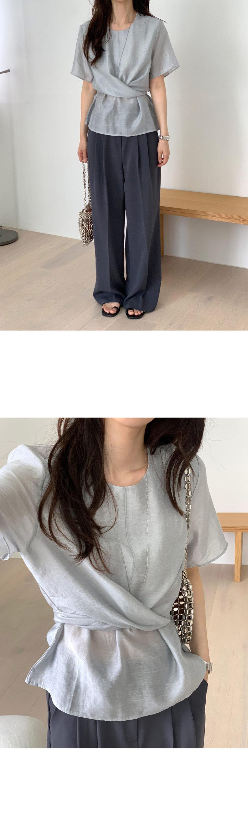 Camisa de Manga Corta con Hombro Derecho Descubierto y Cintura Entallada de Color Claro, Top Estilo Pequeño Burgués