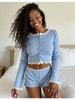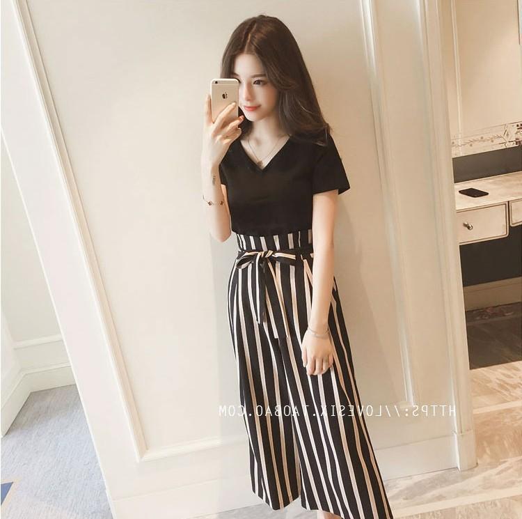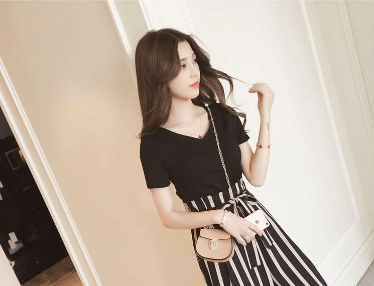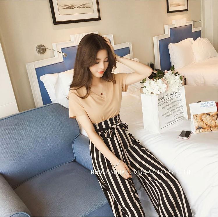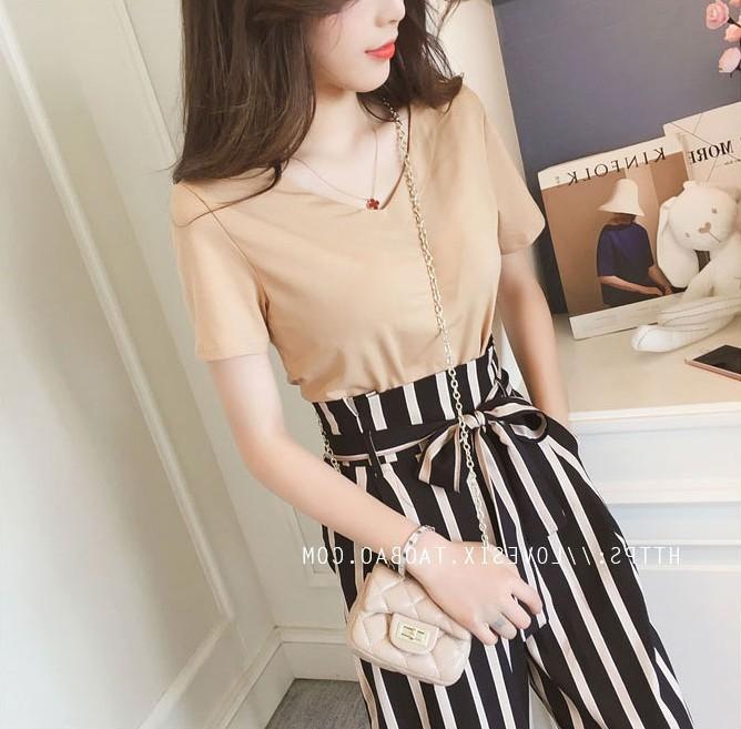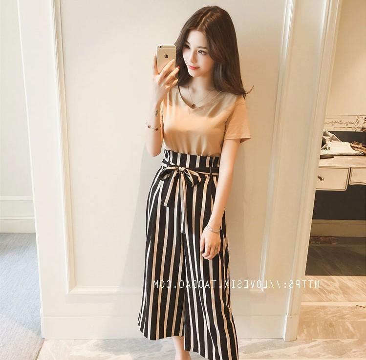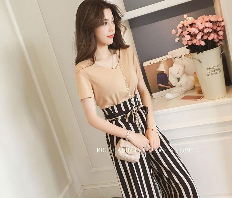 2025 Nuevo Verano Estilo Coreano Look Adelgazante Cuello en V Moda de Mujer Combinable Alto Dos Piezas Traje de Moda Trendy para Estudiante