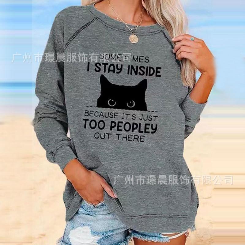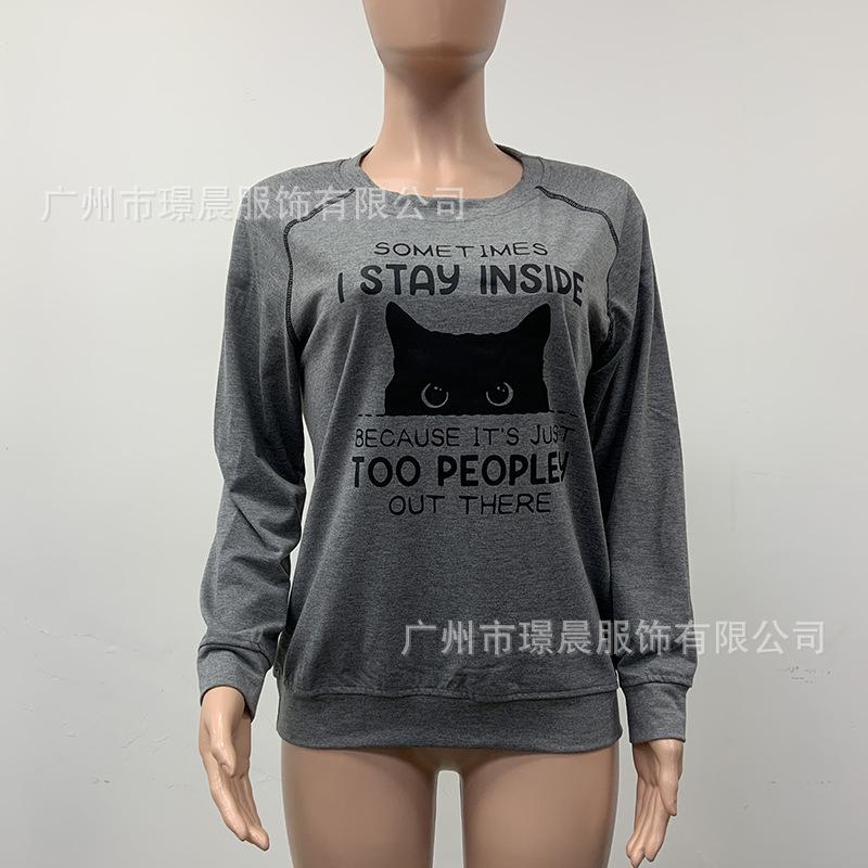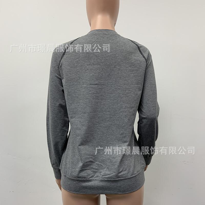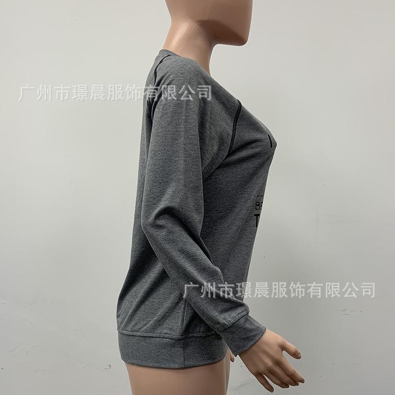 Amazon Transfronterizo 2024 Otoño Moda Nueva Europea y Americana para Mujer Casual Suelta Estampada Cuello Redondo Top Camiseta Mujer