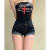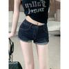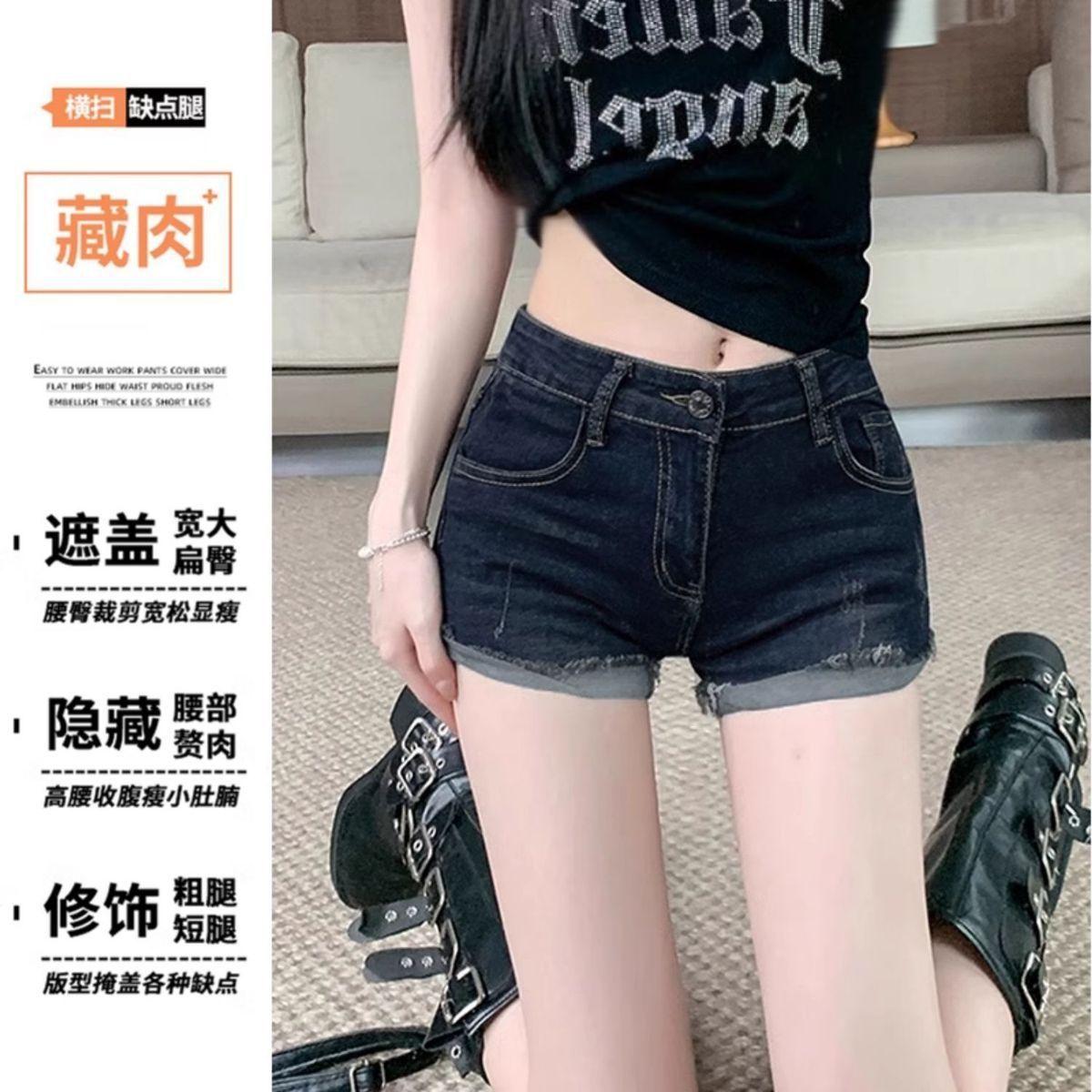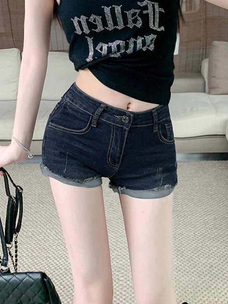 Super Shorts de mezclilla retro de tiro bajo que cubren la cadera para mujer Verano Americano Ajustado Elástico Rizado Adelgazantes Hot Pants Ajustados para Chica Caliente