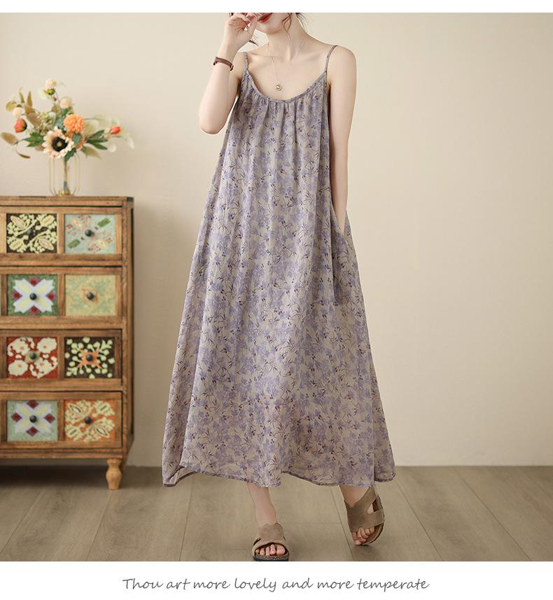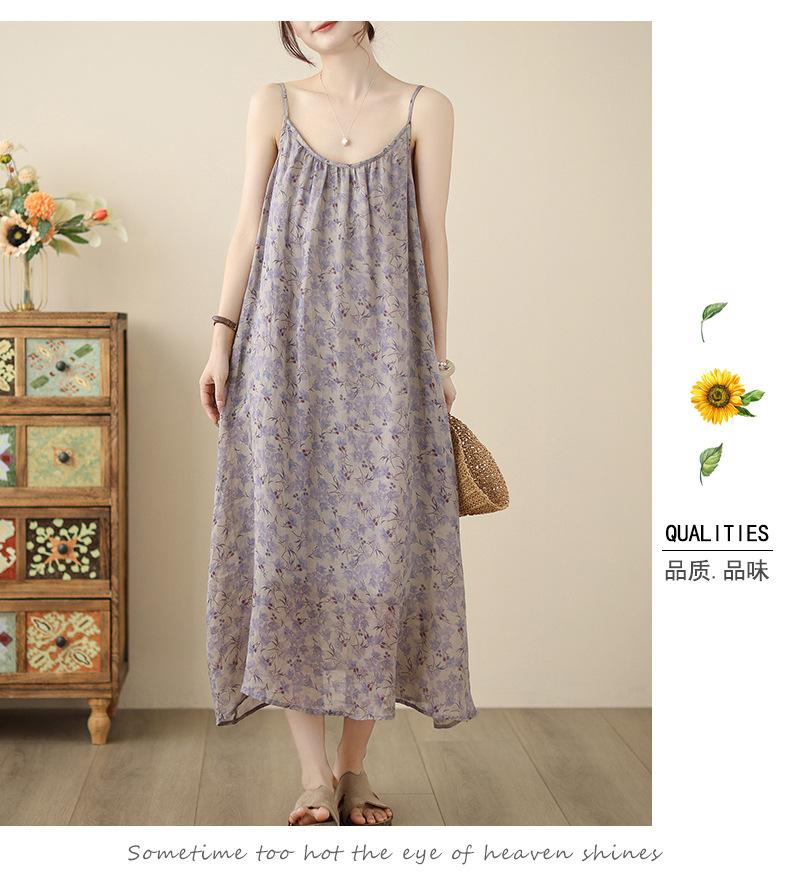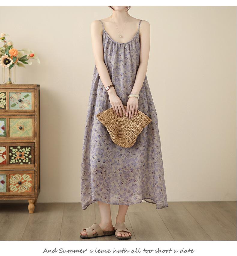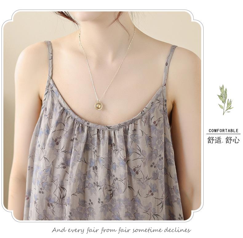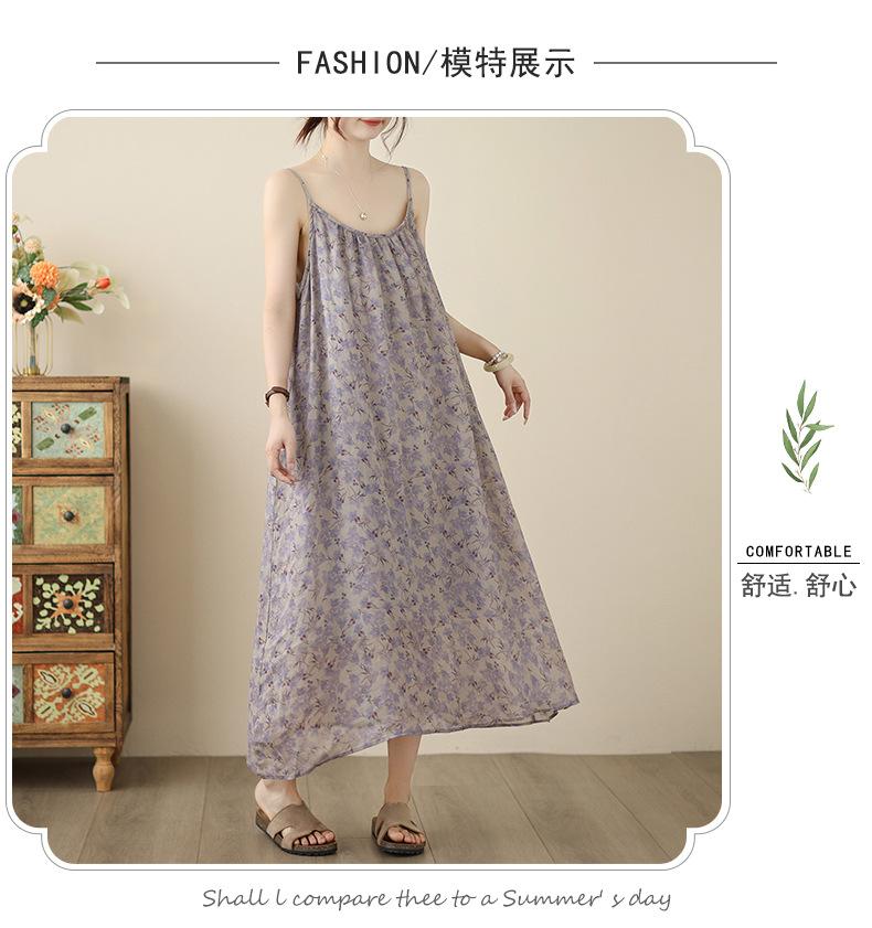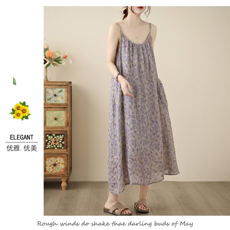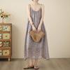 Nuevo Vestido Estampado Holgado con Tirantes Pastorales para Mujer 2025 Verano Nueva Falda
