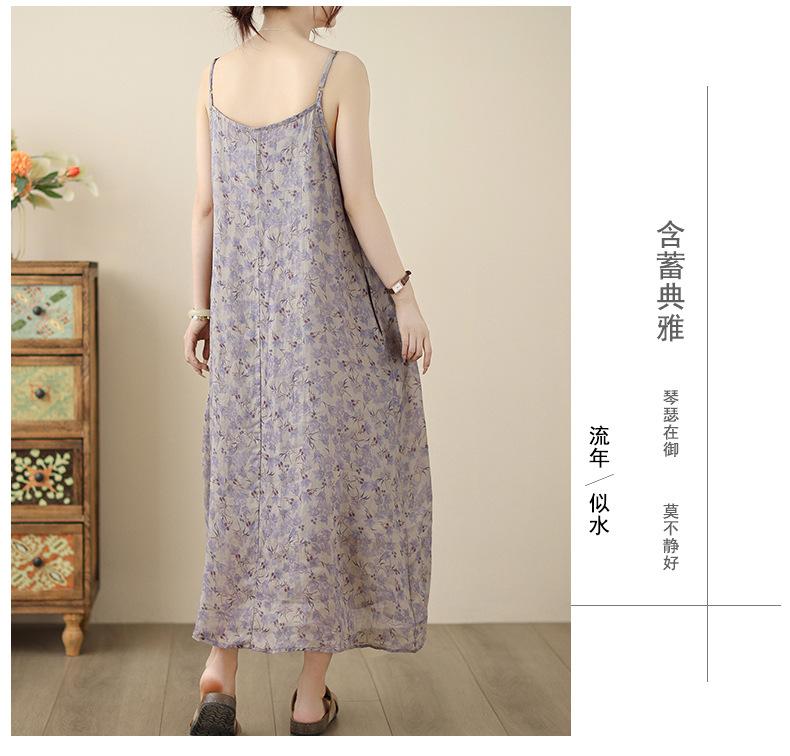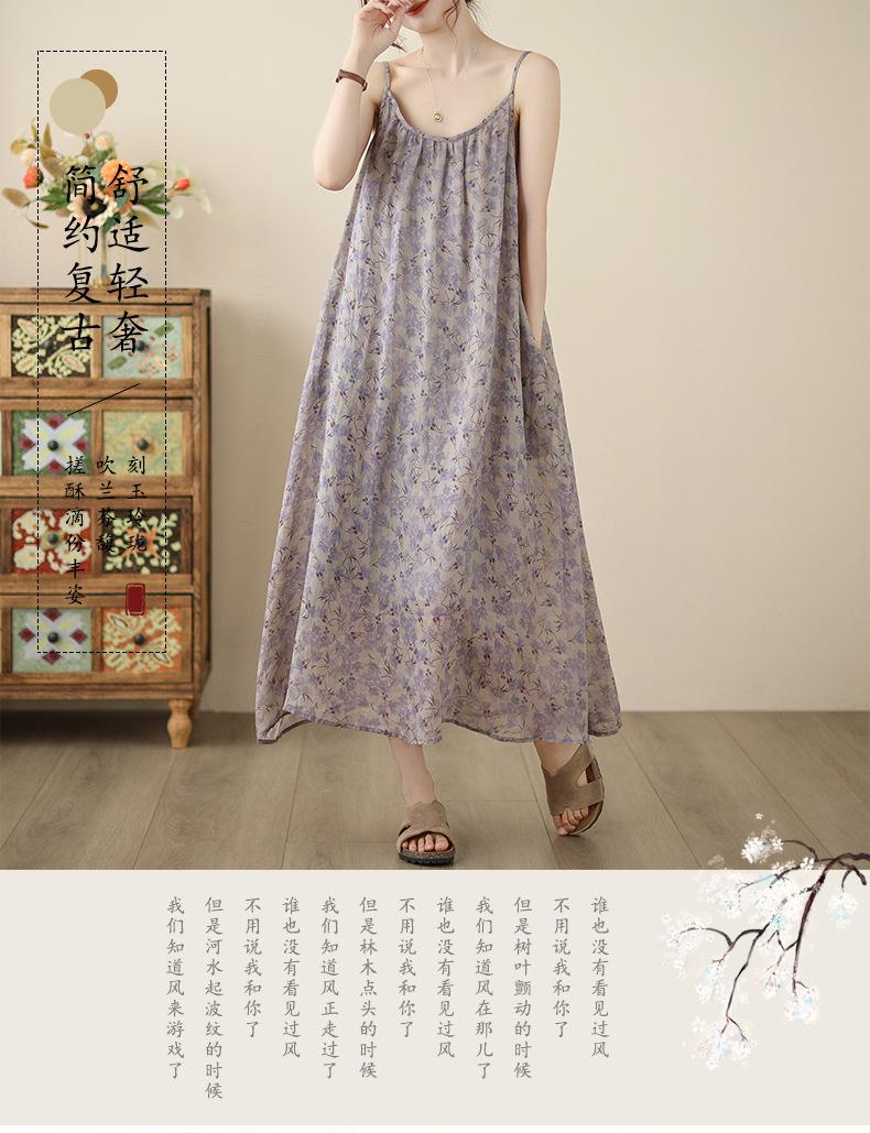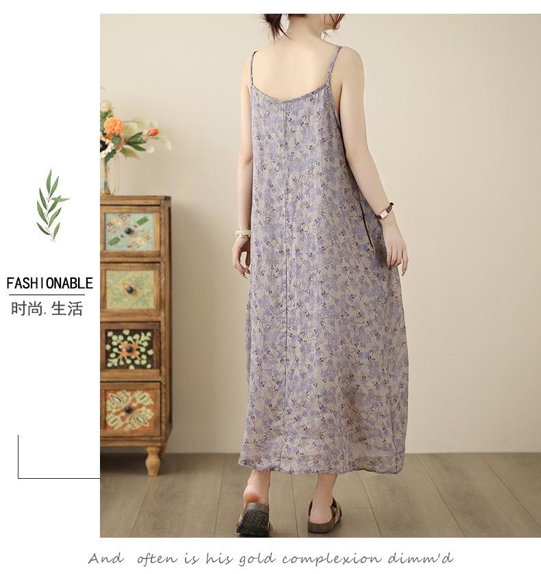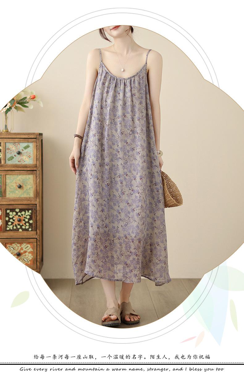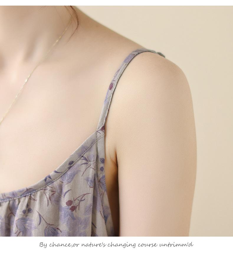 Nuevo Vestido Estampado Holgado con Tirantes Pastorales para Mujer 2025 Verano Nueva Falda