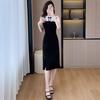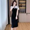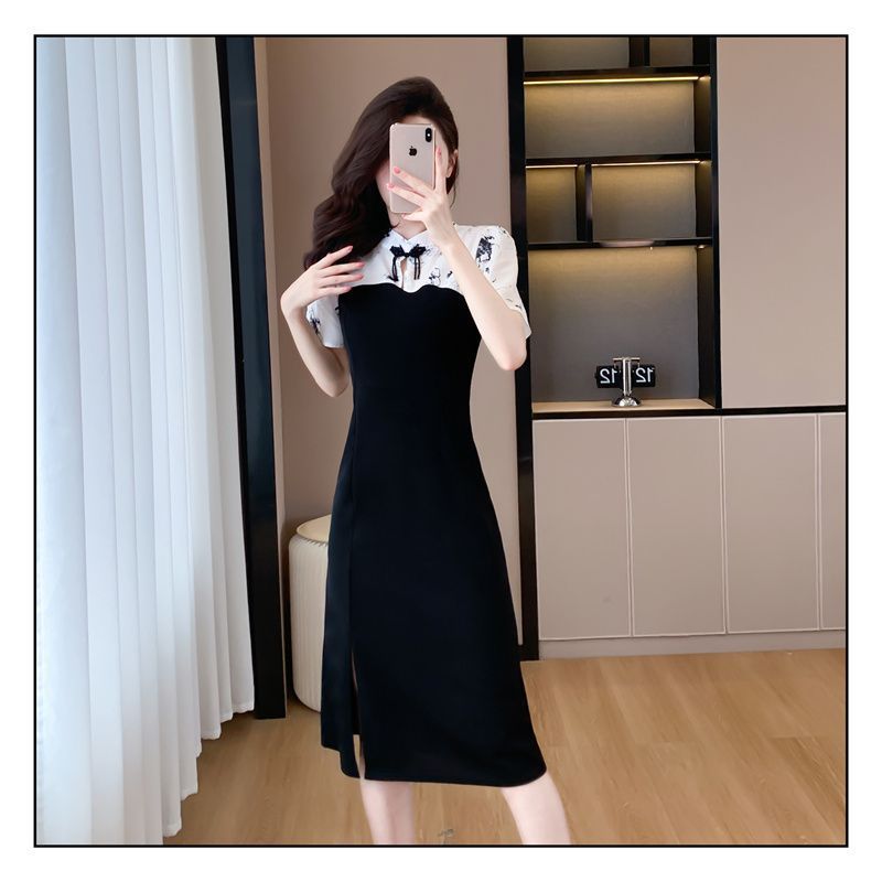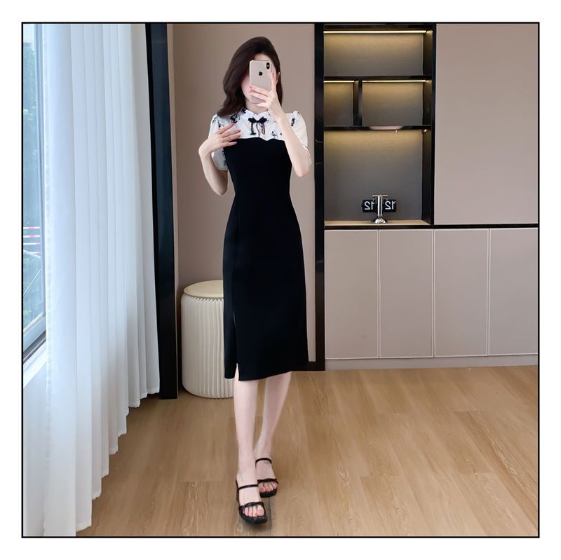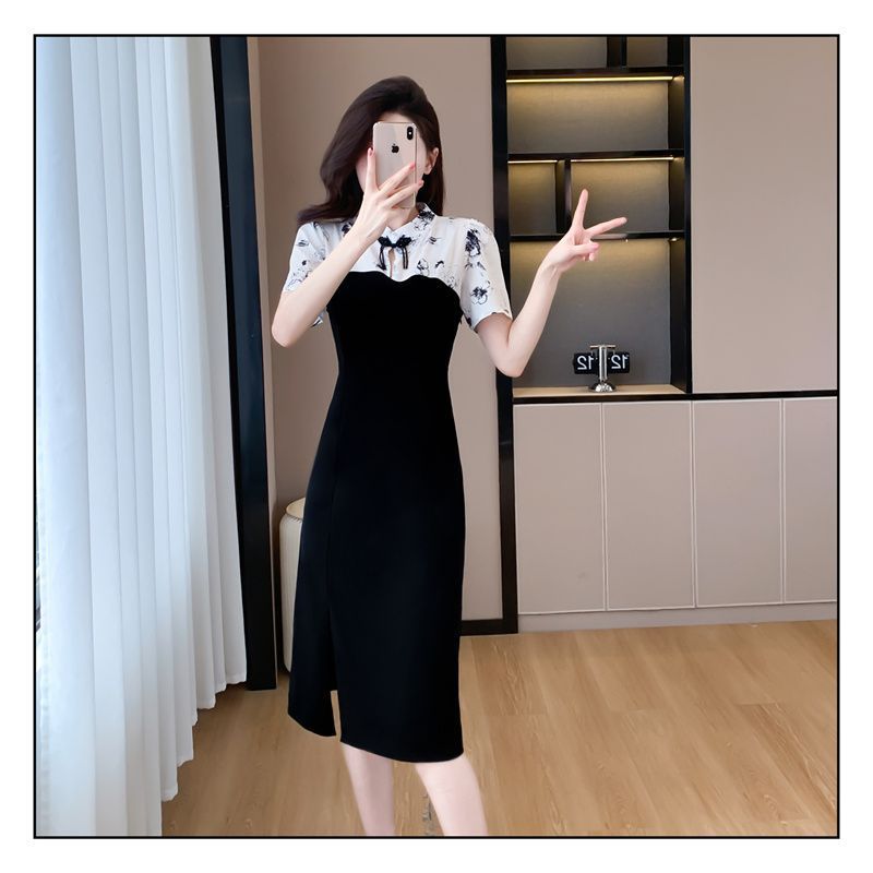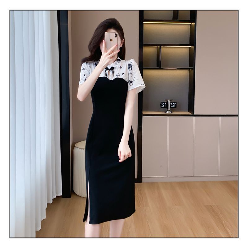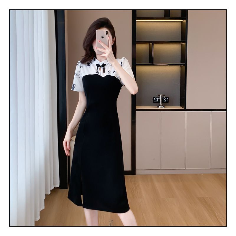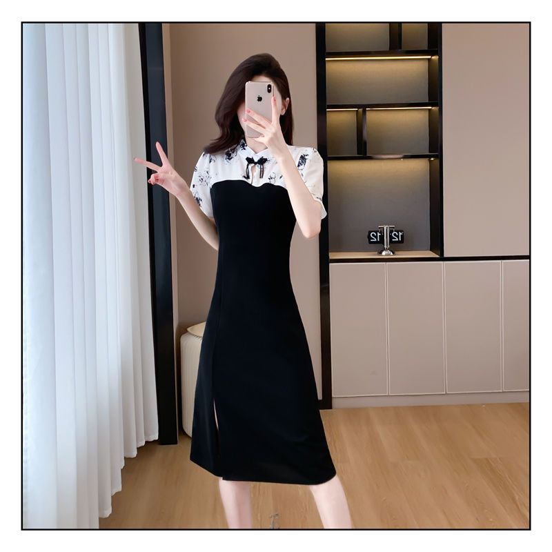 Nuevo Estilo Chino Estilo Nacional Vestido Cheongsam Hebilla Pequeña 2025 Verano Nuevo Costuras Elegante Cubre Carne Falda de Manga Corta