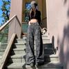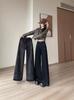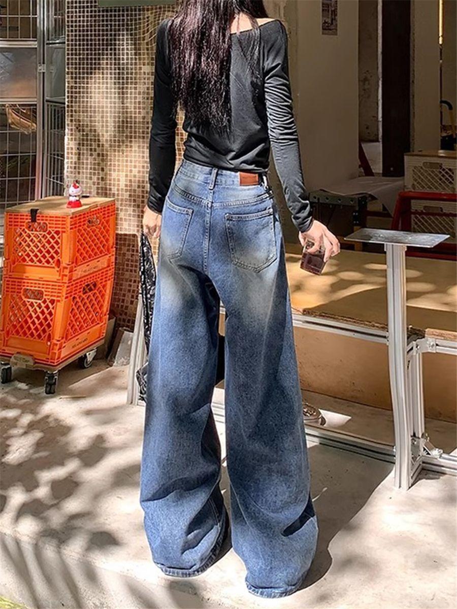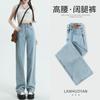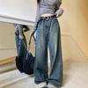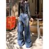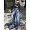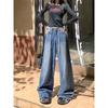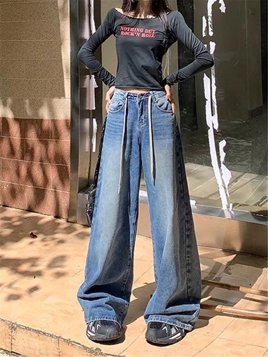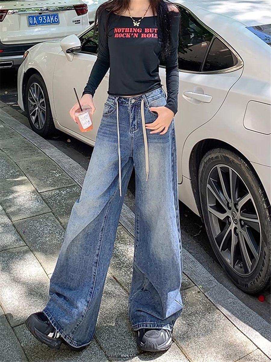 Jeans Versátiles con Cordón de Cintura Alta para Mujer 2025 Ropa Exterior Elegante Pantalones de Pierna Ancha Retro Desgastados Pantalones Largos hasta el Piso Adelgazantes