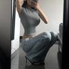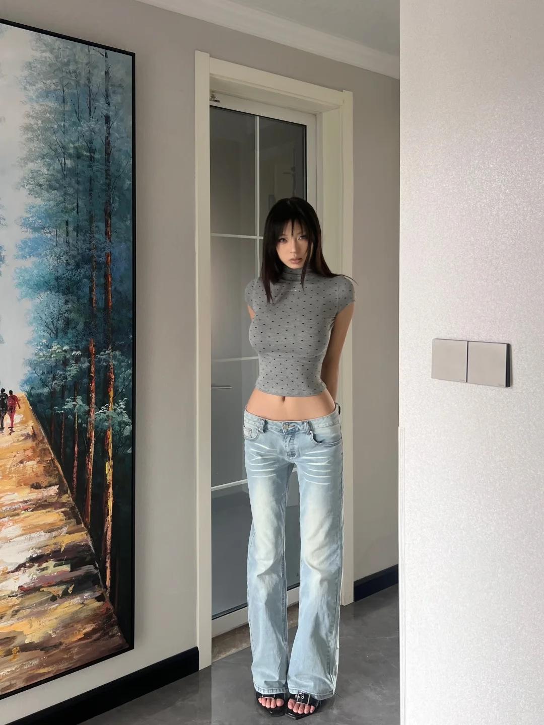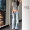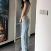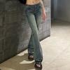 Jeans Acampanados Lavados Desgastados de Tiro Bajo a la Moda para Mujer Americano Retro Ajustado Pantalones Largos hasta el Piso