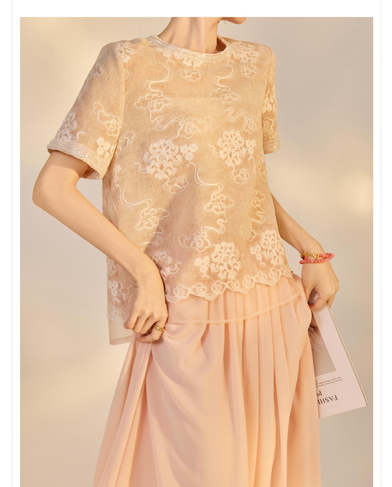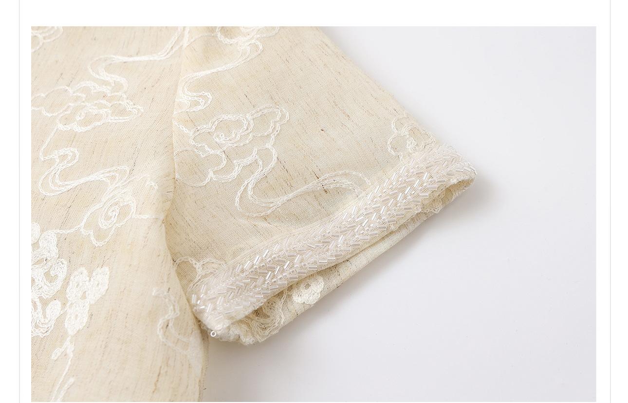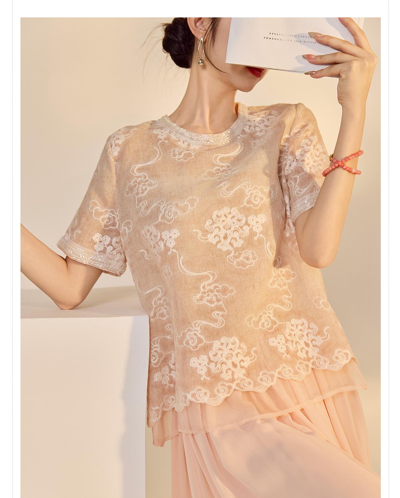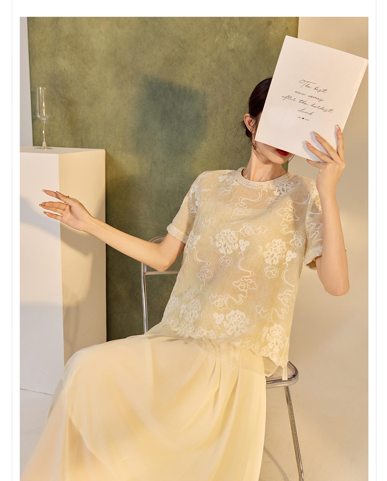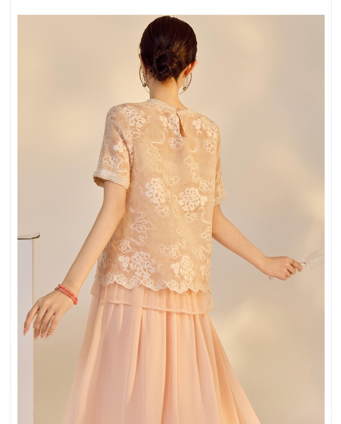 Nuevos Tops Elegantes con Cuentas Pesadas de Estilo Chino para Mujer Verano Camisas de Moda de Estilo Nacional Trajes de Falda de Color Puro N5065