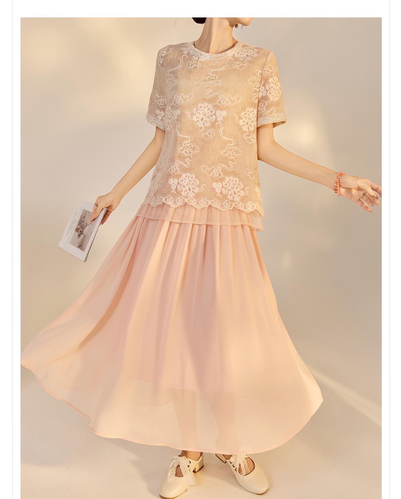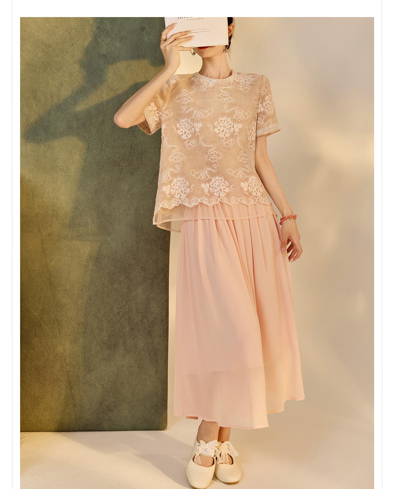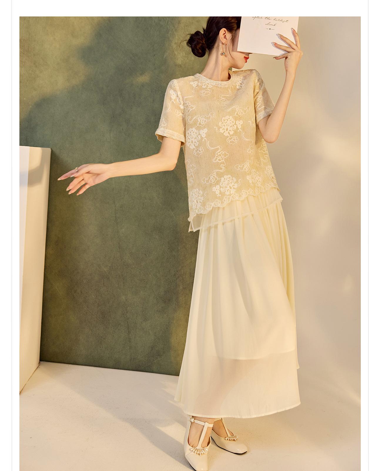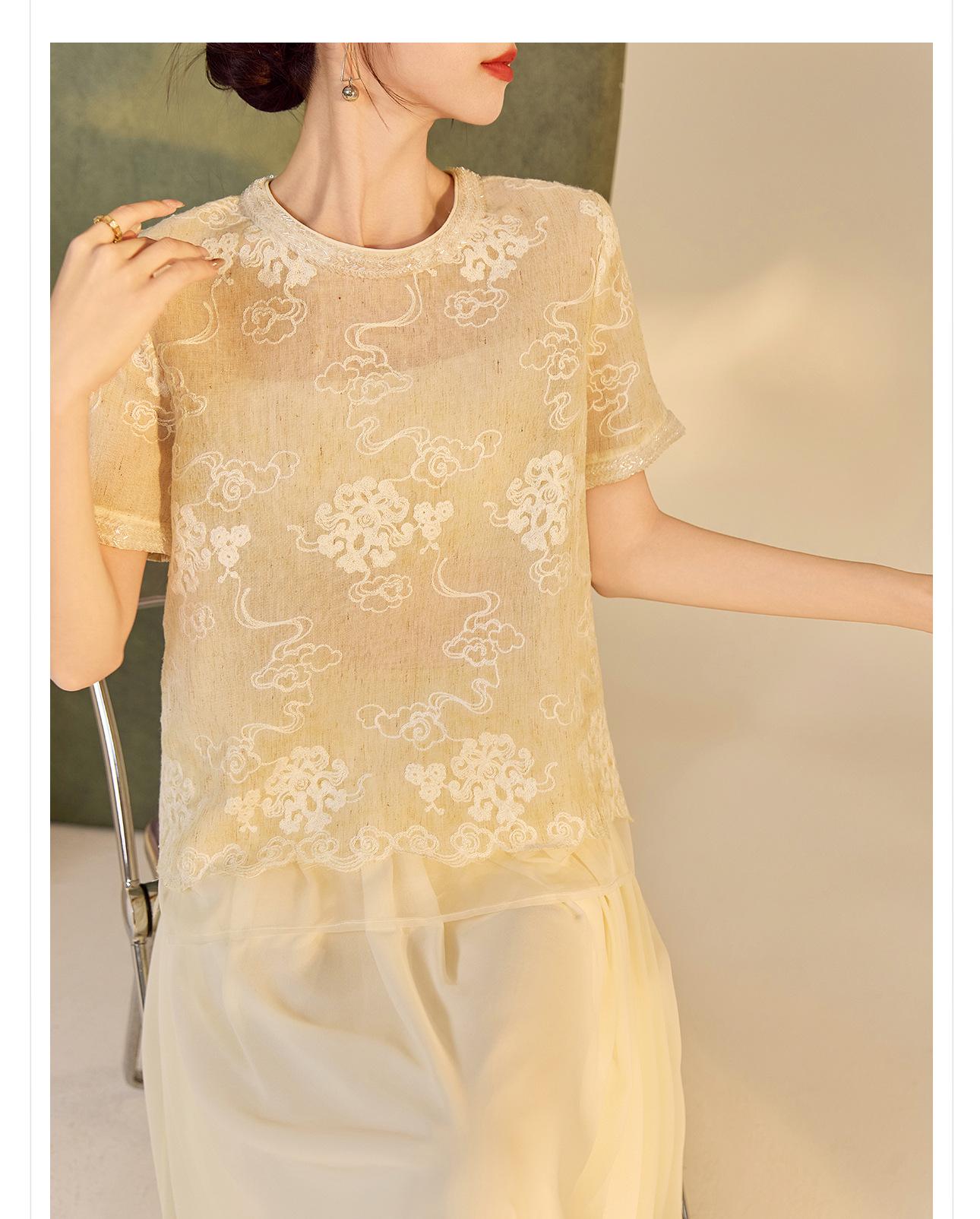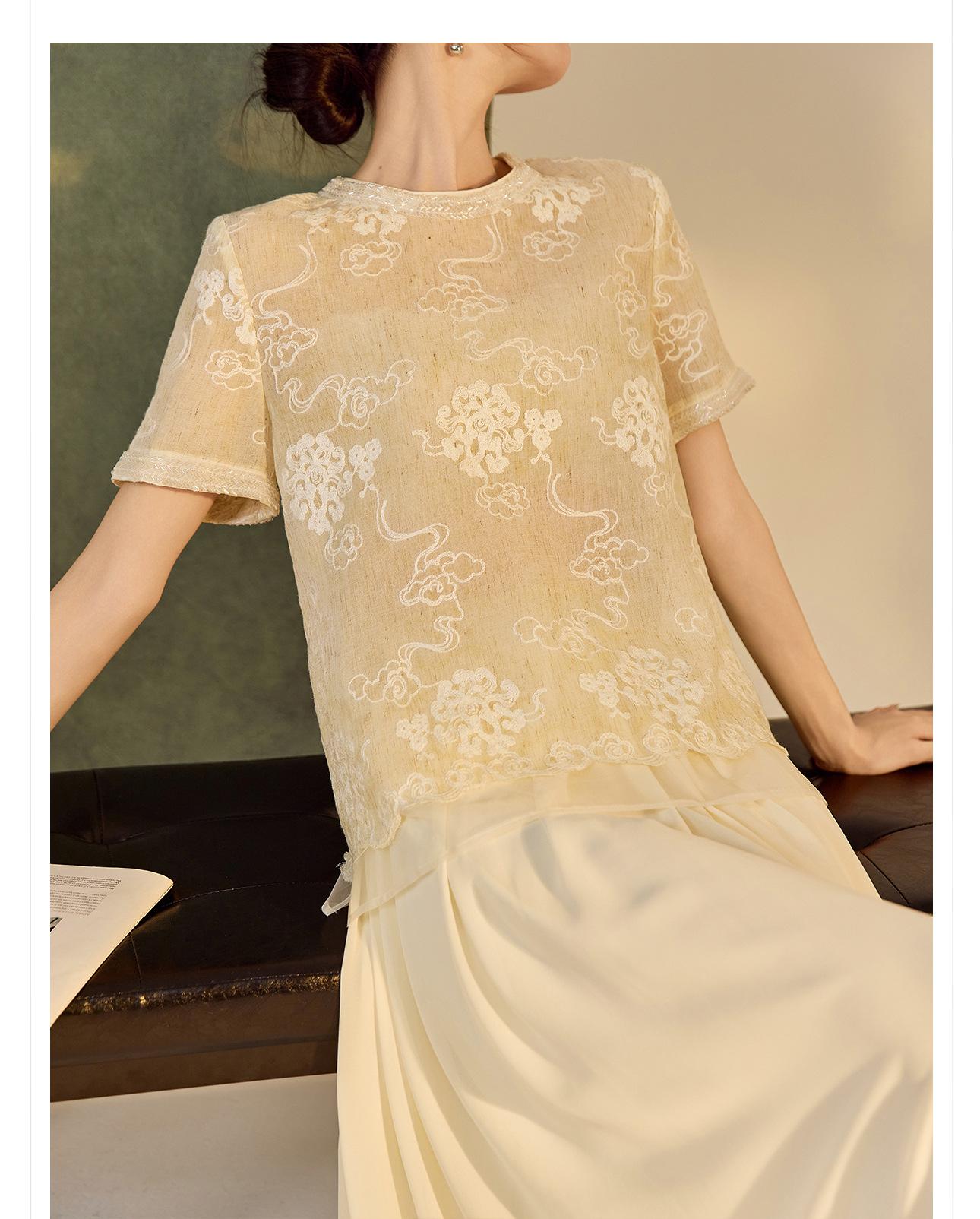 Nuevos Tops Elegantes con Cuentas Pesadas de Estilo Chino para Mujer Verano Camisas de Moda de Estilo Nacional Trajes de Falda de Color Puro N5065