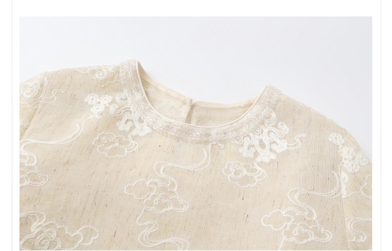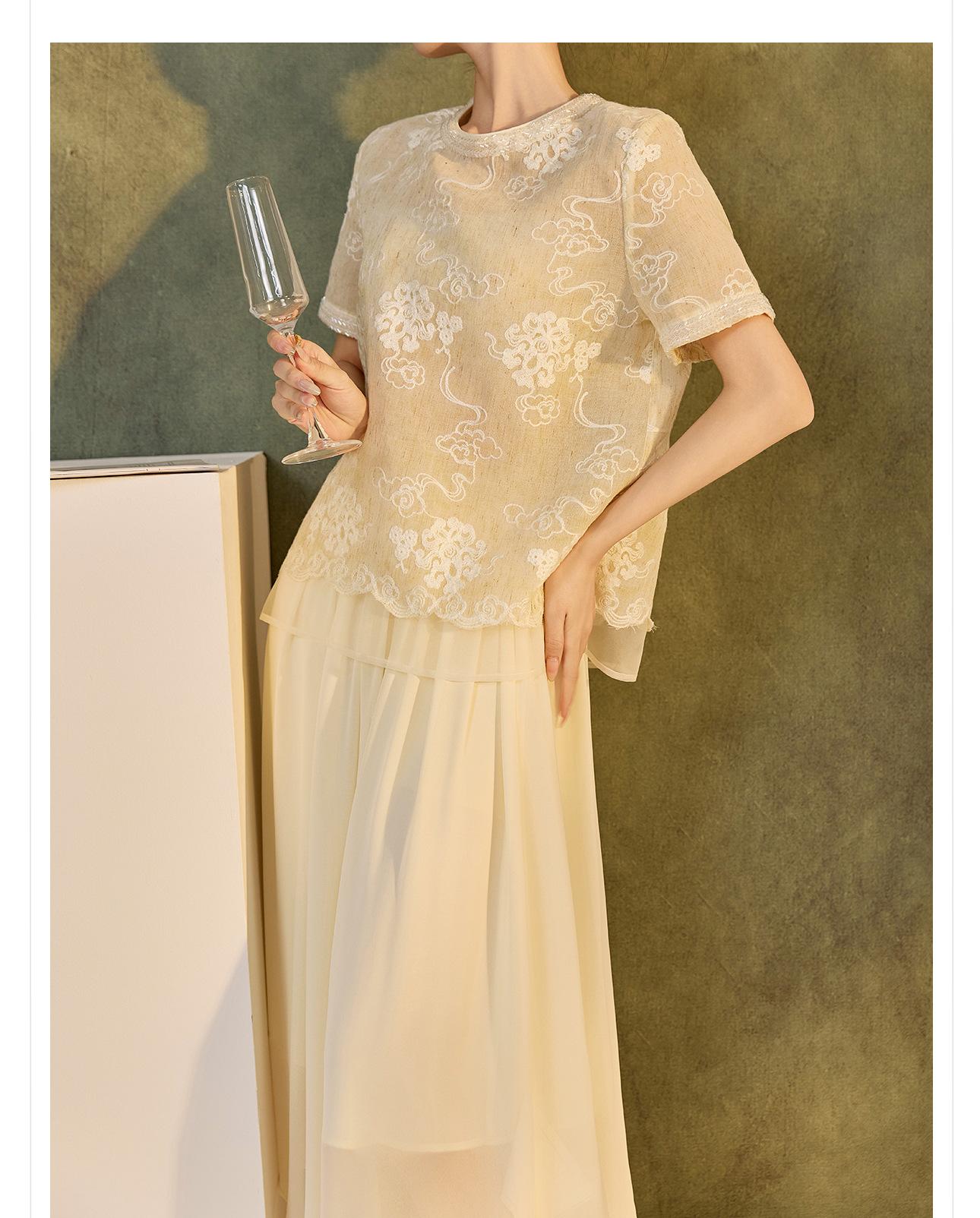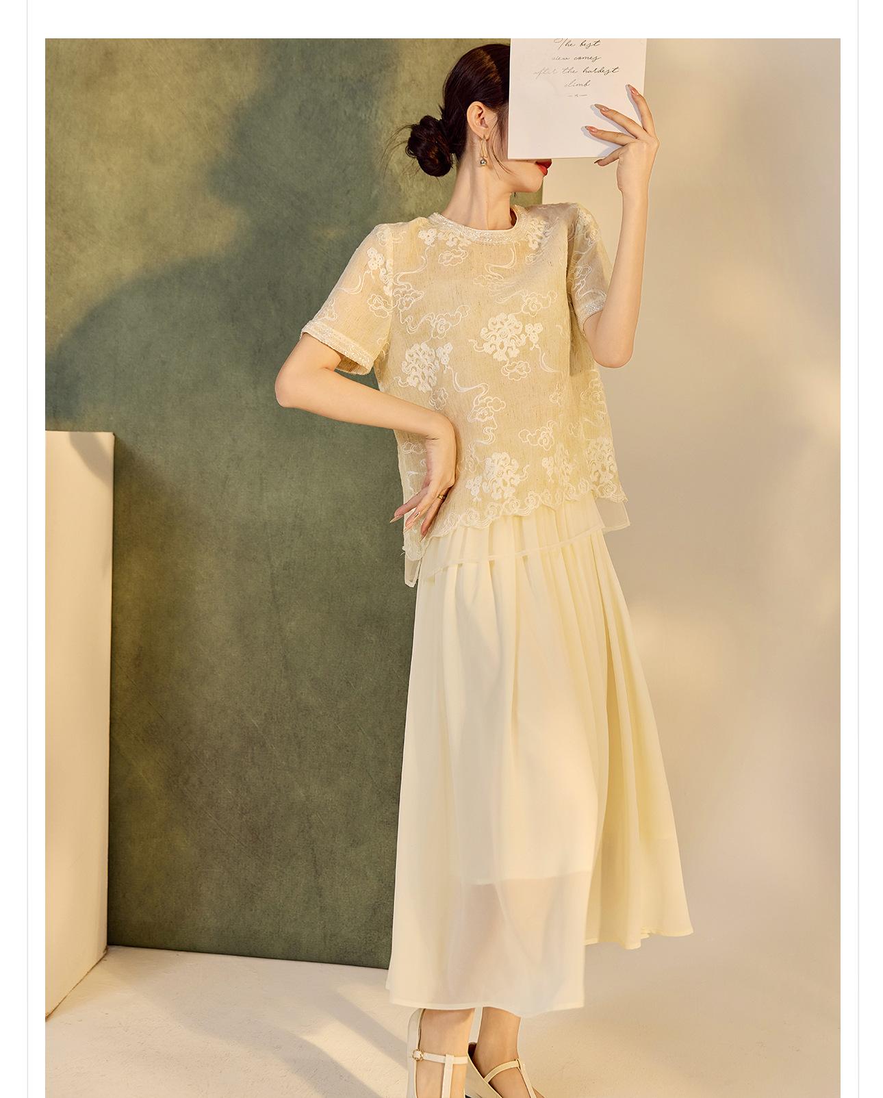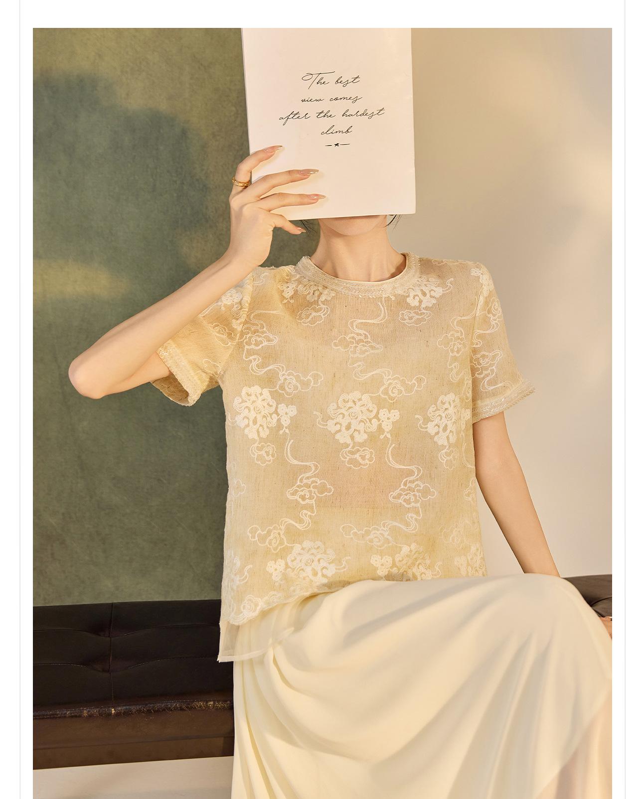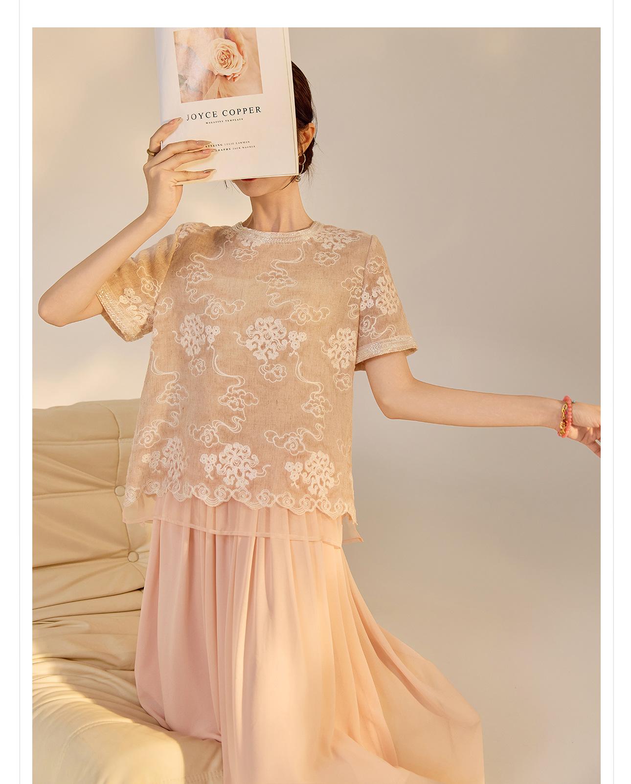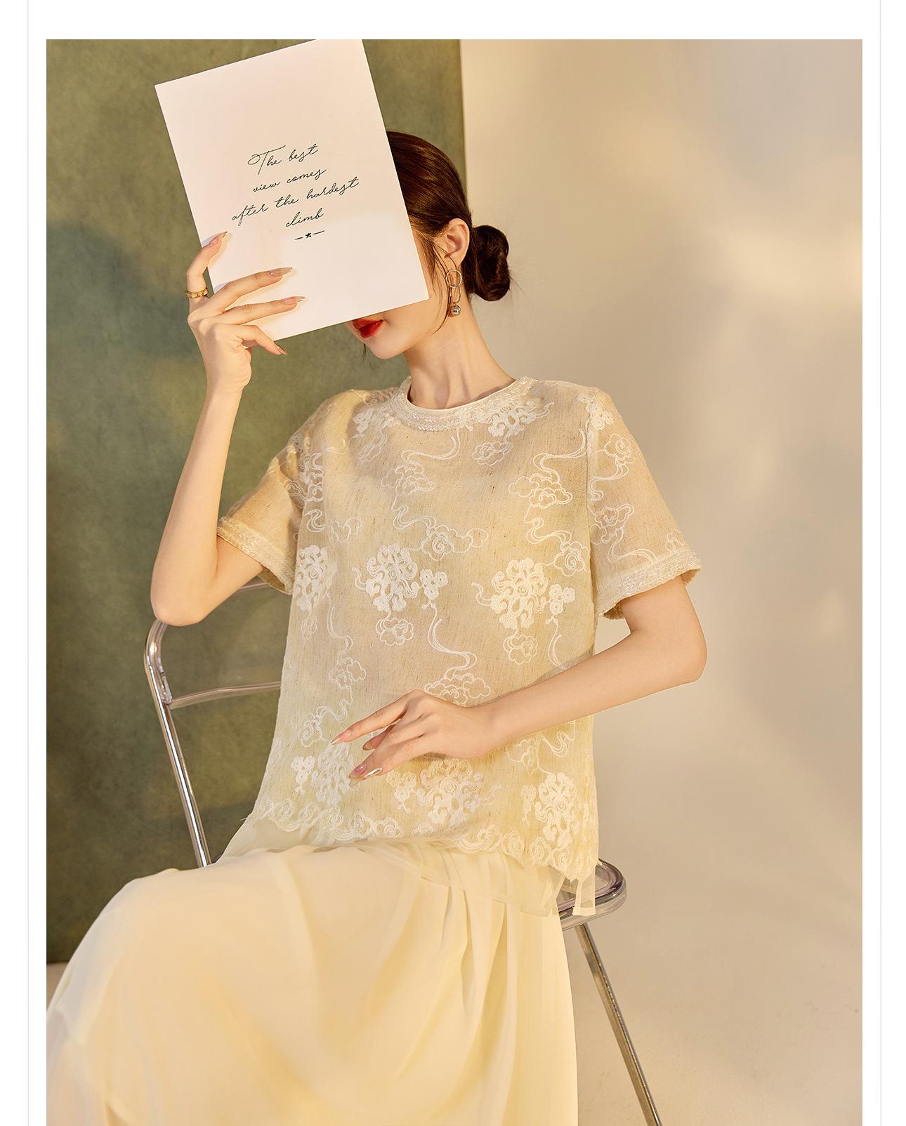 Nuevos Tops Elegantes con Cuentas Pesadas de Estilo Chino para Mujer Verano Camisas de Moda de Estilo Nacional Trajes de Falda de Color Puro N5065
