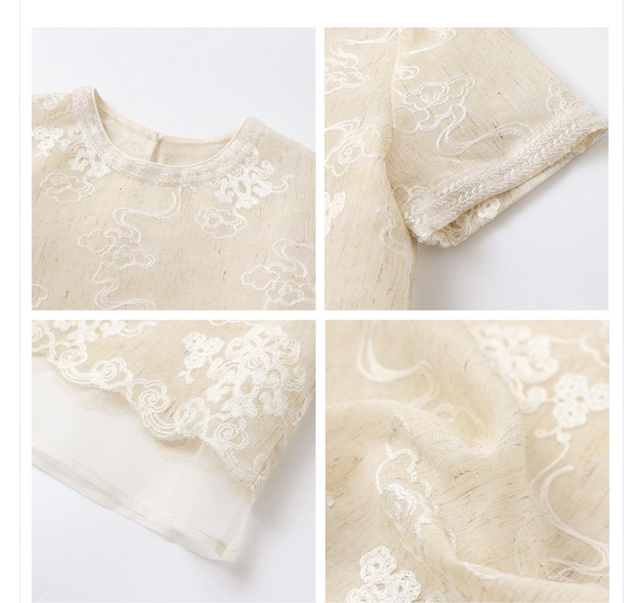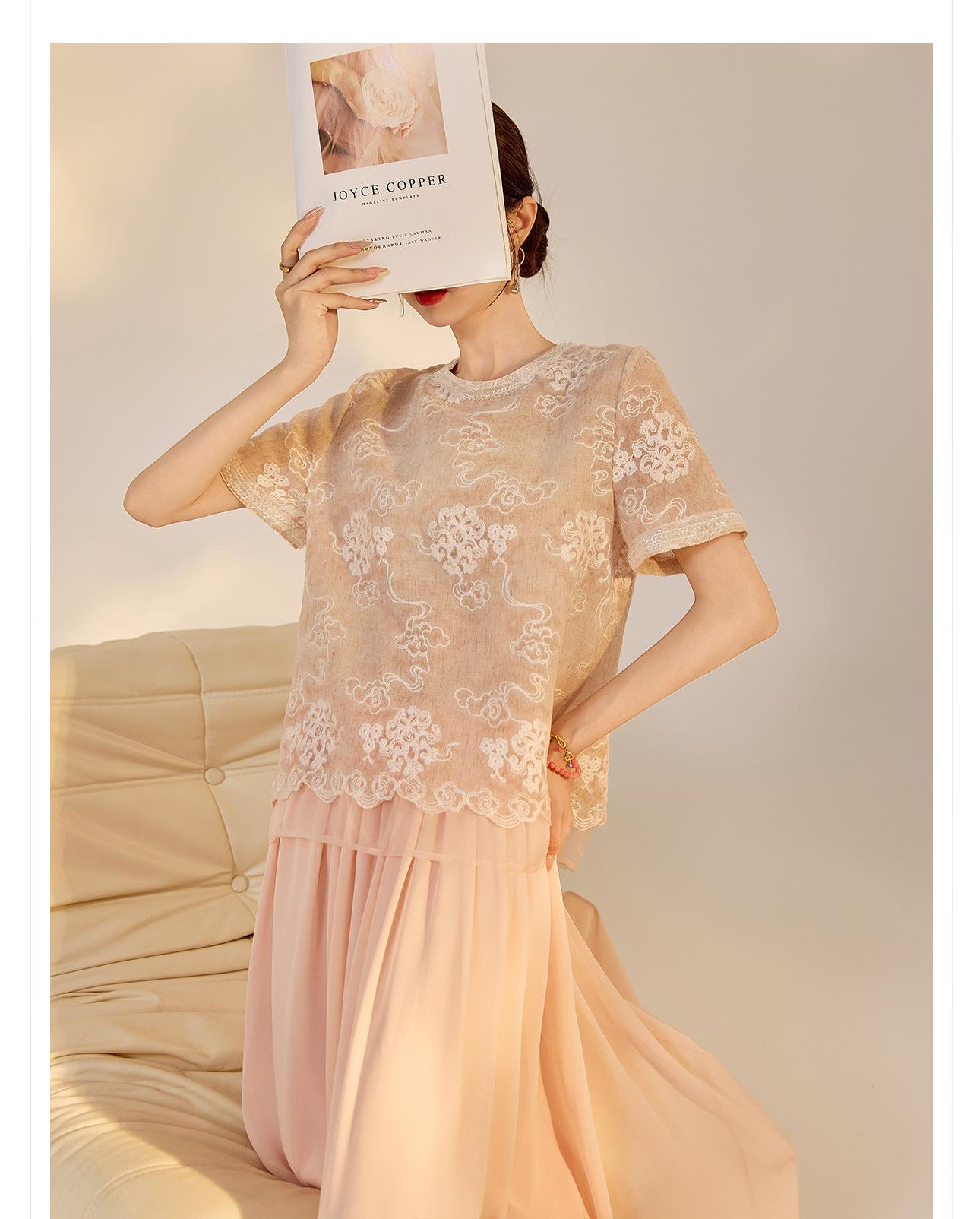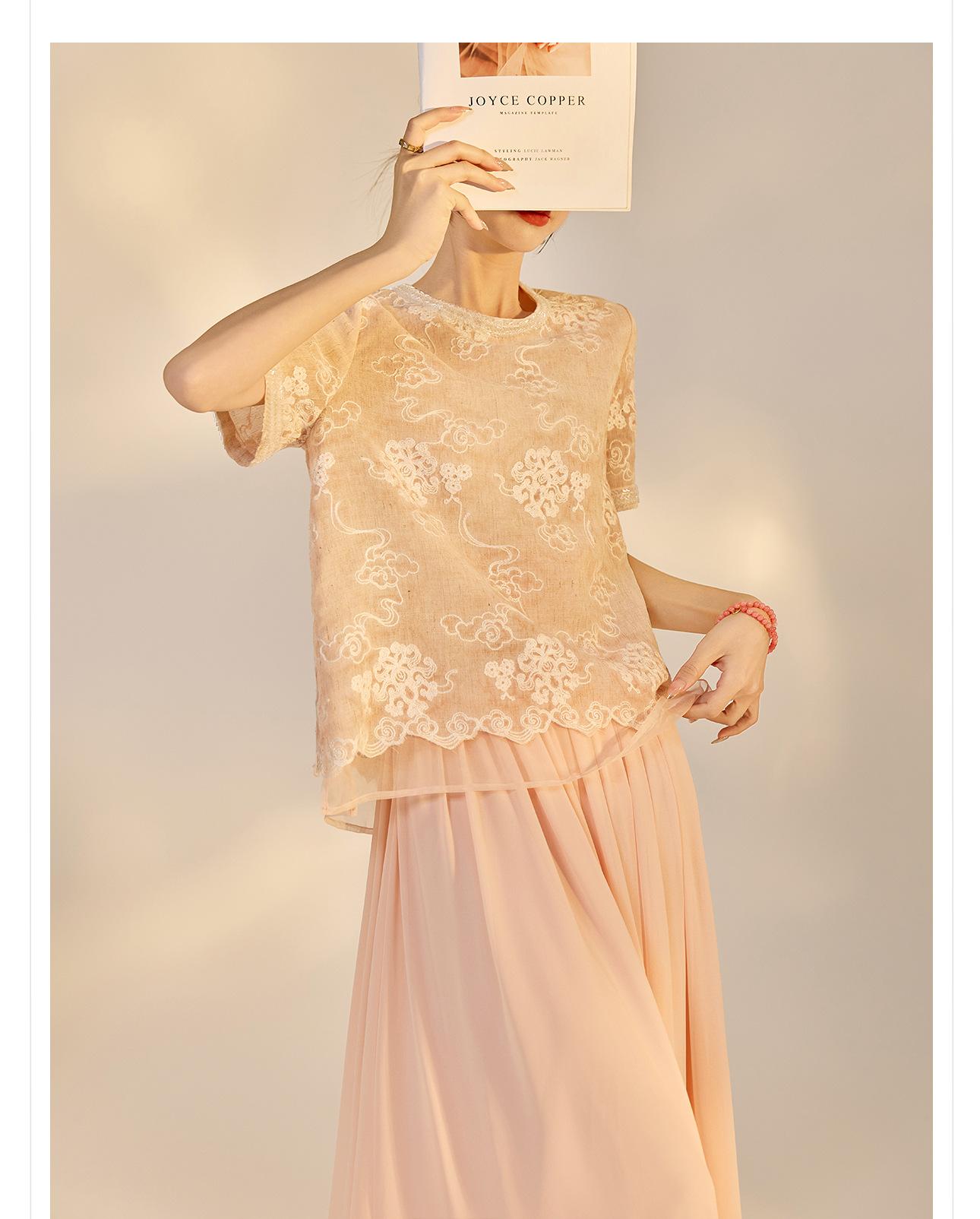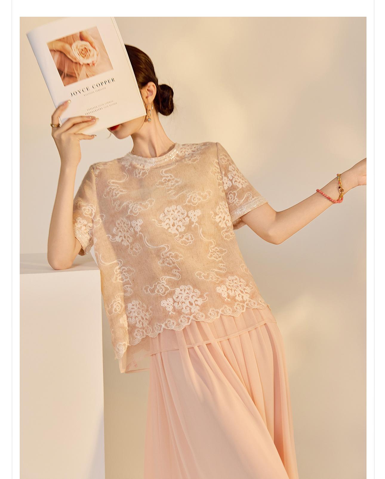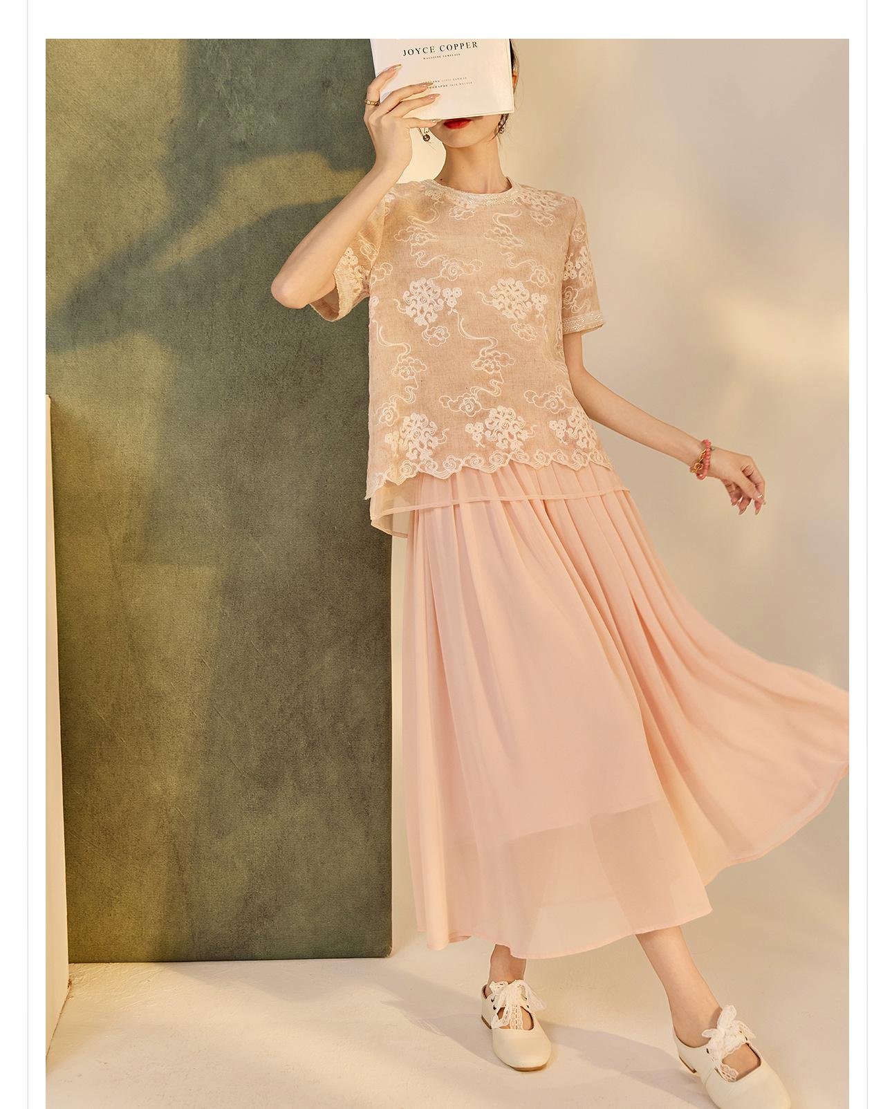 Nuevos Tops Elegantes con Cuentas Pesadas de Estilo Chino para Mujer Verano Camisas de Moda de Estilo Nacional Trajes de Falda de Color Puro N5065